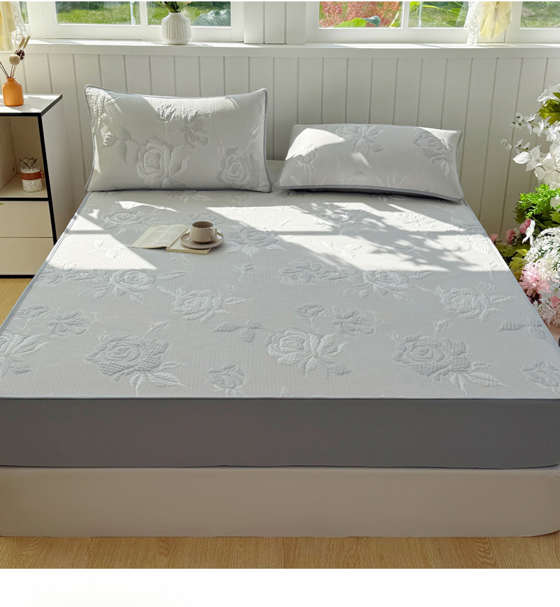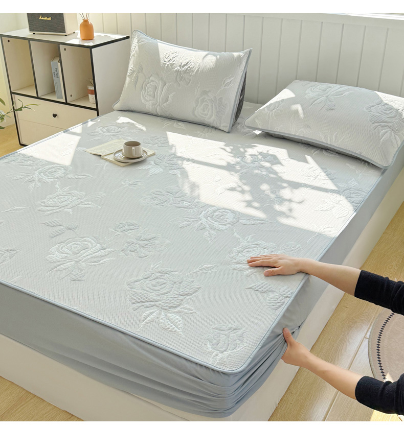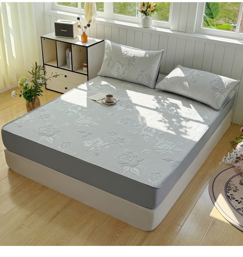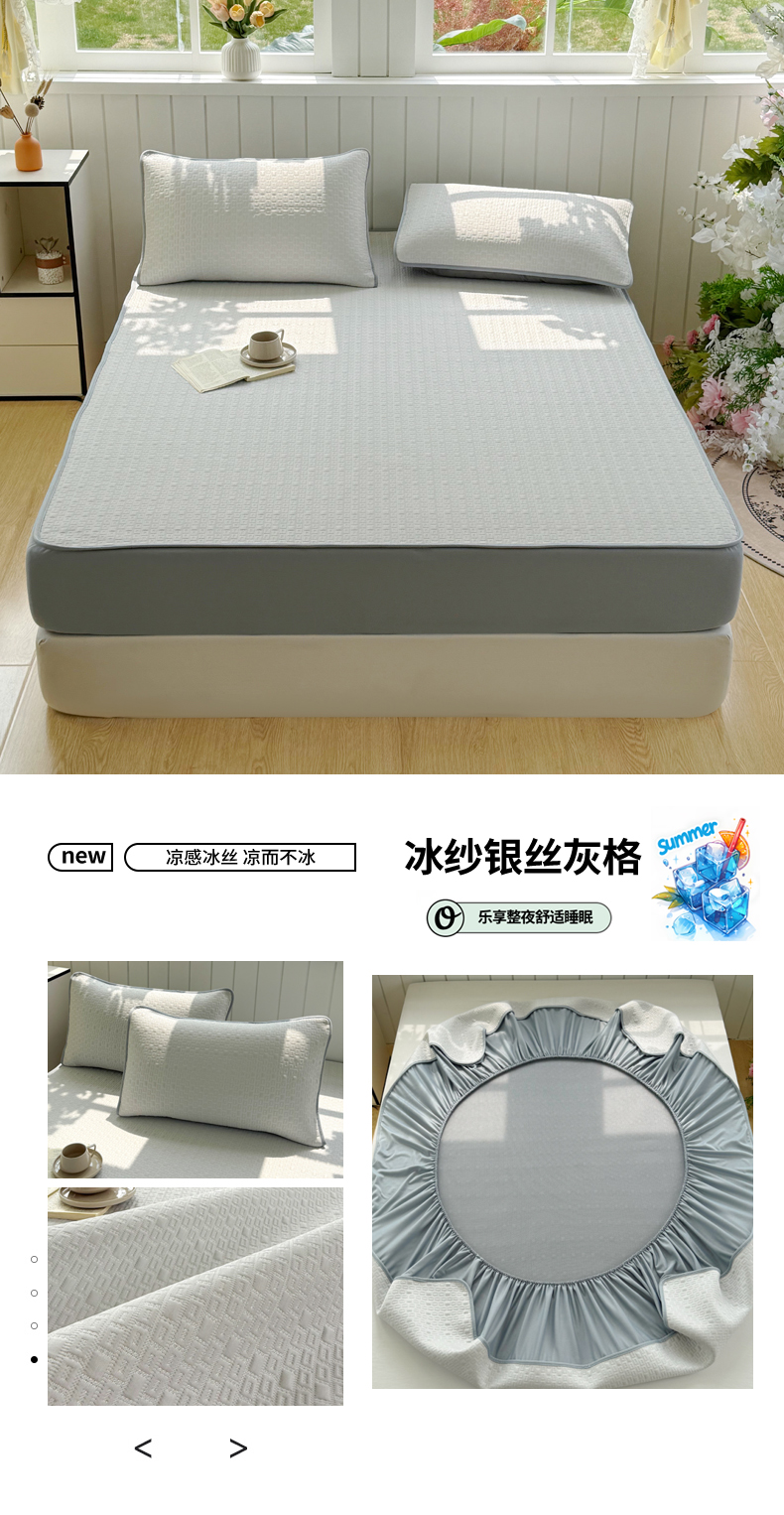 (总)恋佳居 2026新款A类PE中分子凉感丝床裙凉席,冰柔粉蔷薇,冰柔灰蔷薇,冰柔蓝蔷薇,冰沙银丝灰格,冰沙银丝蓝色,冰沙银丝绿格