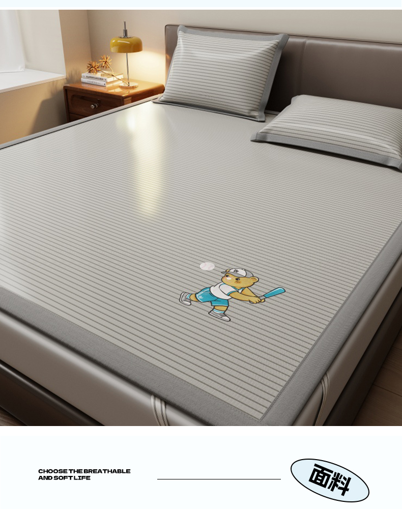 (总)人人爱家纺 2026新款提花冰丝凉席-棒球熊,棒球熊千鸟格蓝色,棒球熊粉色条纹,棒球熊灰色条纹,棒球熊蓝色条纹,棒球熊立体格灰色,棒球熊立体格蓝色,棒球熊抹茶绿条纹,棒球熊千鸟格灰色