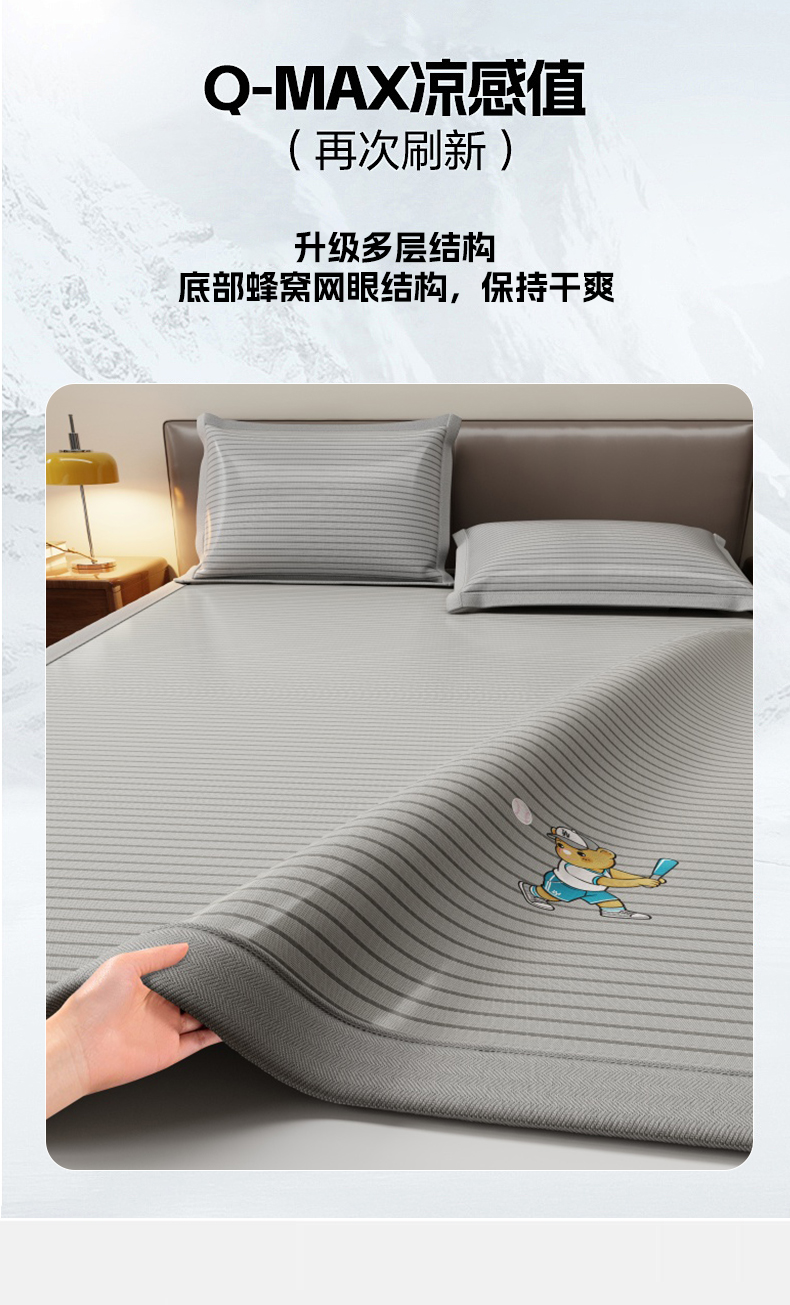 人人爱家纺 2026新款提花冰丝凉席-棒球熊 棒球熊灰色条纹