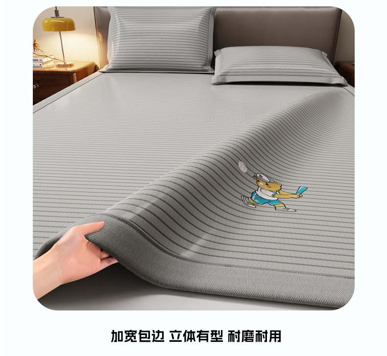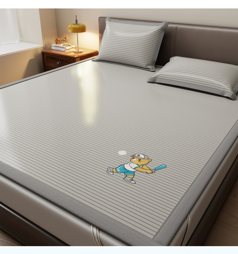 商品名称:人人爱家纺 2026新款提花冰丝凉席-棒球熊 棒球熊灰色条纹