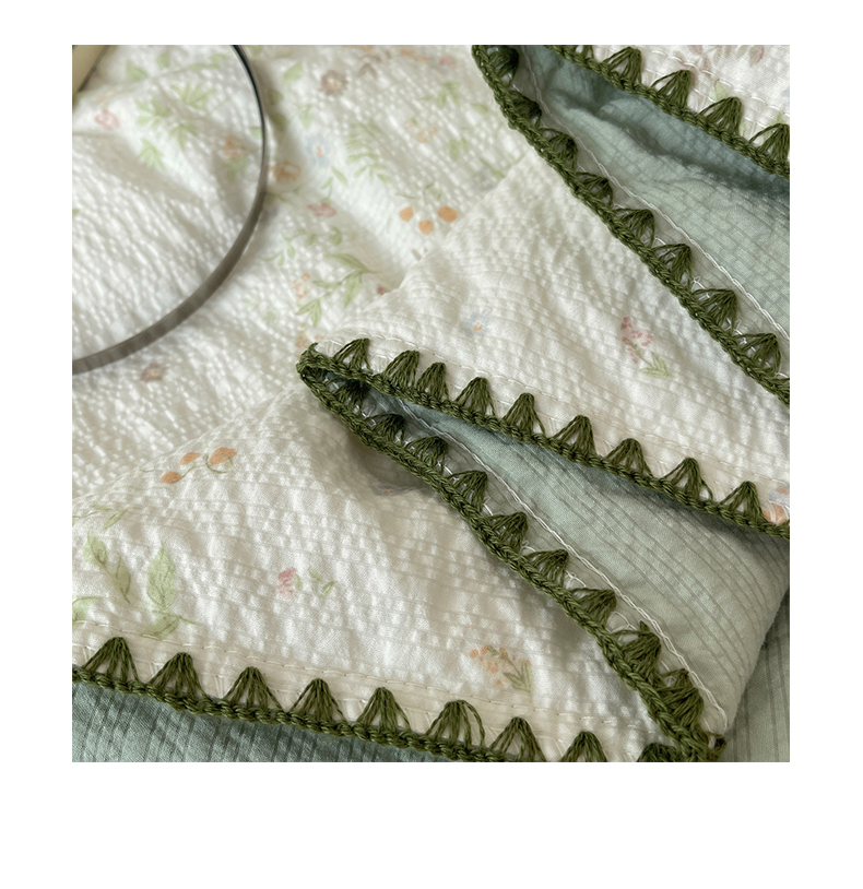 商品名称:几禾 2026春夏新款泡芙纱贝壳边夏被夏凉被空调被四件套 欧包-浅夏花信