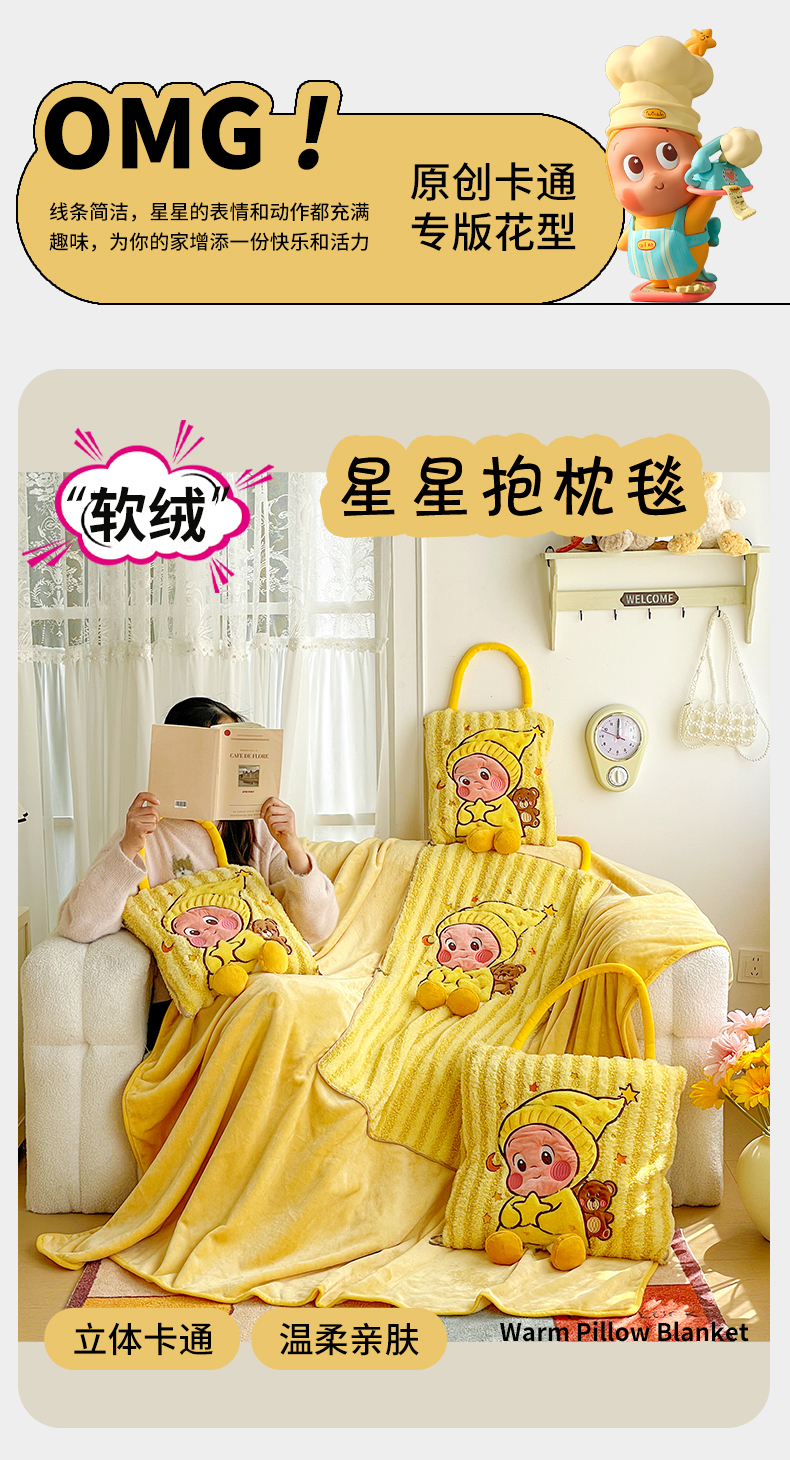 商品名称:(总)古本家居 2026春夏新款多巴胺网红风星星抱枕毯