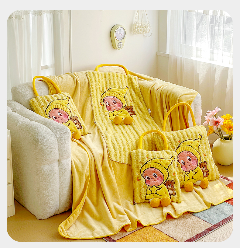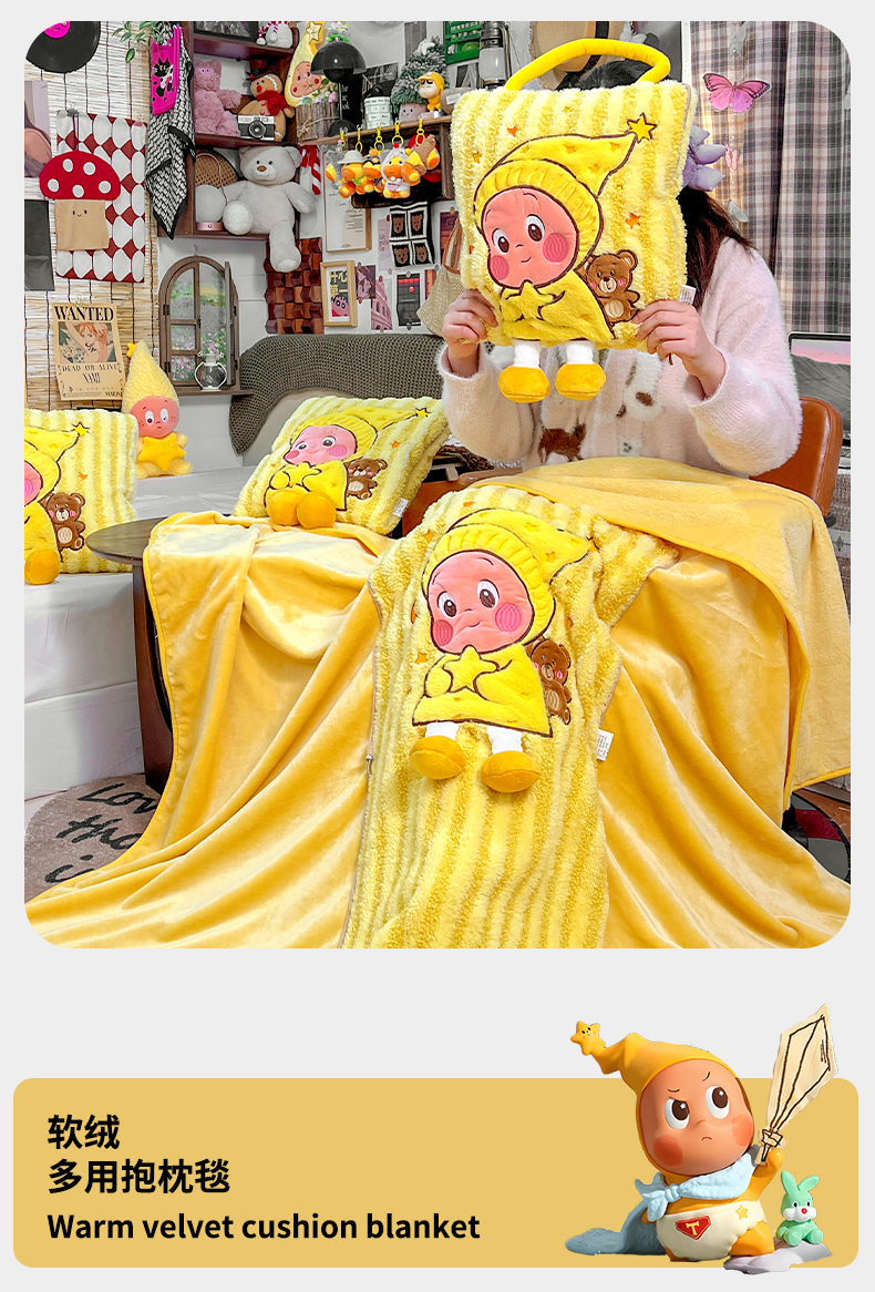 (总)古本家居 2026新款四季款水洗小星人抱枕被,四季小星人绿格,四季小星人粉格,四季小星人黄格,四季小星人蓝格
