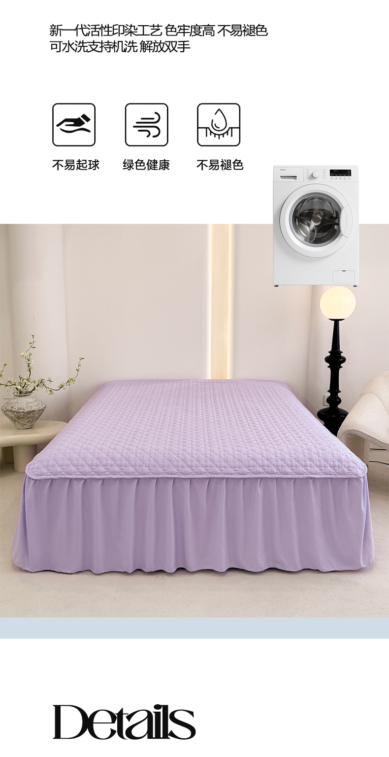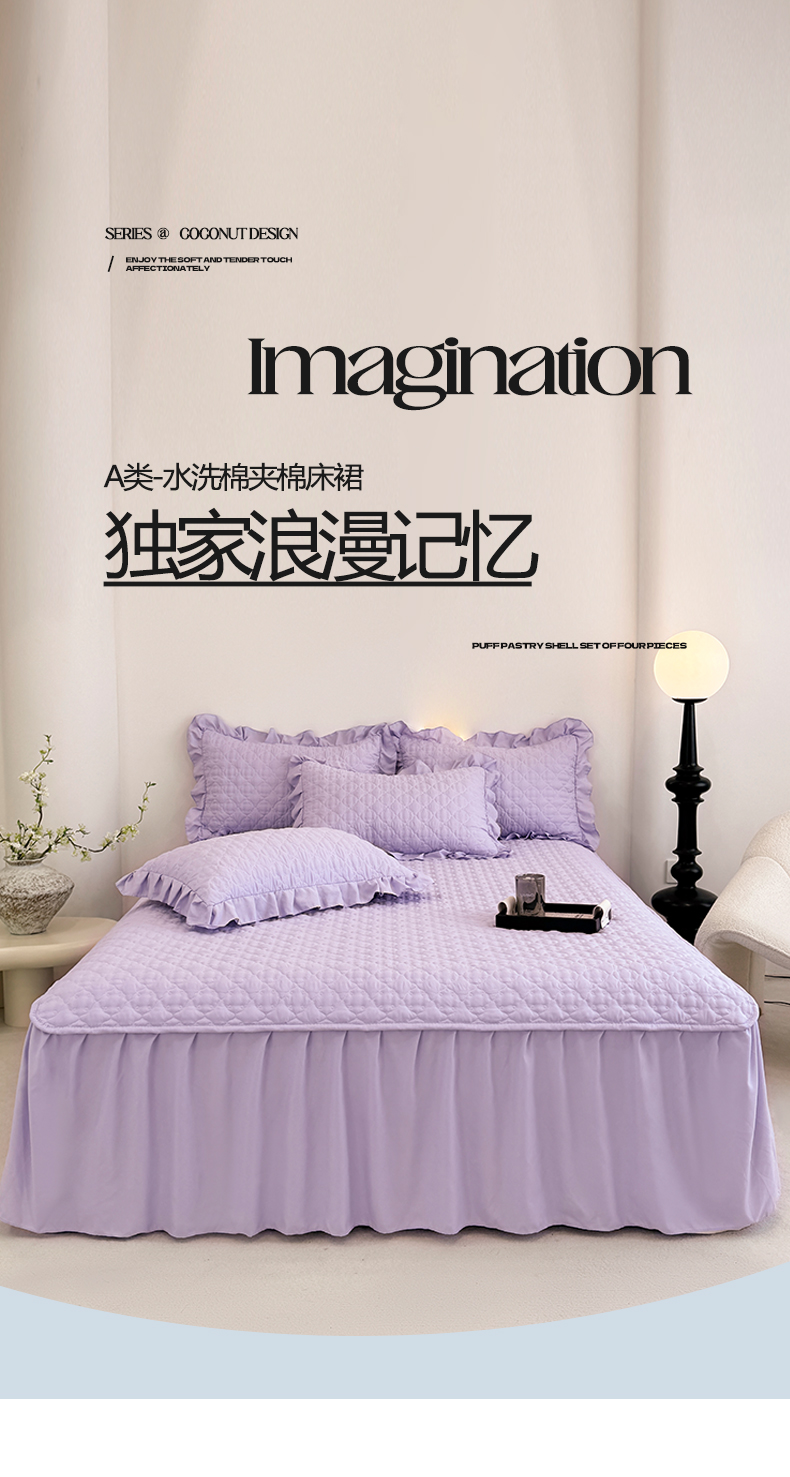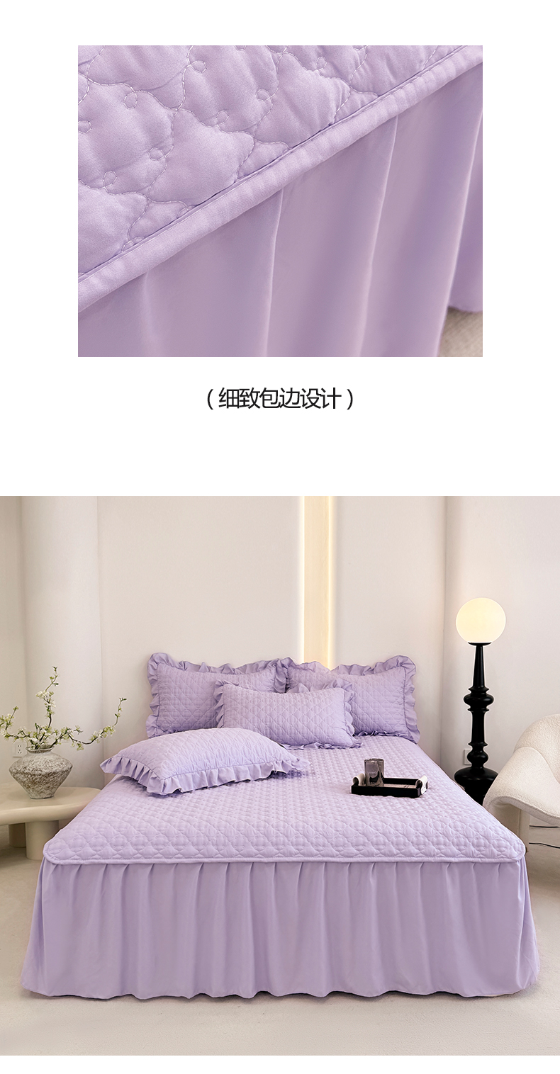 • 91家纺网 家纺一手货源 找家纺 野合家纺 2026新款A类水洗棉纯色夹棉床裙单床裙床裙单件 浅紫
