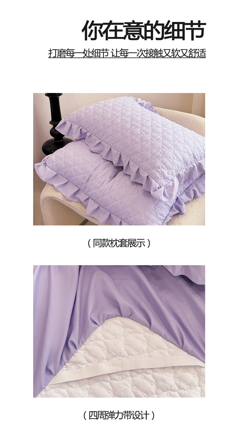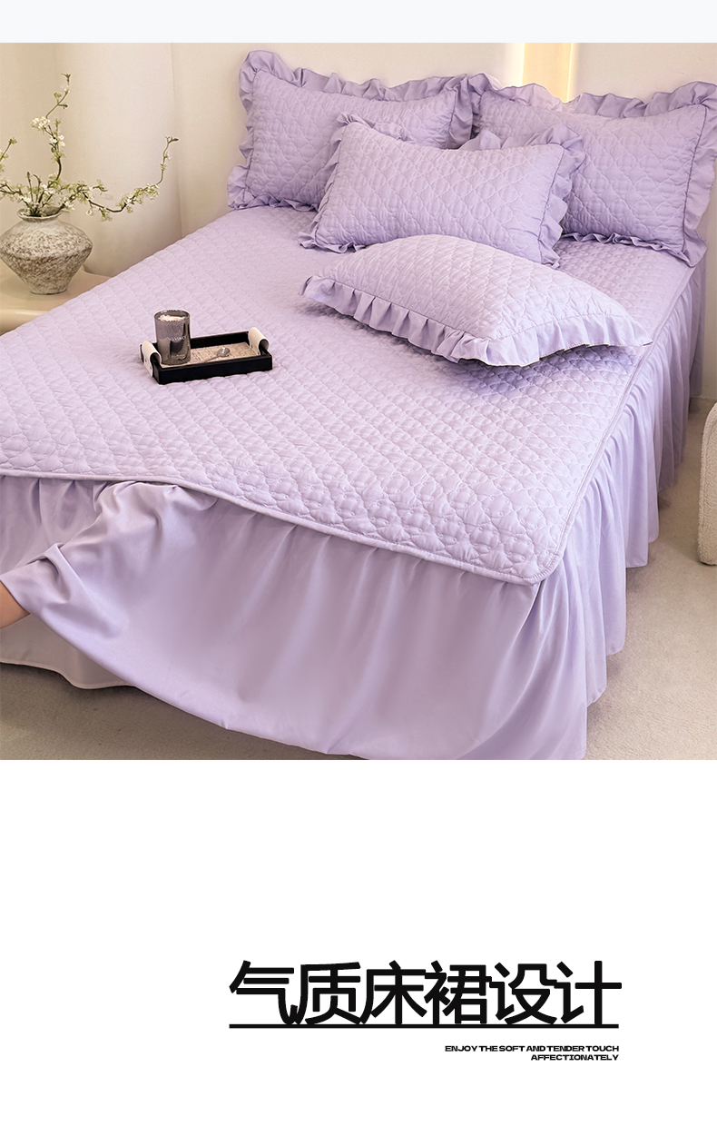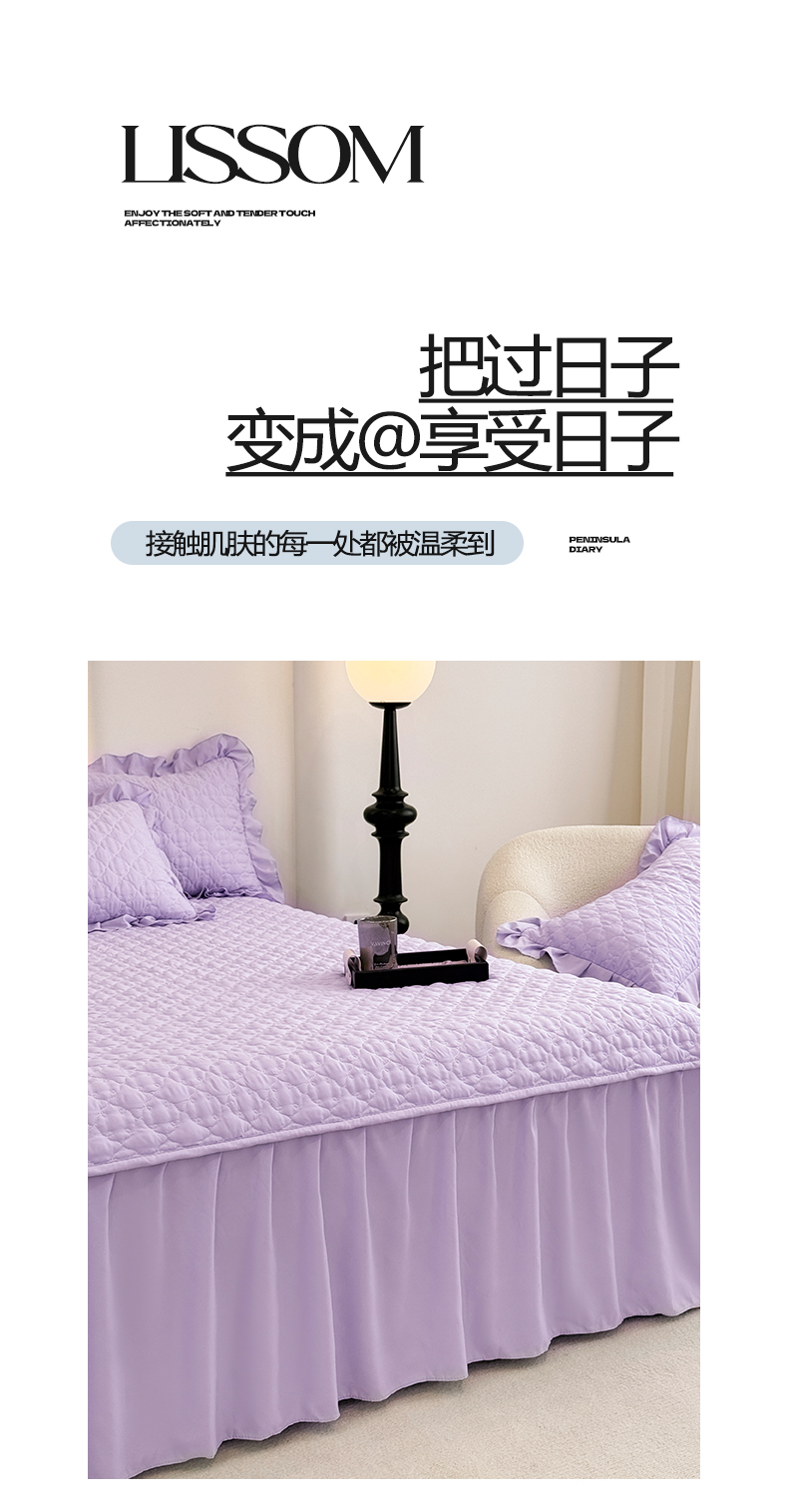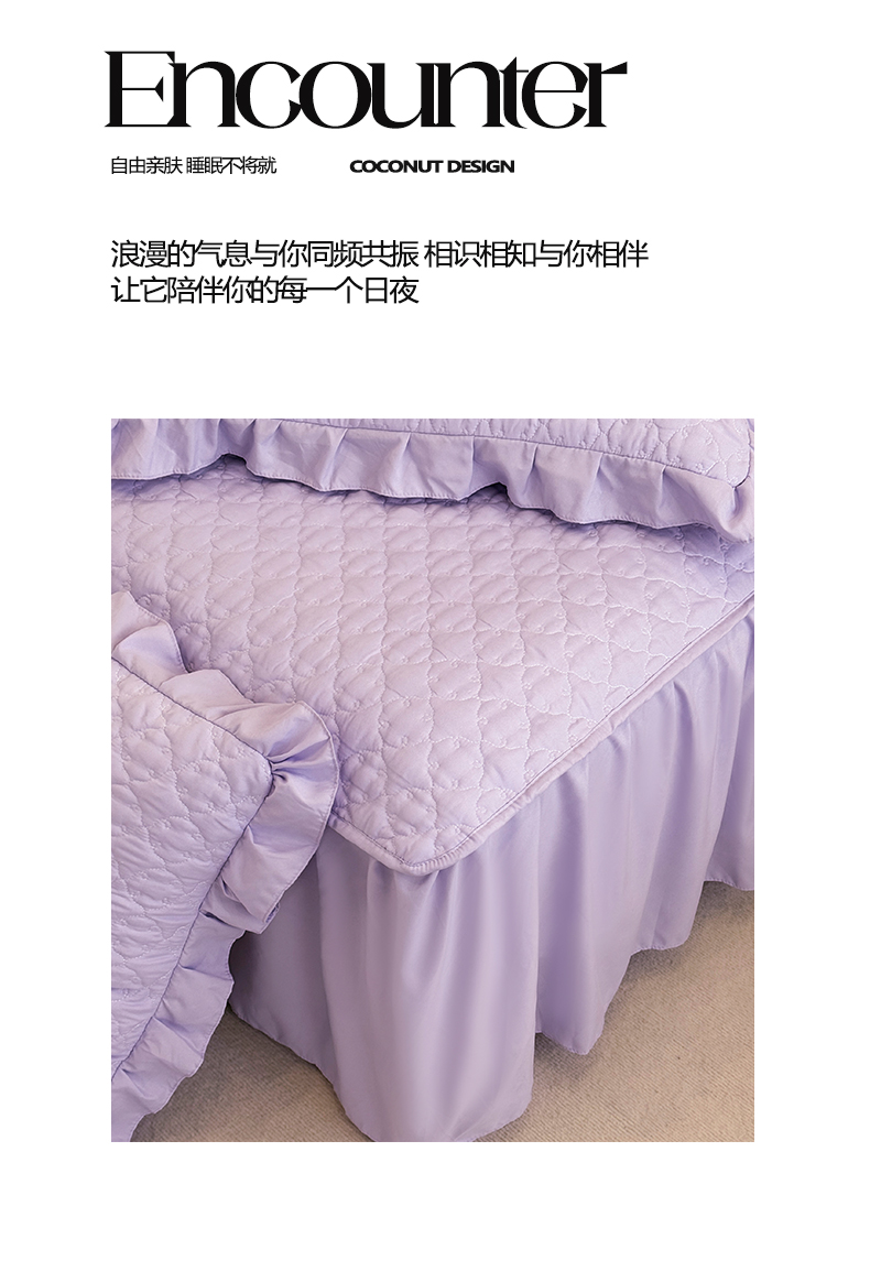 • 91家纺网 家纺一手货源 找家纺 野合家纺 2026新款A类水洗棉纯色夹棉床裙单床裙床裙单件 浅紫