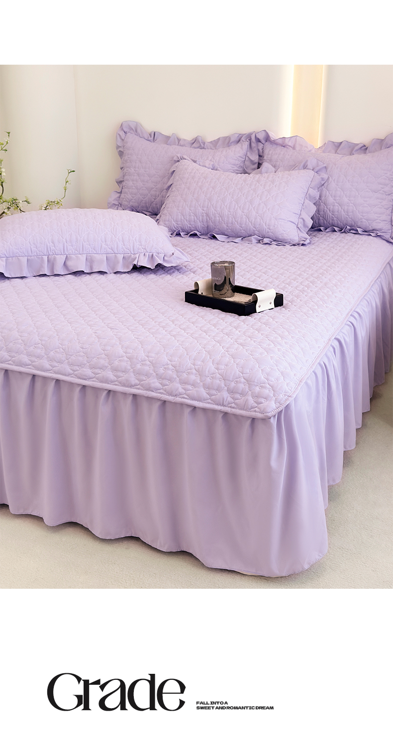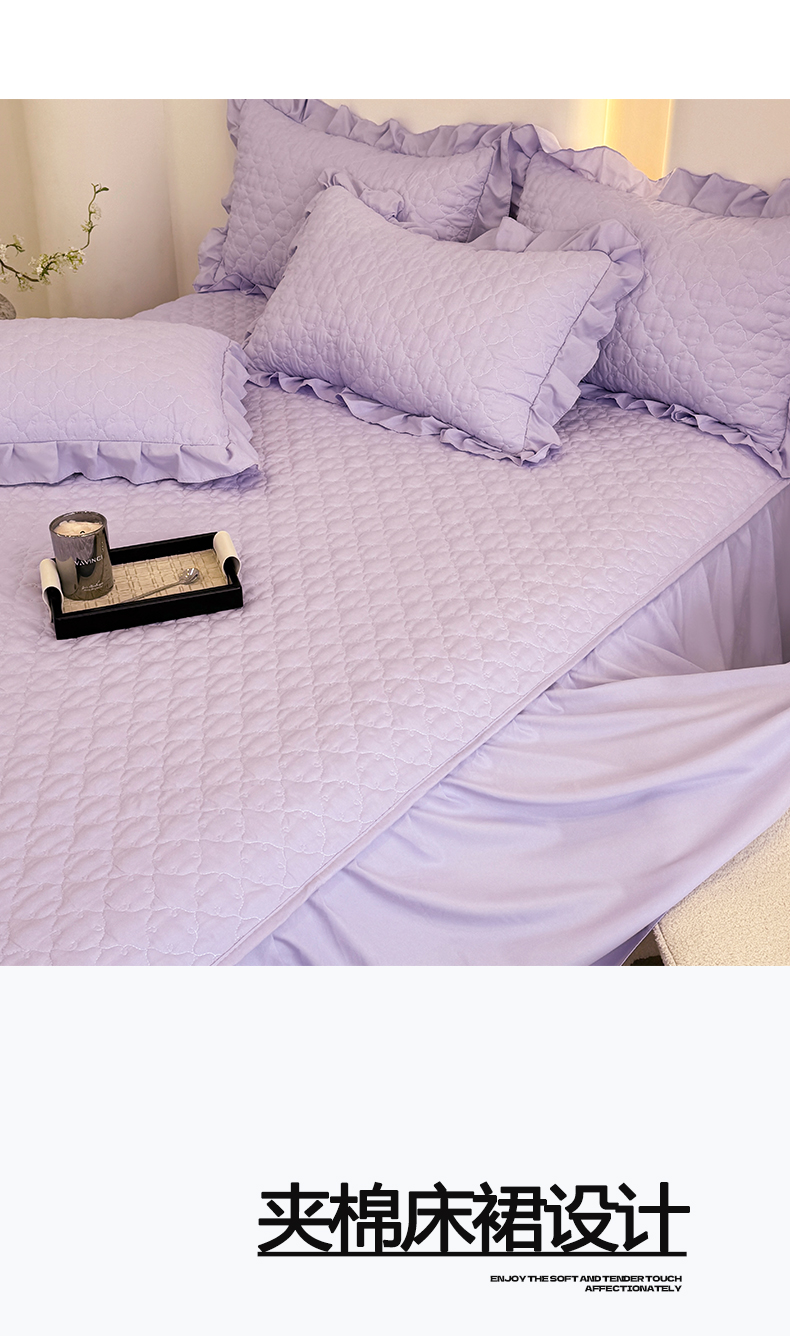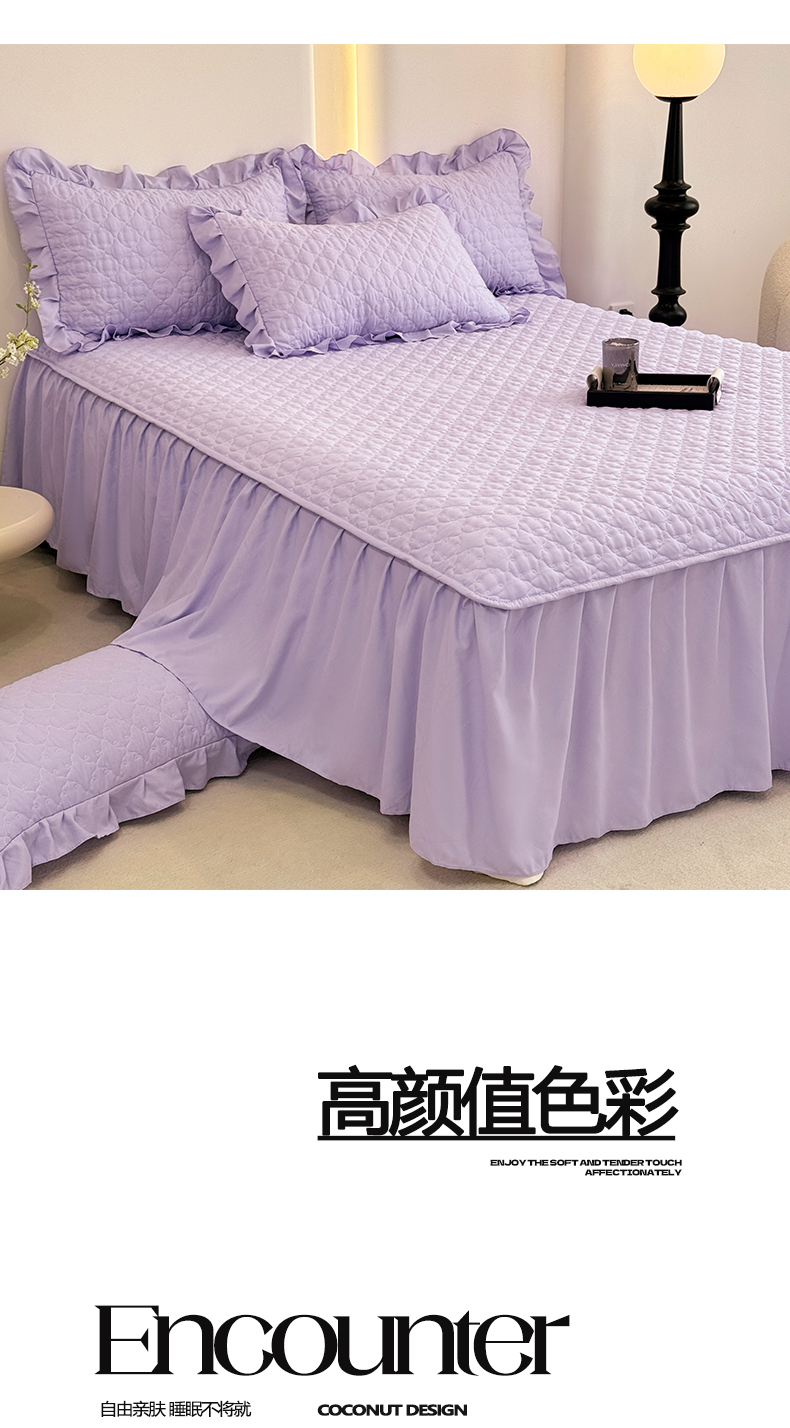 野合家纺 2026新款A类水洗棉纯色夹棉床裙单床裙床裙单件 浅紫