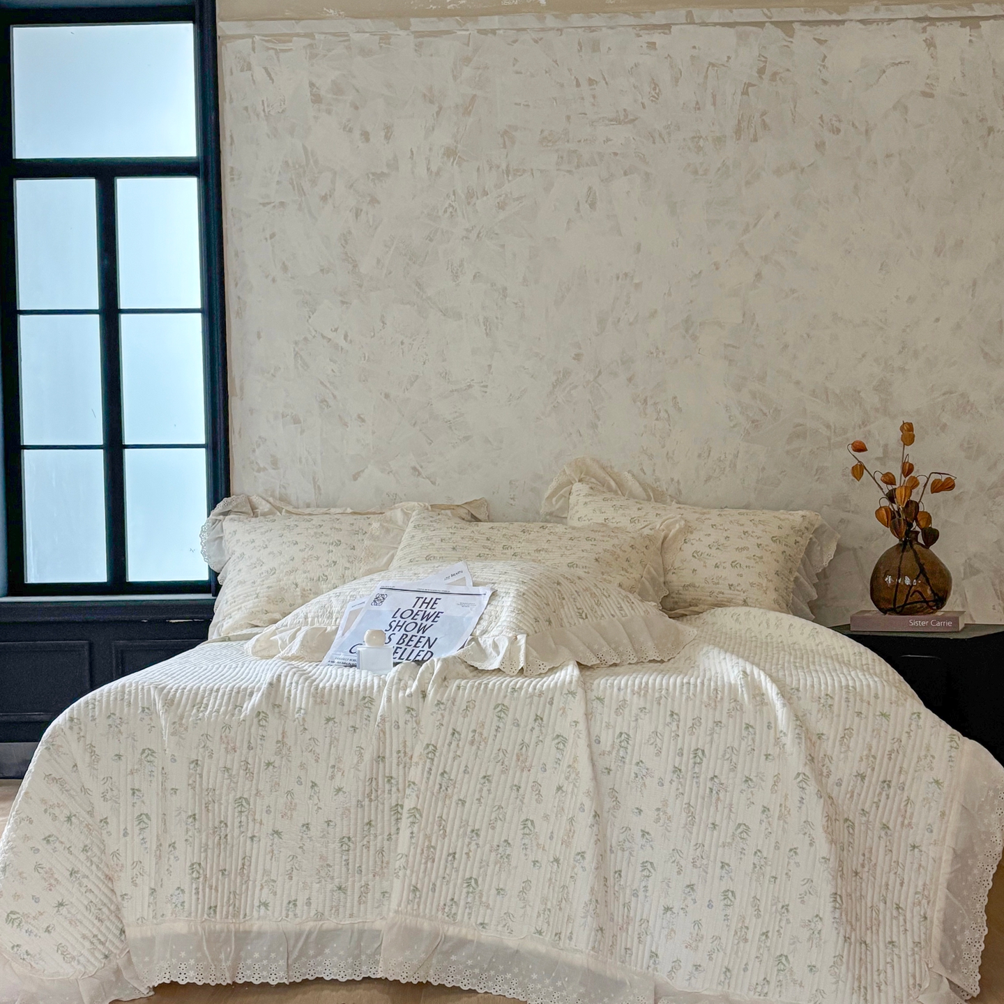 • 91家纺网 家纺一手货源 找家纺 满座家居 2026新款法式纯棉花边全棉床盖四件套小碎花田园风 紫韵