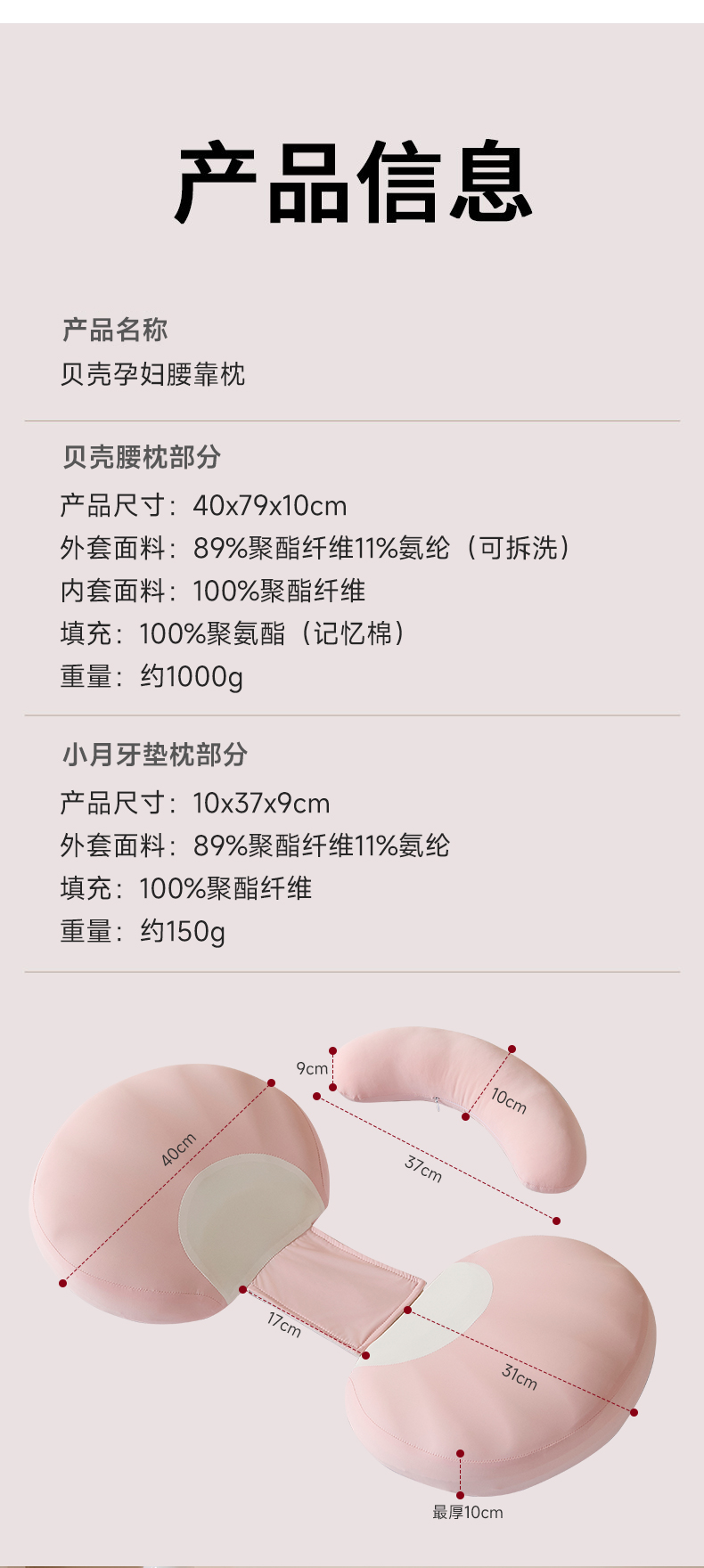 商品名称:昕科 2026新款贝壳记忆棉孕妇腰靠枕-孕妇枕头宝宝趴睡枕芯 贝壳孕妇腰靠枕-蓝色
