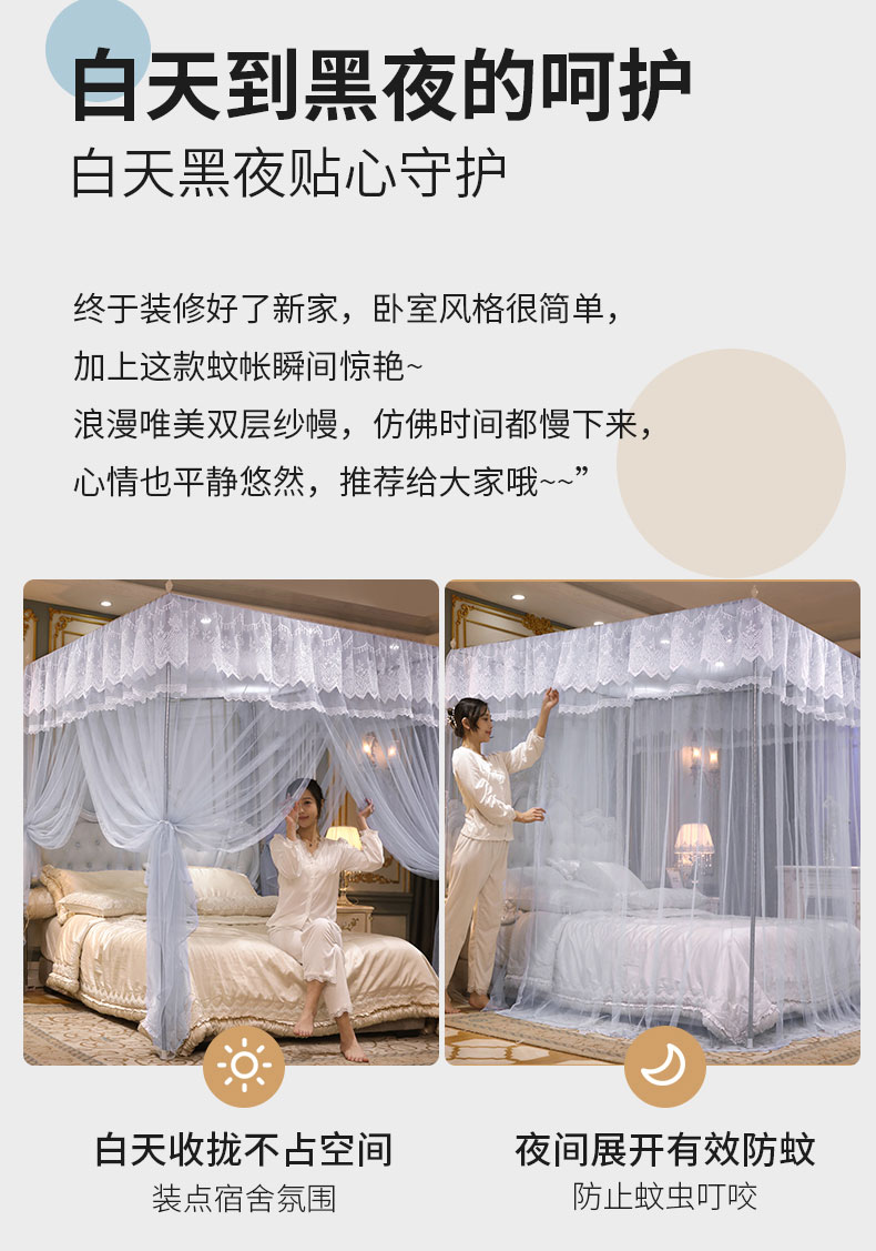 当前位置: 91家纺网 > 商品网购 > 床上用品 > 蚊帐 > 宫廷蚊帐 > 永旺家纺 2026新款宫廷落地三门开蚊帐--春暖花开 灰色