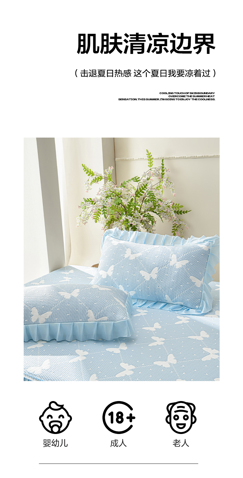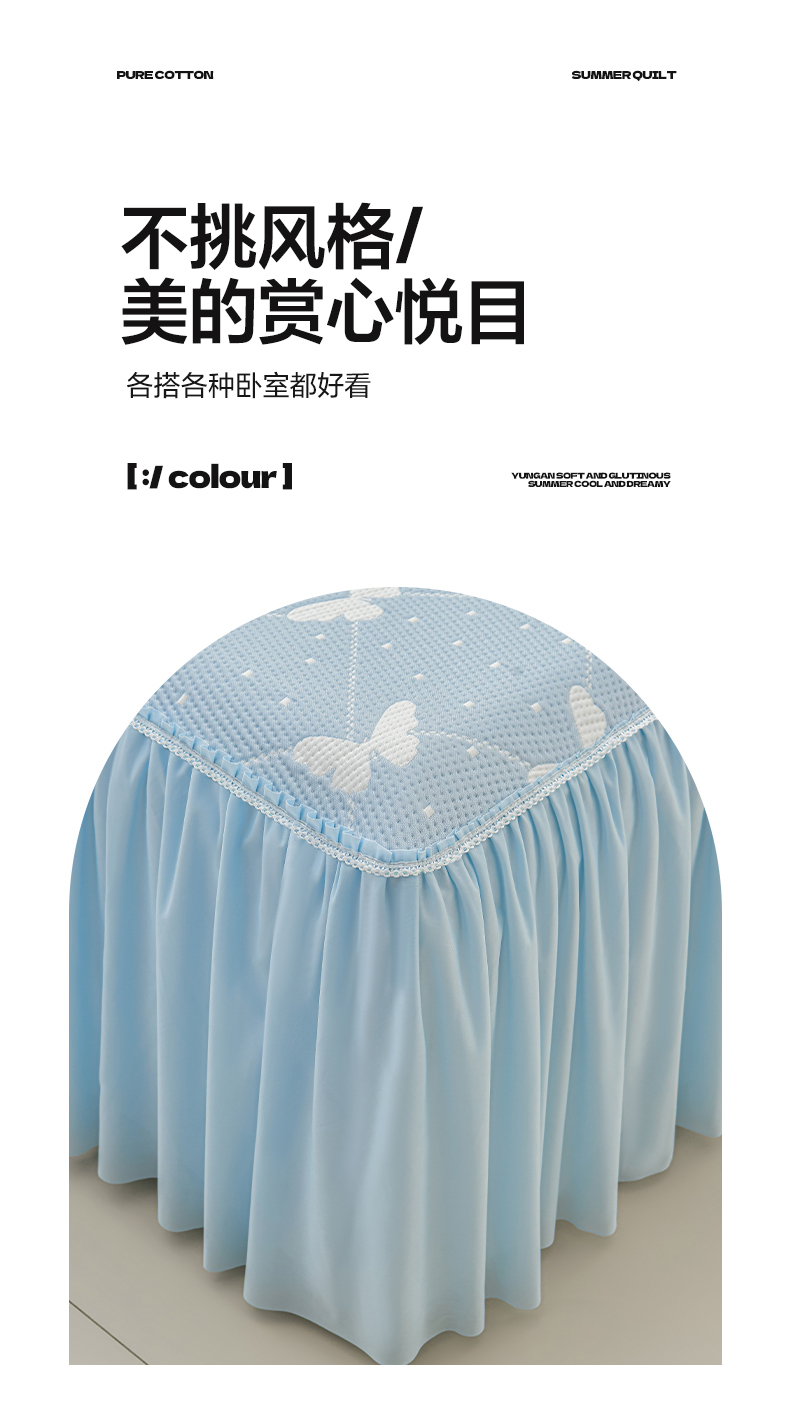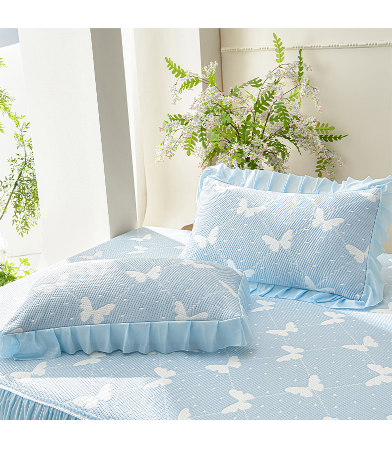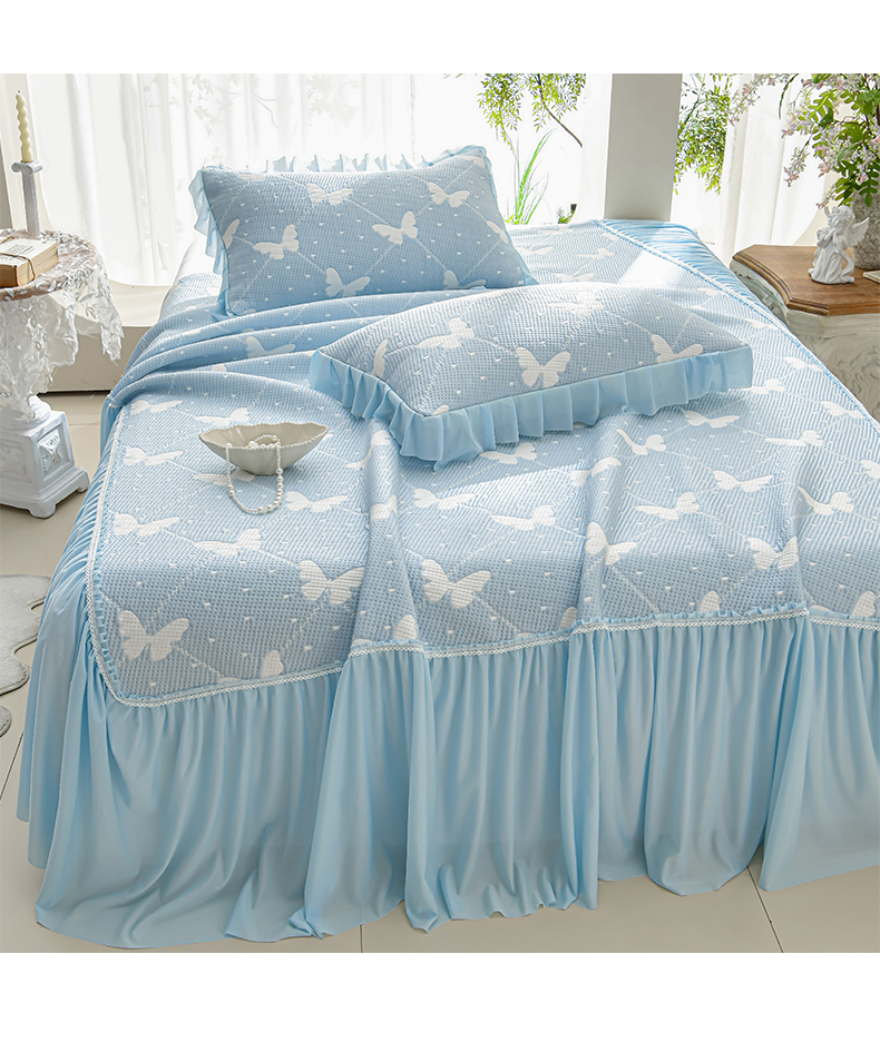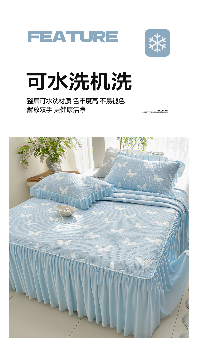 商品名称:绘萱家居 2026春夏新款530克PE100%提花冰凉豆豆床裙款凉席席子空调软席 蝶儿轻舞-蓝
