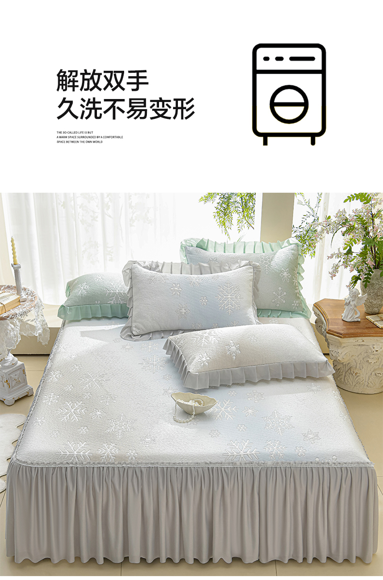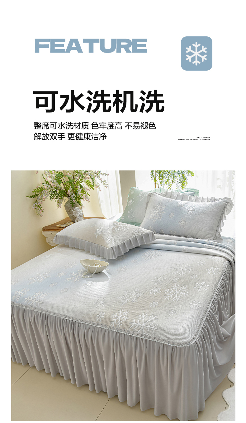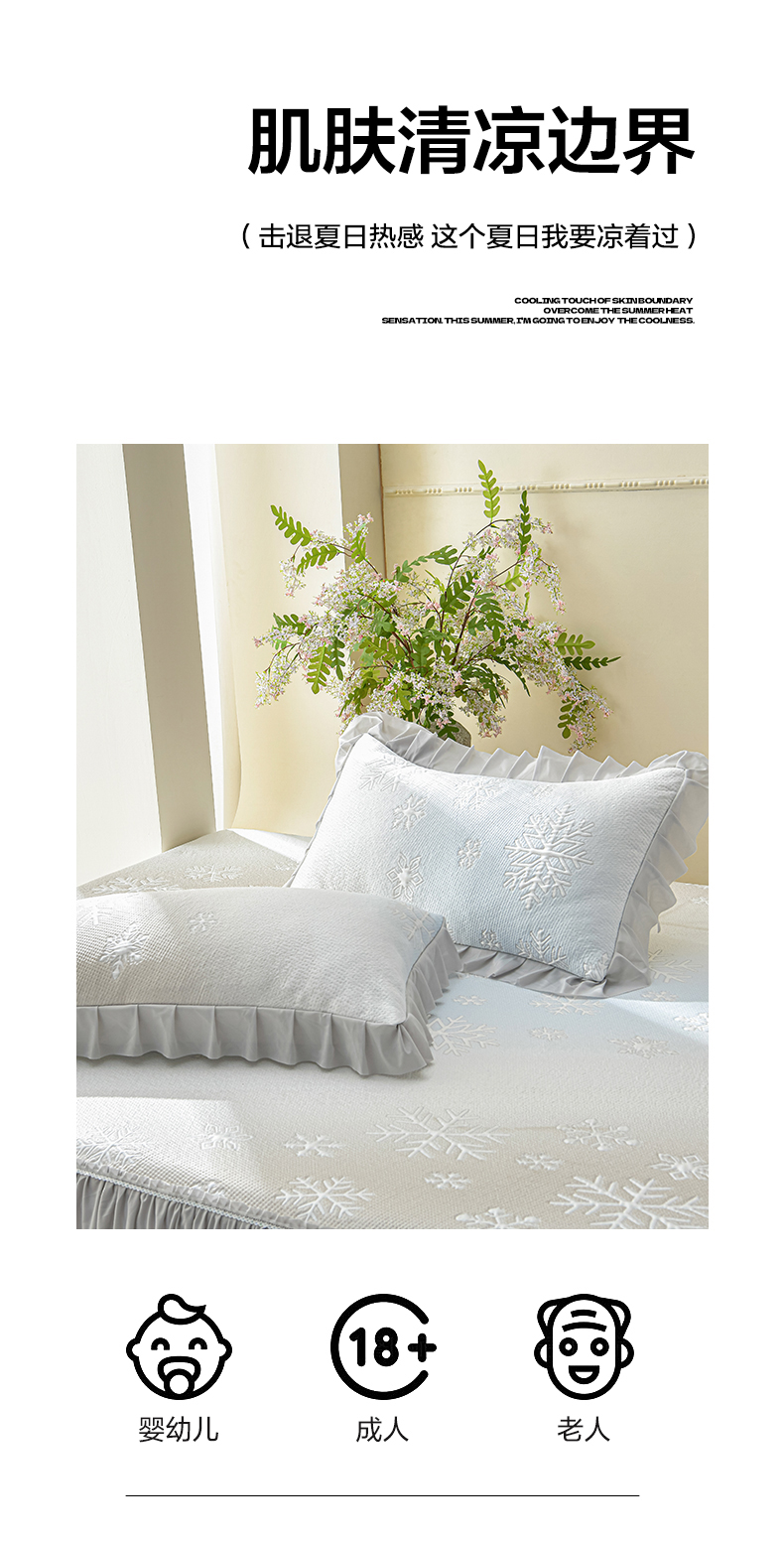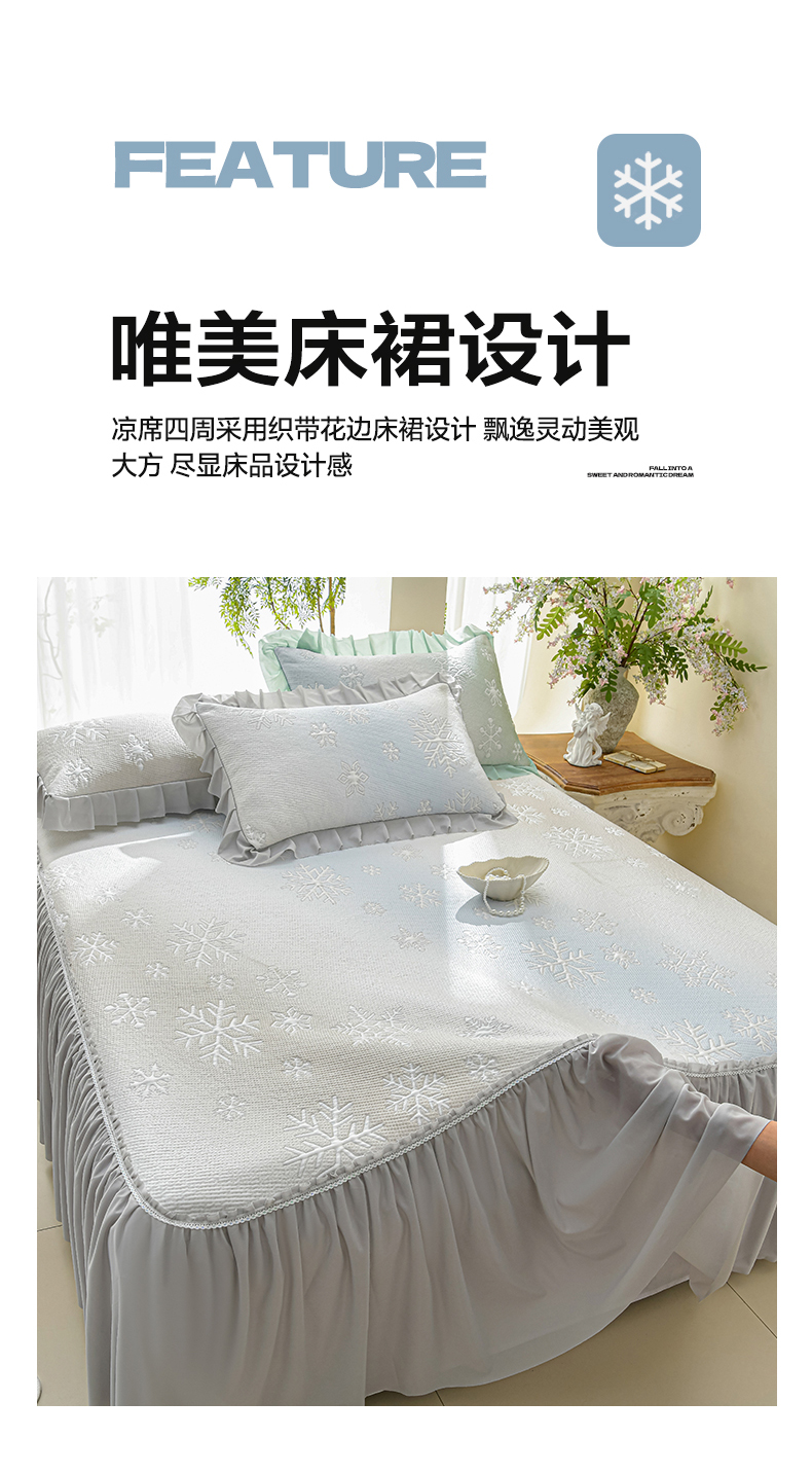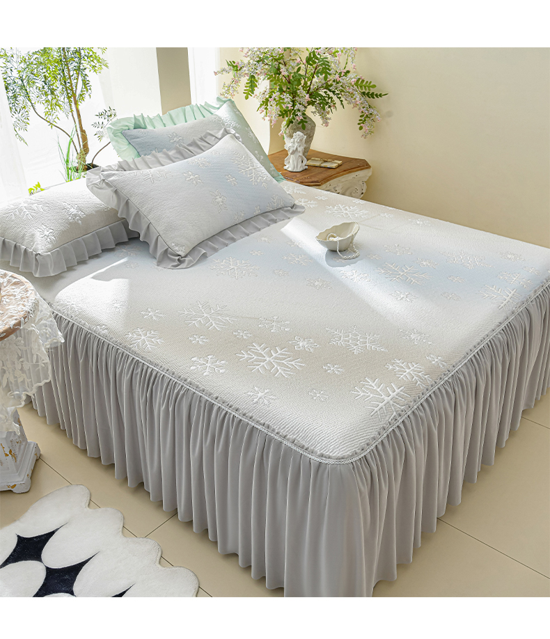 商品名称:绘萱家居 2026春夏新款530克PE100%提花冰凉豆豆床裙款凉席席子空调软席 渐变雪花-灰