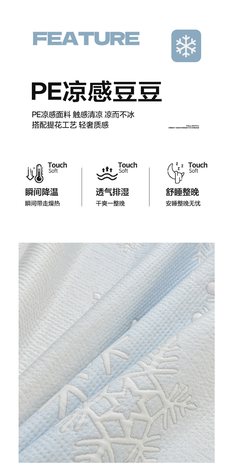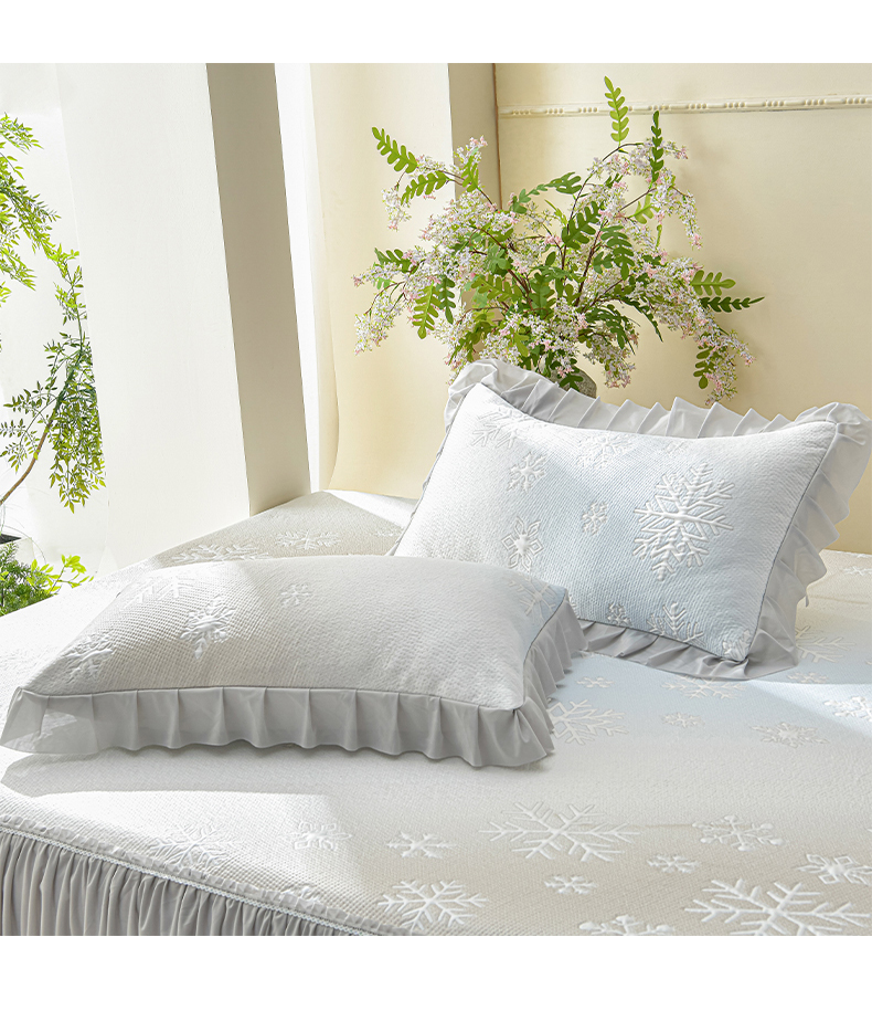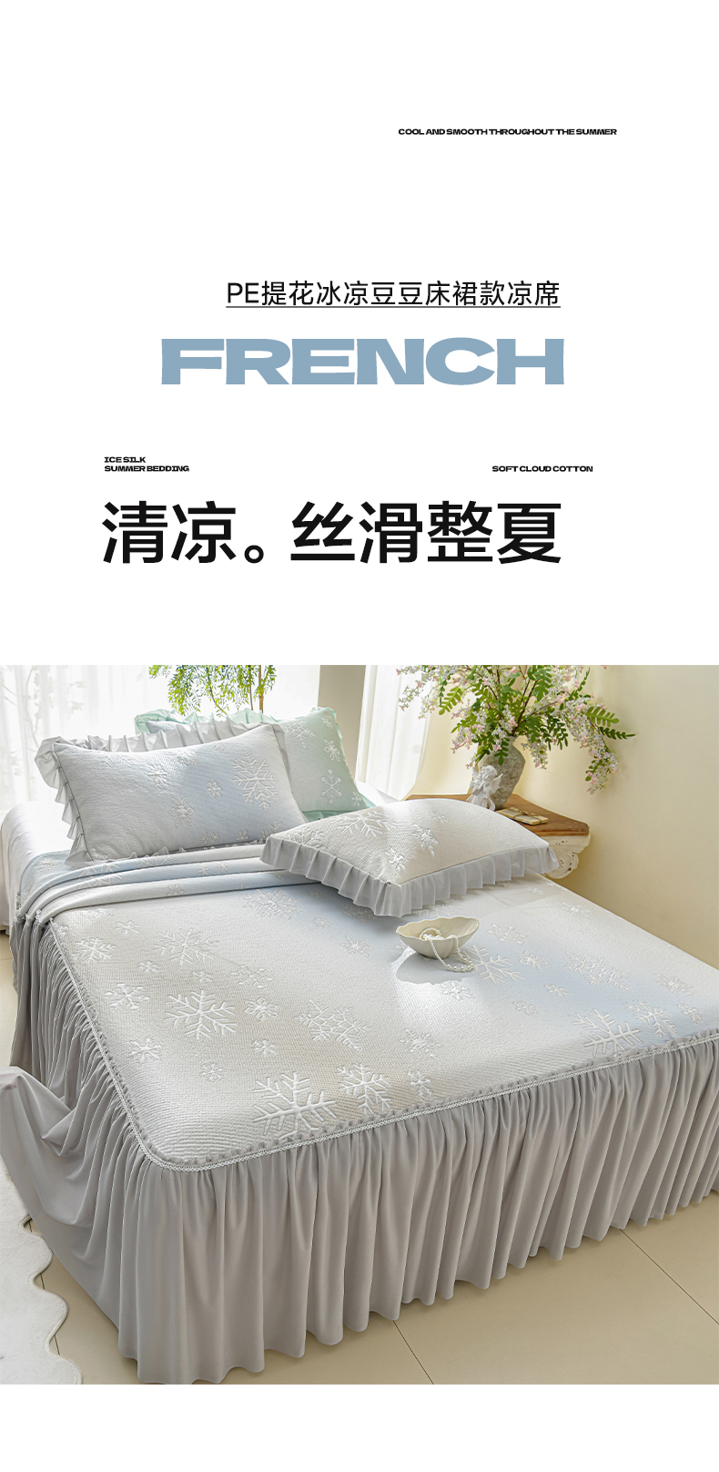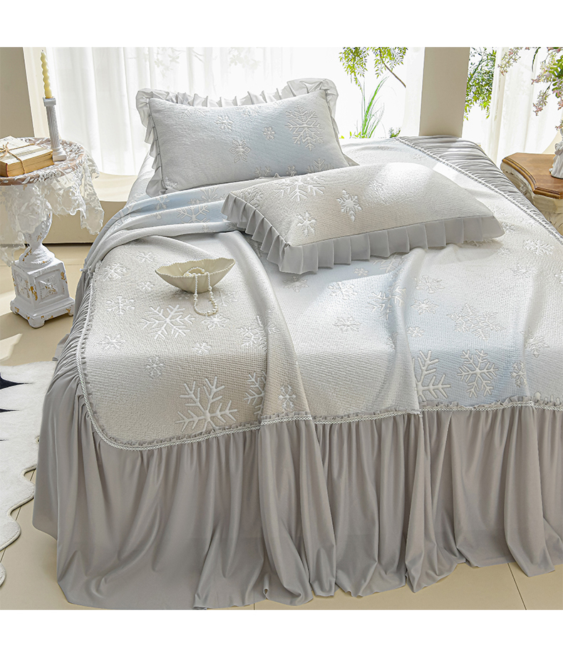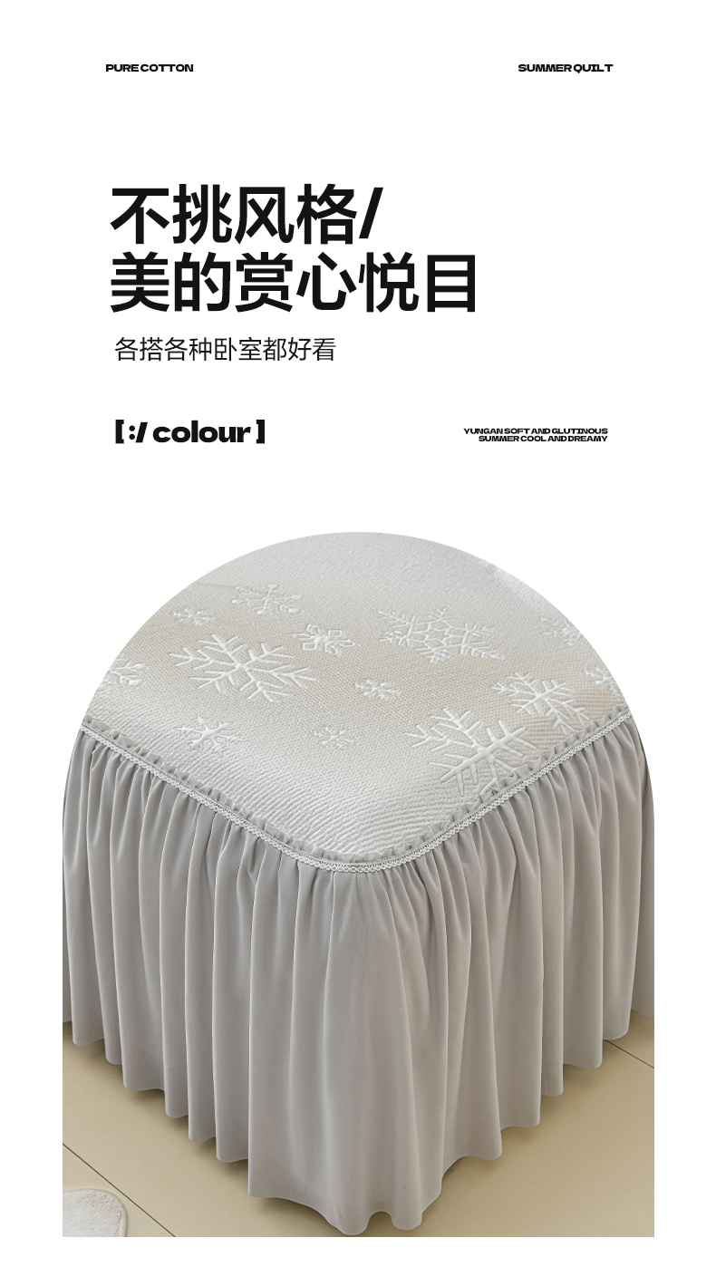 商品名称:绘萱家居 2026春夏新款530克PE100%提花冰凉豆豆床裙款凉席席子空调软席 渐变雪花-灰