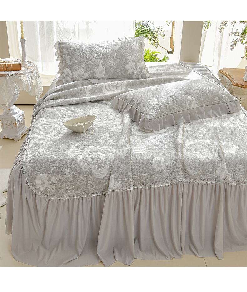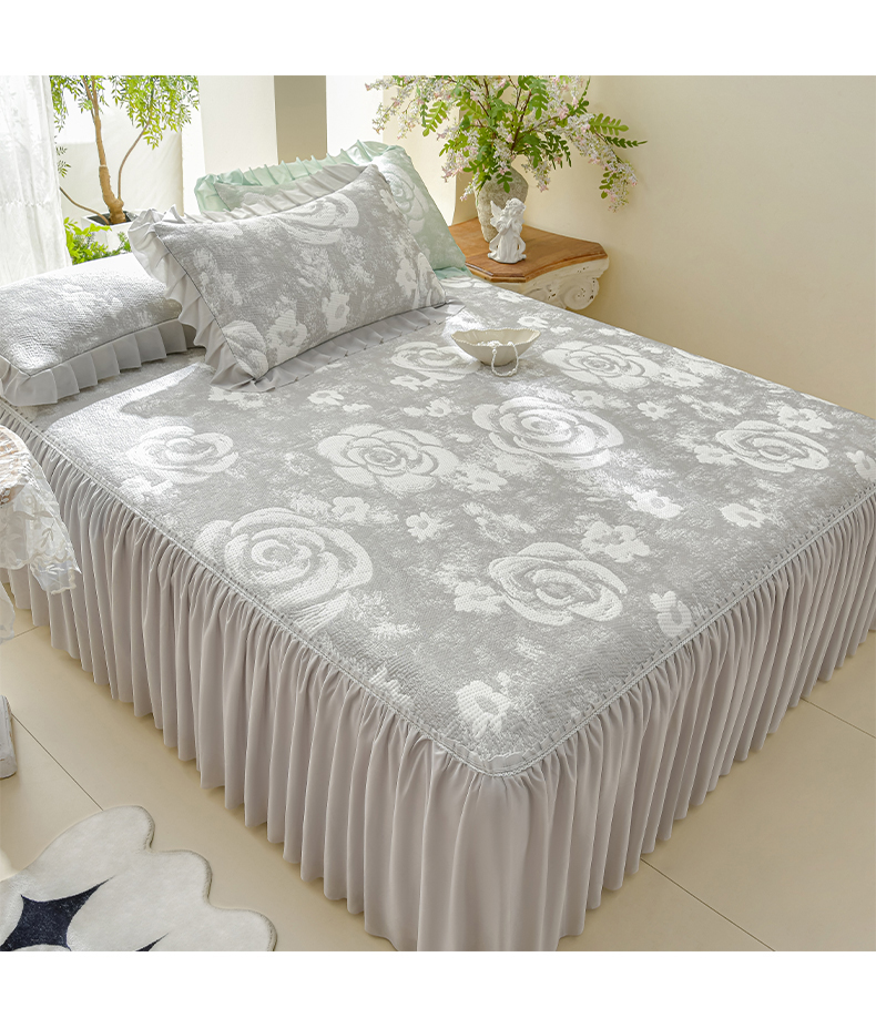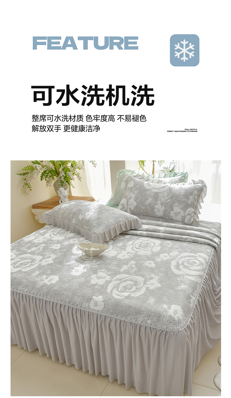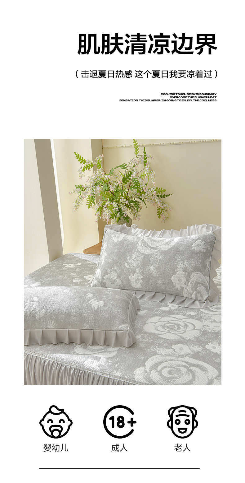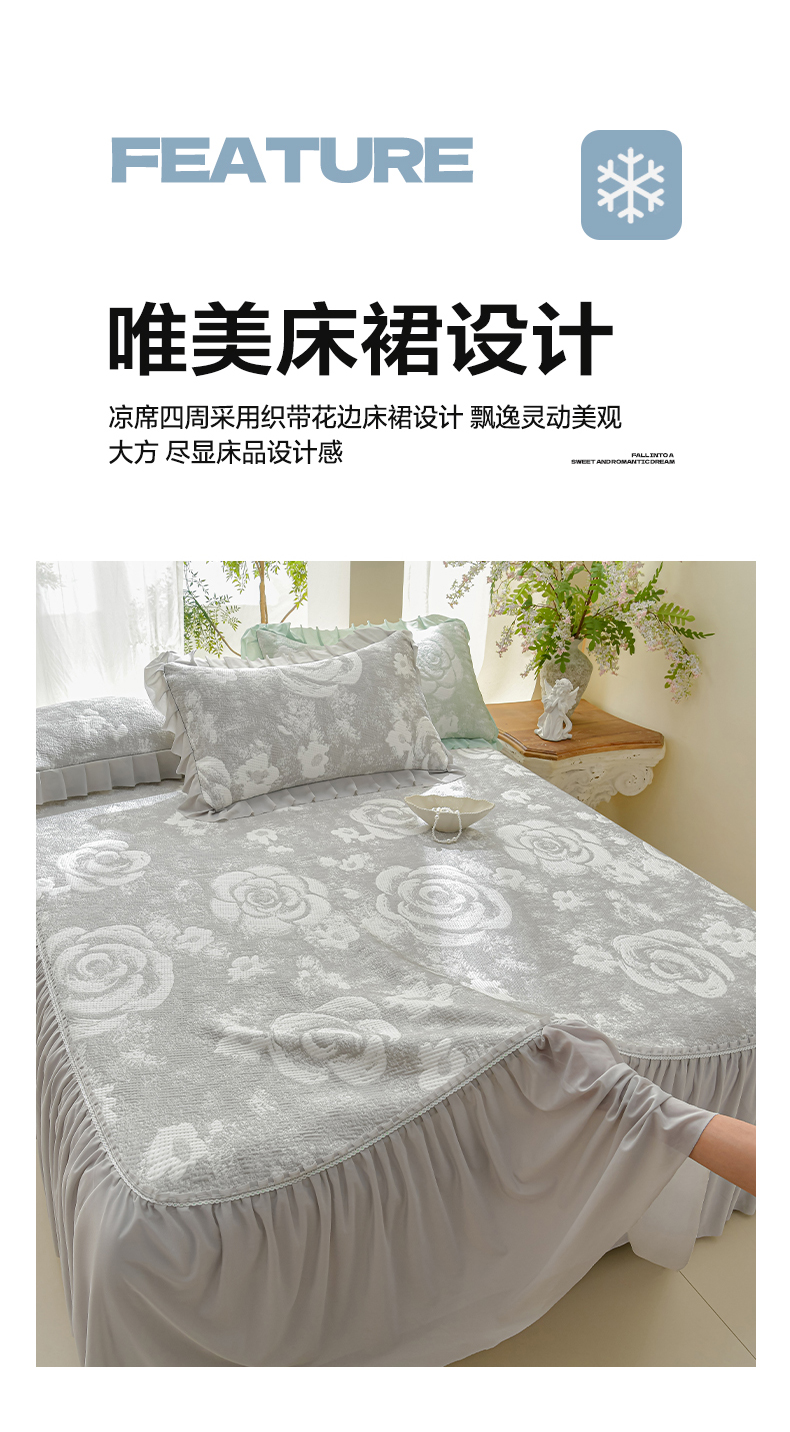 商品名称:绘萱家居 2026春夏新款530克PE100%提花冰凉豆豆床裙款凉席席子空调软席 云裳玫瑰-灰