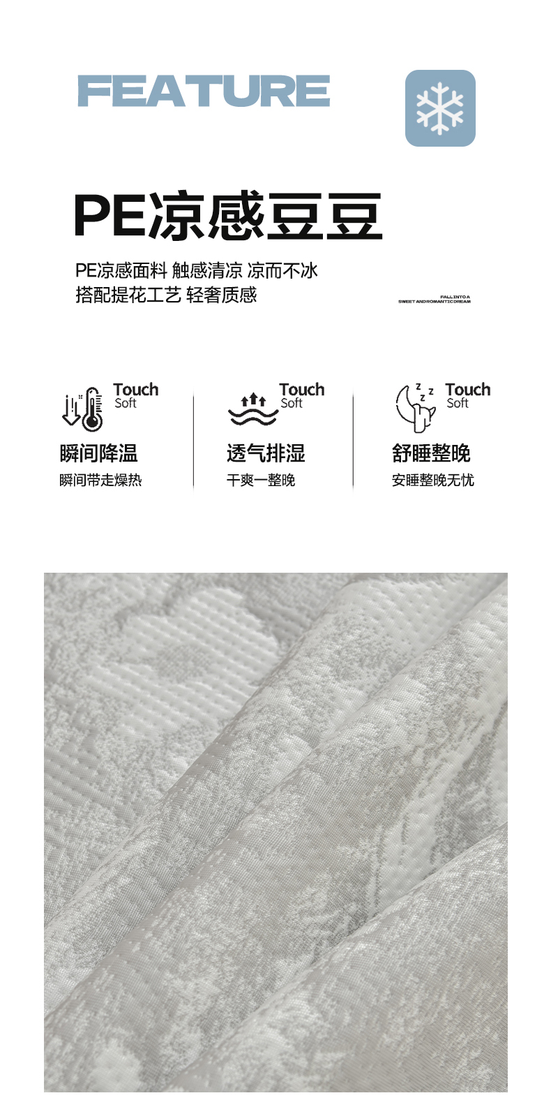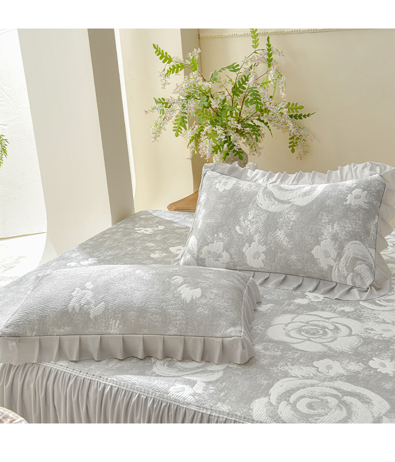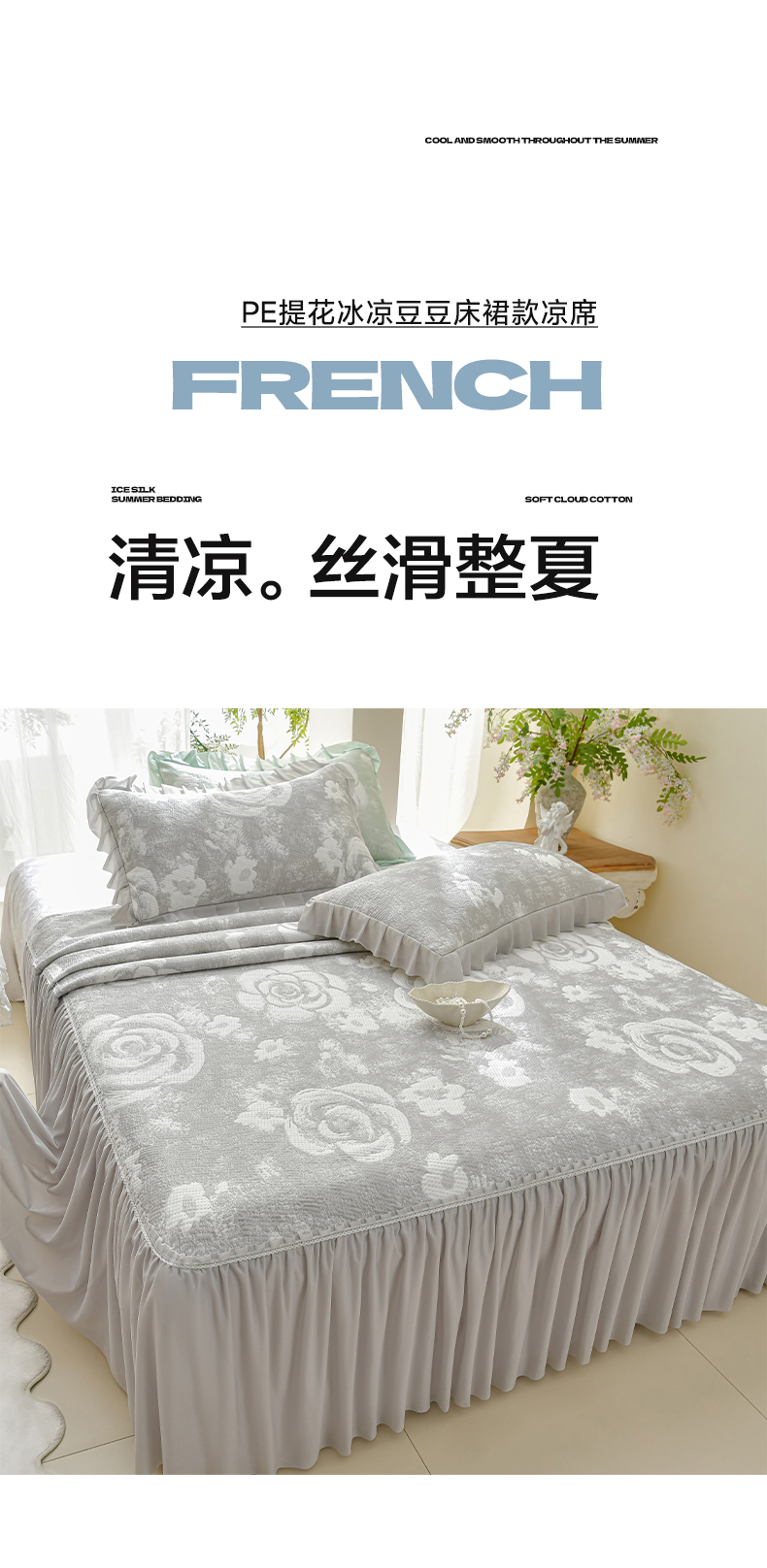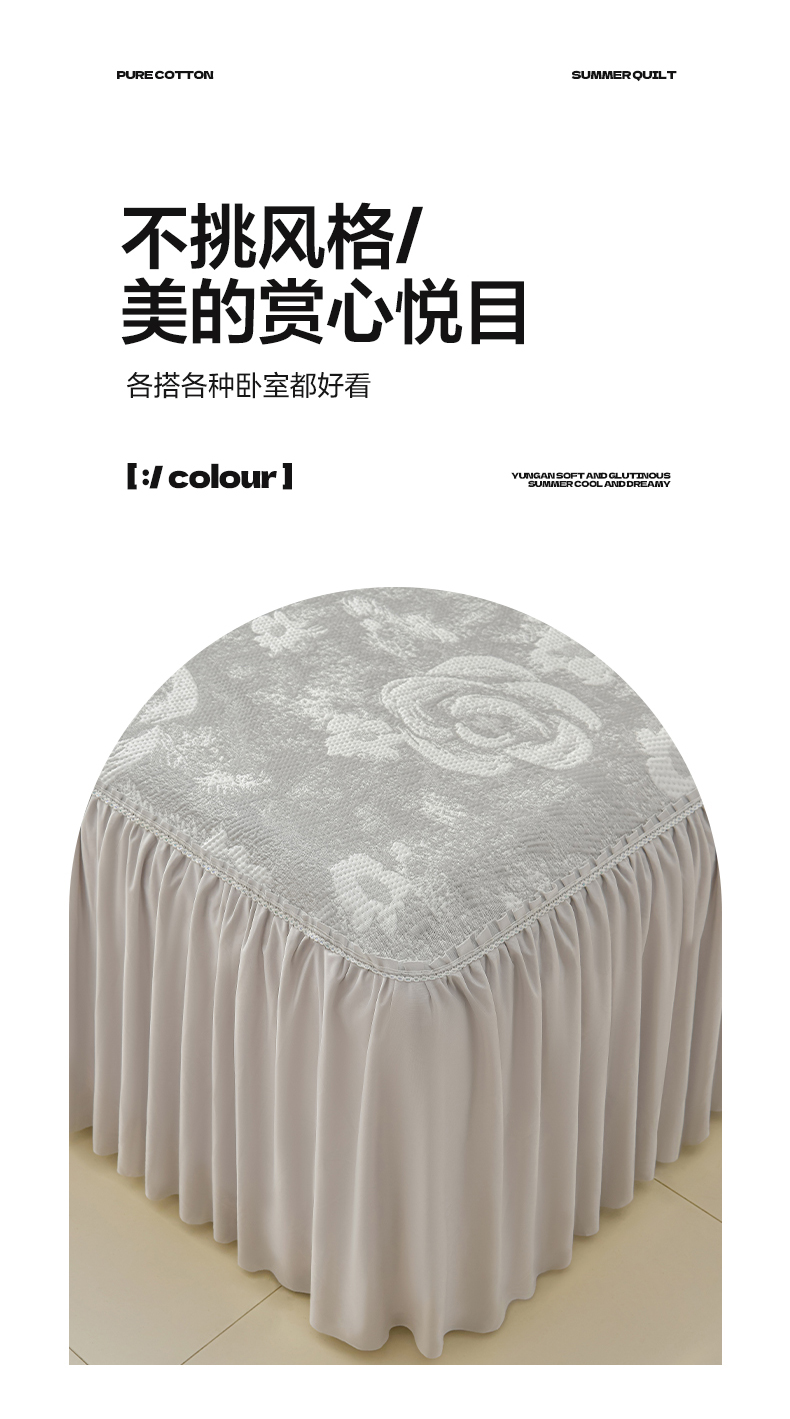商品名称:绘萱家居 2026春夏新款530克PE100%提花冰凉豆豆床裙款凉席席子空调软席 云裳玫瑰-灰