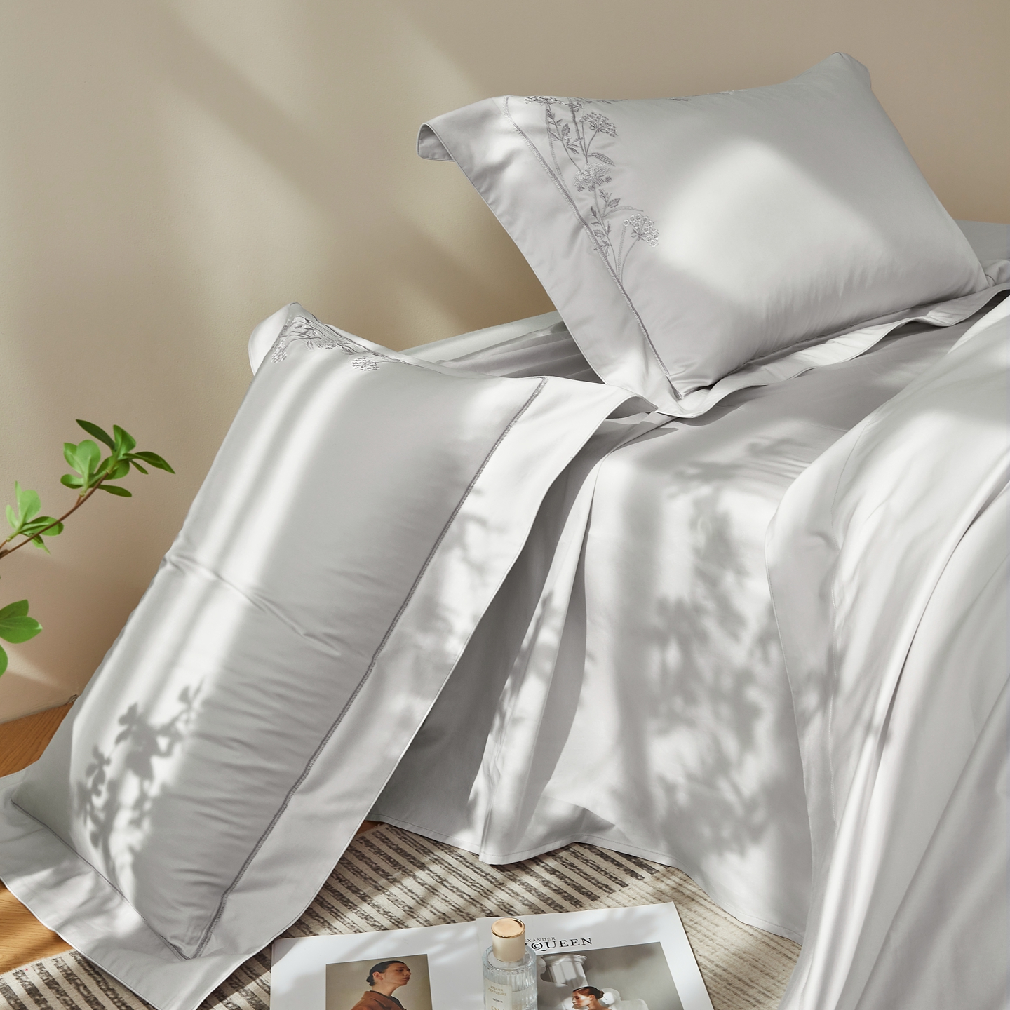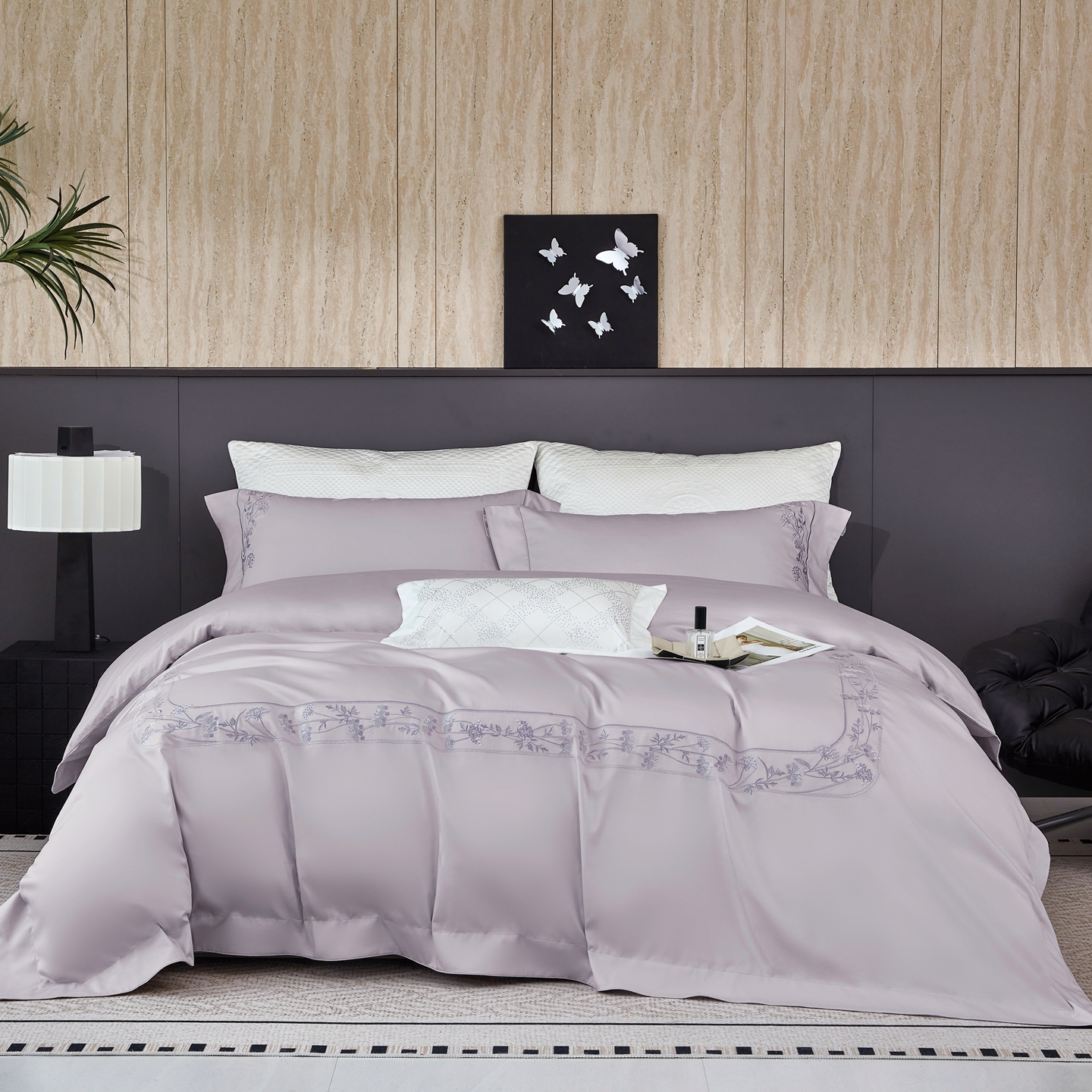 总榻尚家居 2023新款格瑞斯系列100贡缎长绒棉四件套工艺款四件套,格瑞斯紫,格瑞斯白,格瑞斯灰,格瑞斯蓝
