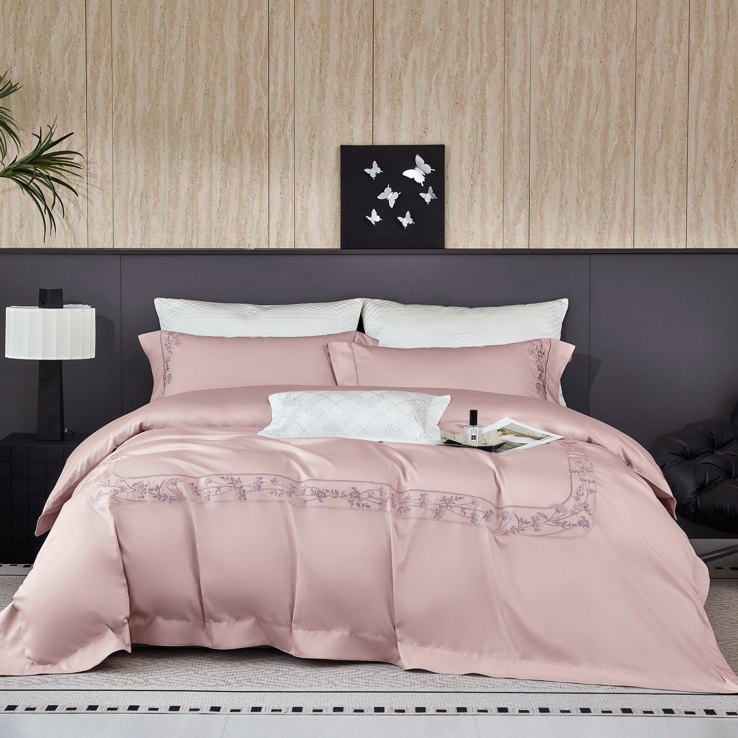 (总)榻尚家居 2023新款纯棉贡缎提花四件套(会员-10),缤兰,烟粉