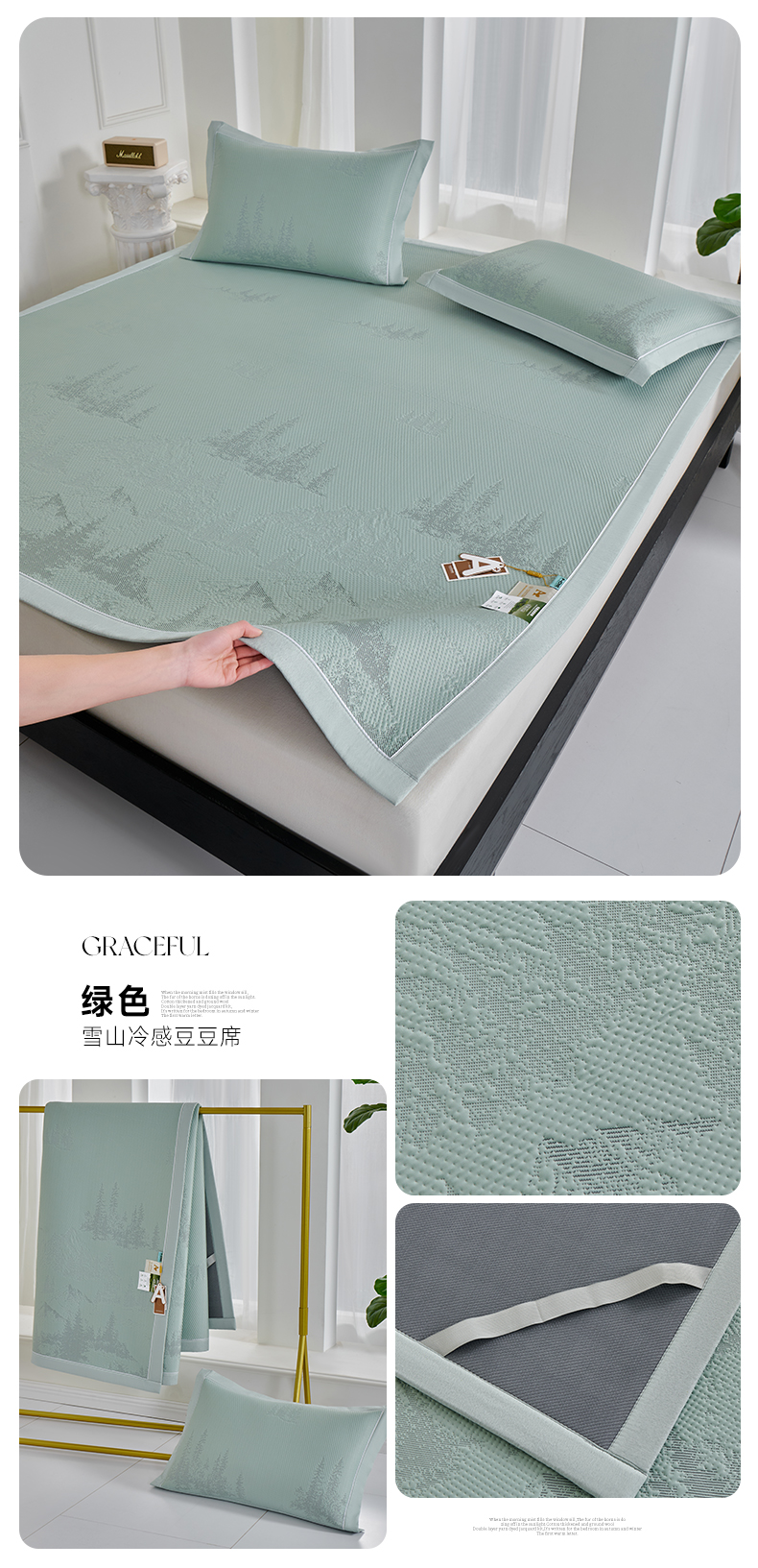 (总)小牛席业 2026新款雪山冷感豆豆席系列(床笠款)凉席藤席冰藤席竹席空调席草席冰丝席豆豆席乳胶席三件套,灰色,粉色,蓝色,绿色