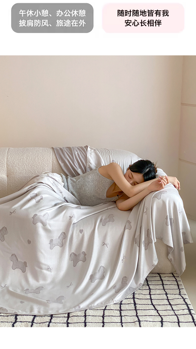 商品名称:麻依 2026新款竹纤维单层毛巾被盖毯夏凉被冷感毯 小马-蓝色