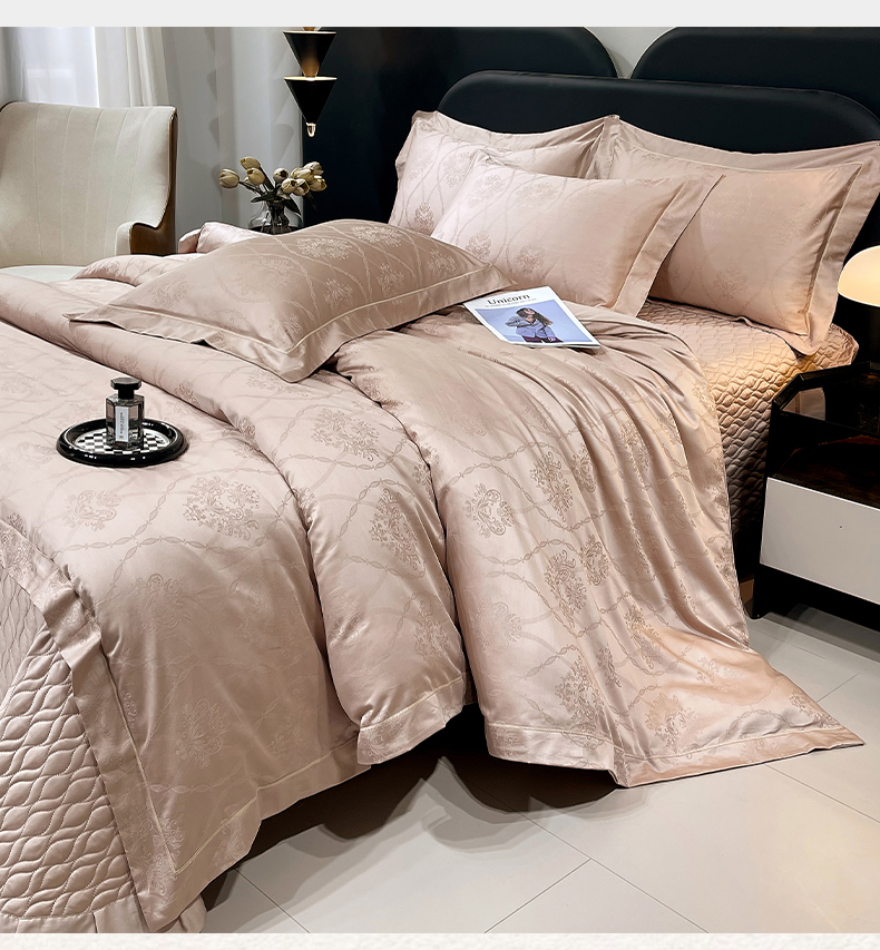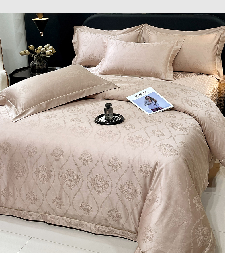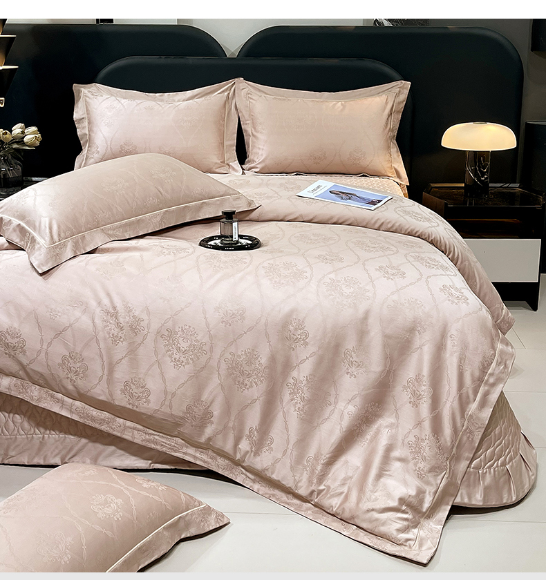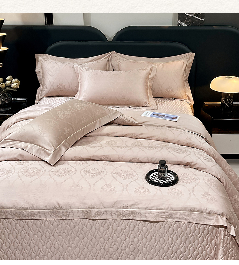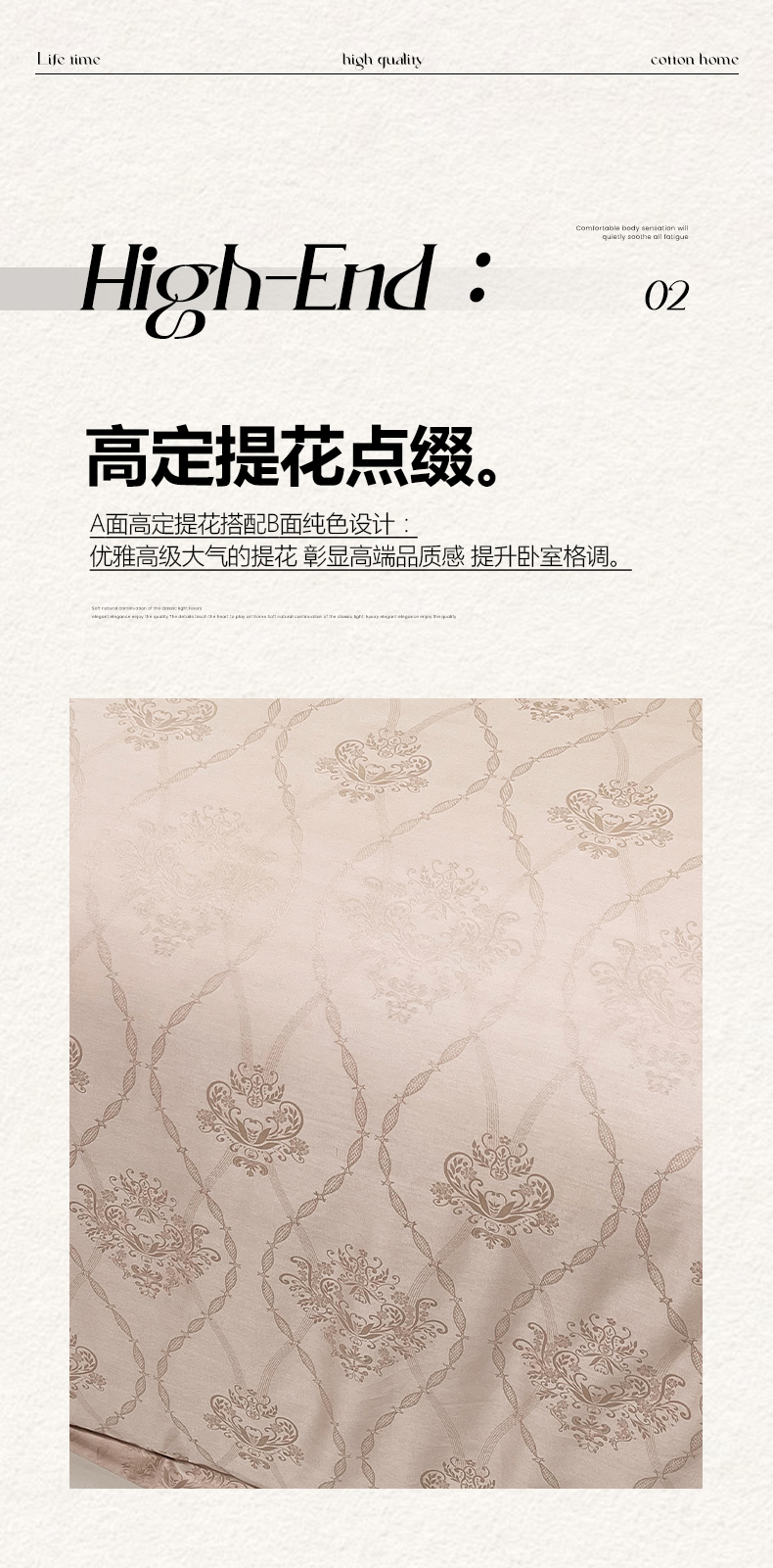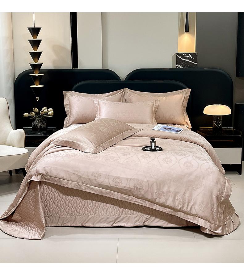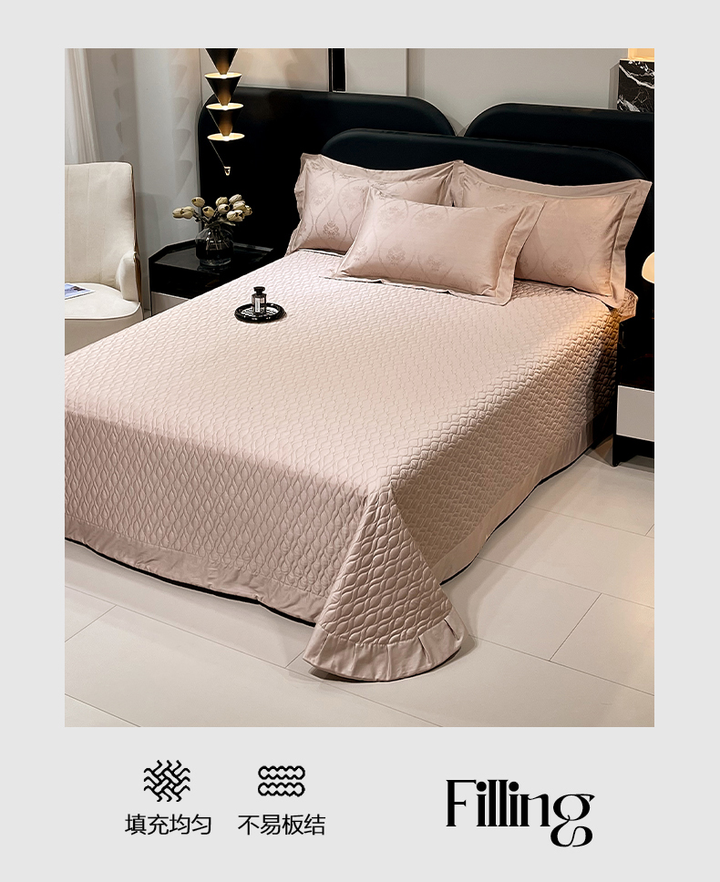 商品名称:畅畅家纺 2026新款高档100支长绒棉高定提花夹棉床盖纯色四件套 罗维娜-香槟