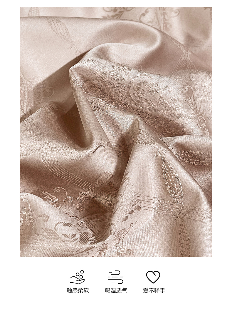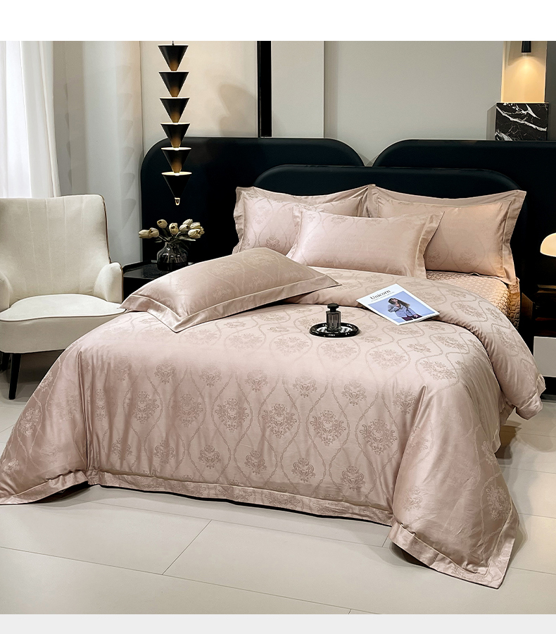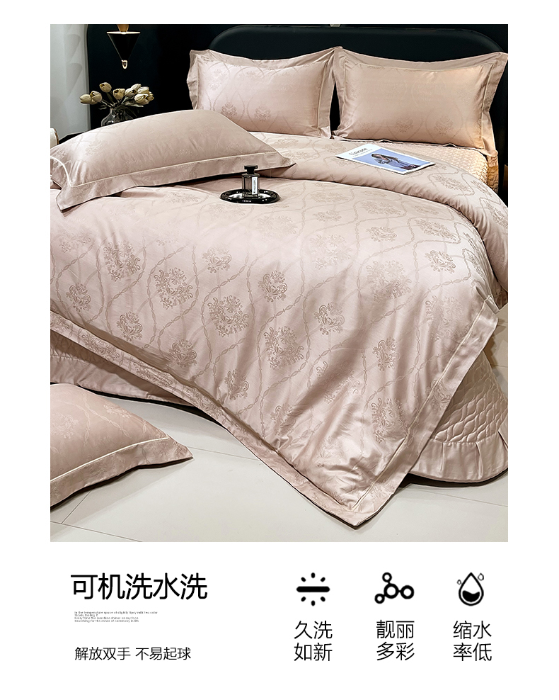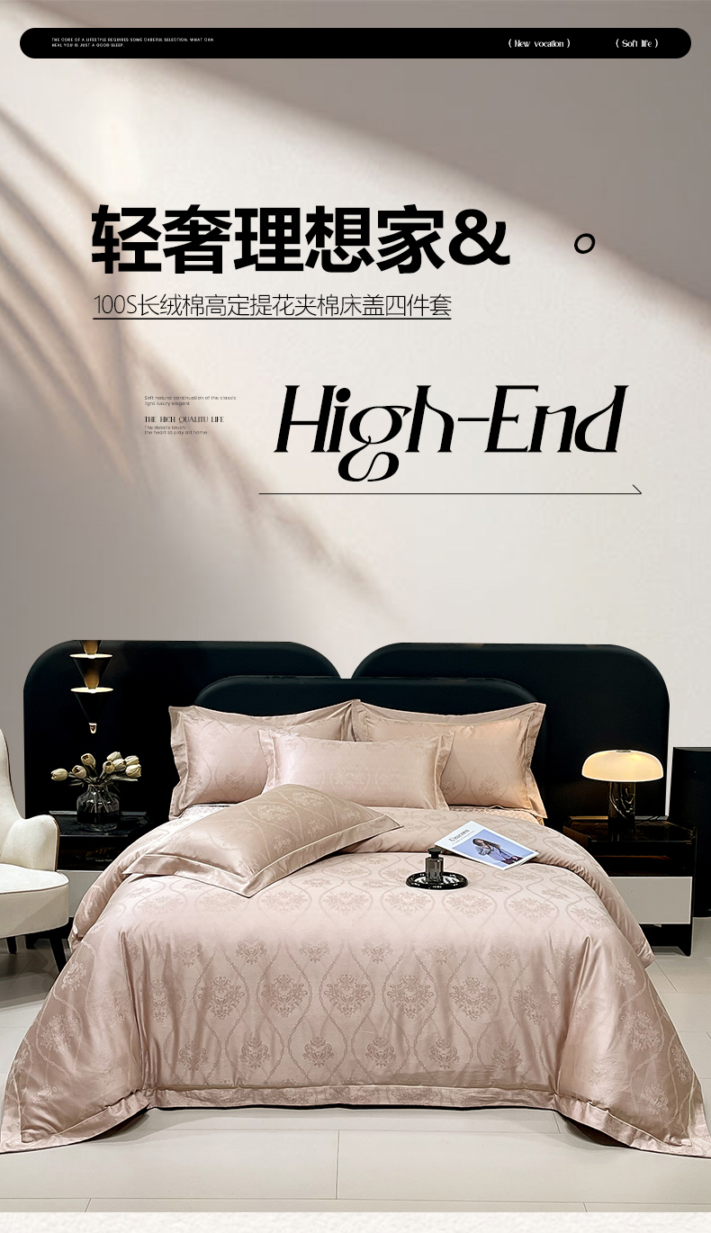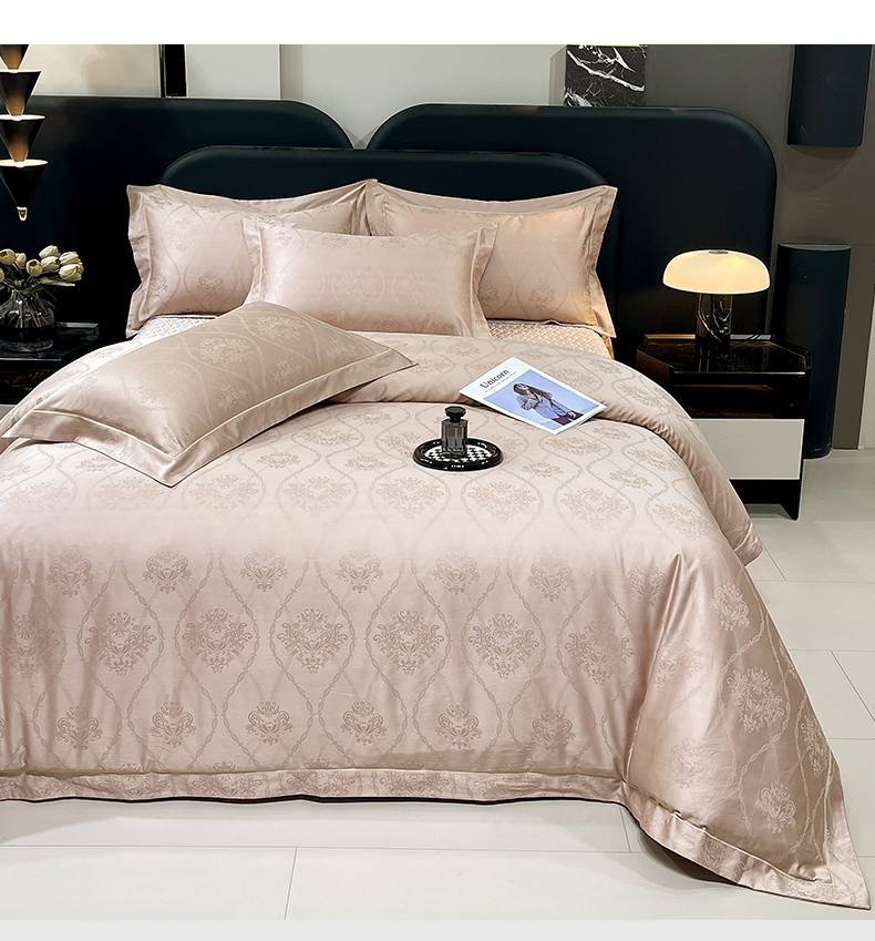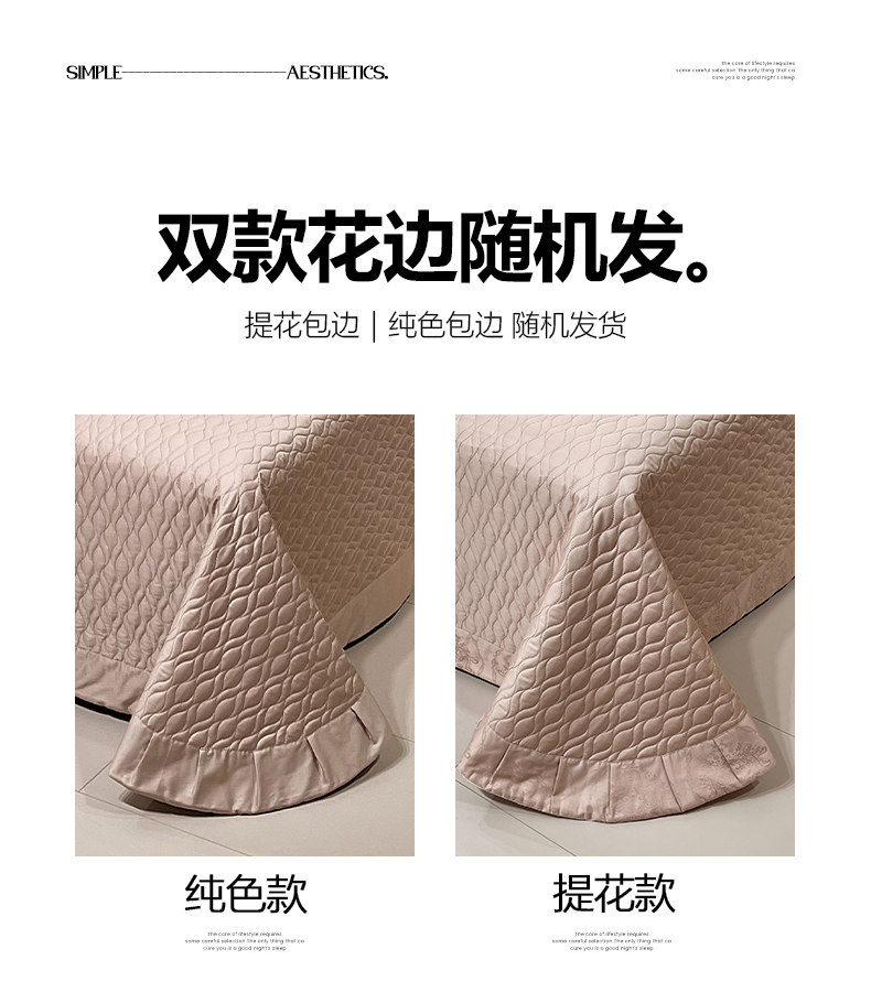 商品名称:畅畅家纺 2026新款高档100支长绒棉高定提花夹棉床盖纯色四件套 罗维娜-香槟