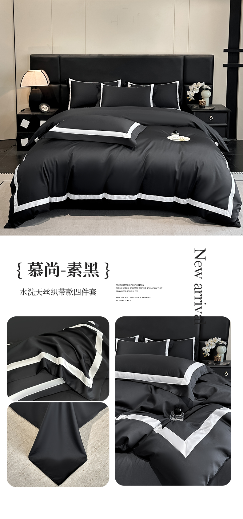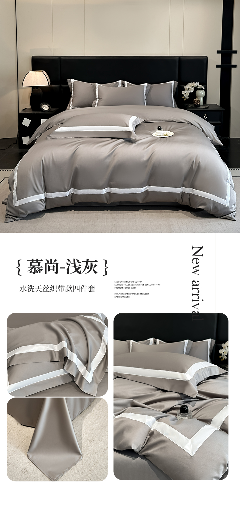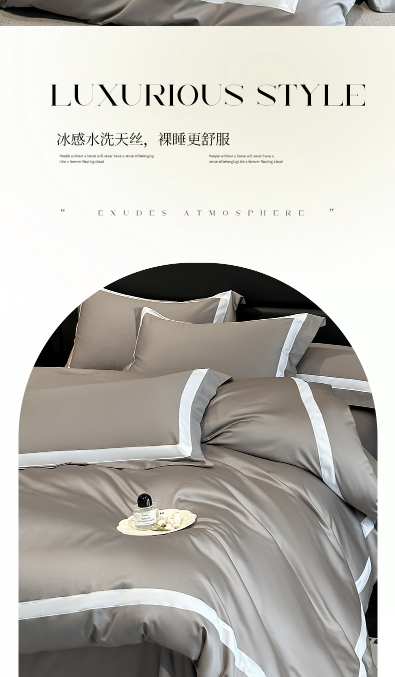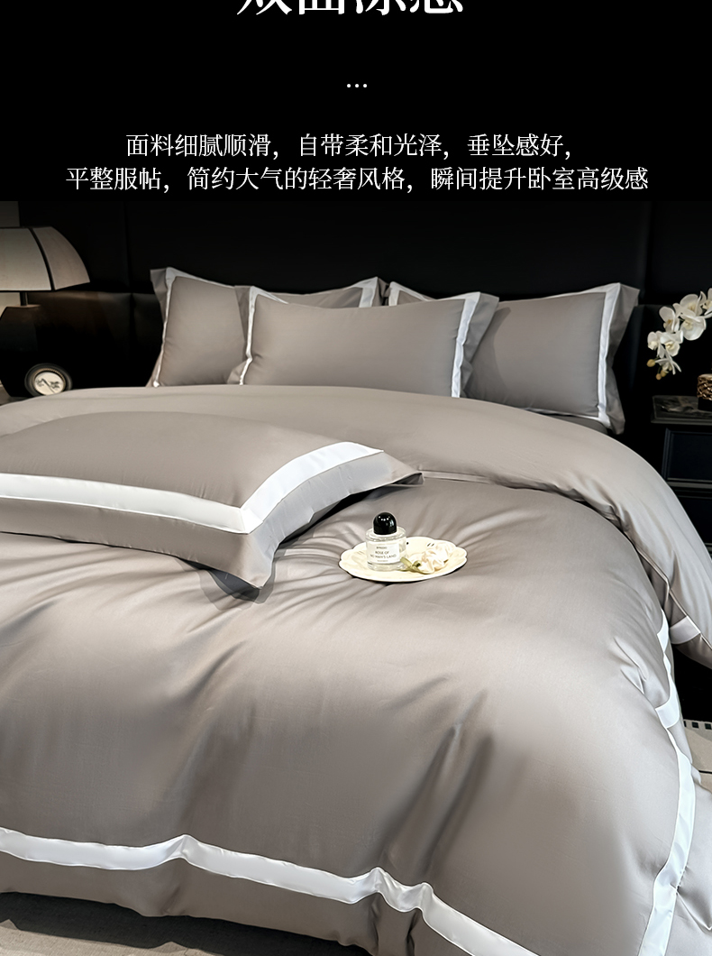 商品名称:(总)苏源家居 2026新款夏季酒店风水洗天丝织带款冰丝被套四件套-慕尚