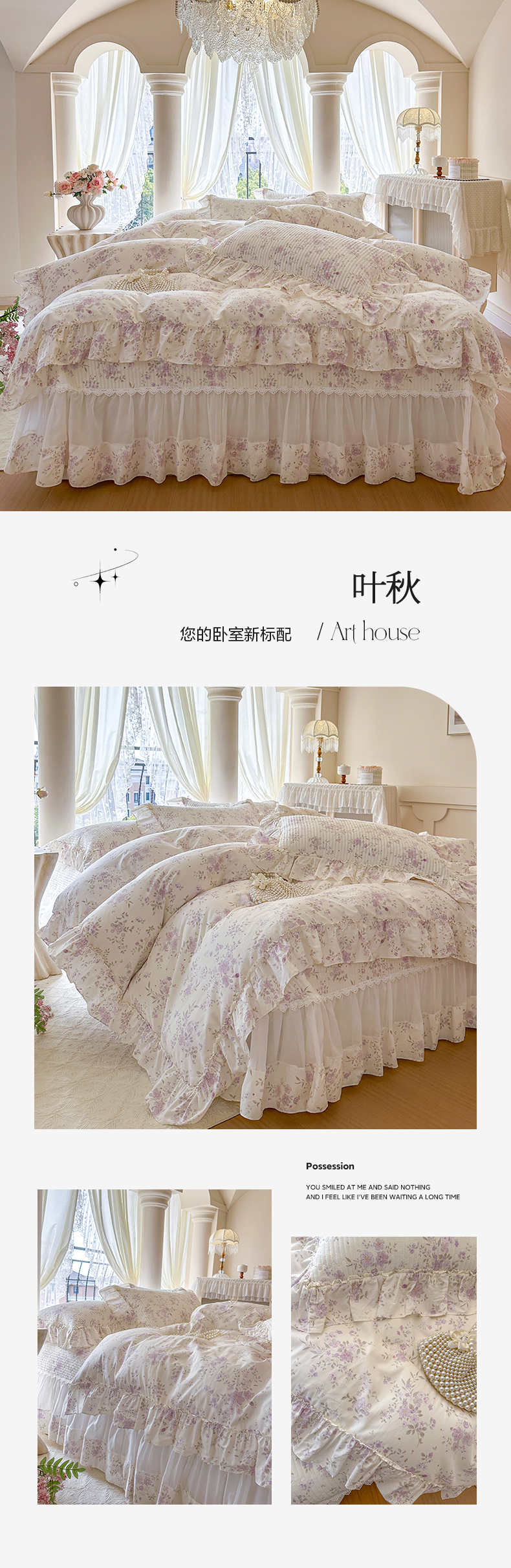 (总)瑞宝 2026新款法式全棉印花床裙四件套,洛可可小姐,淡陌,禾风织野,花慕里,花信风来,娜朵,织梦,紫花蕾