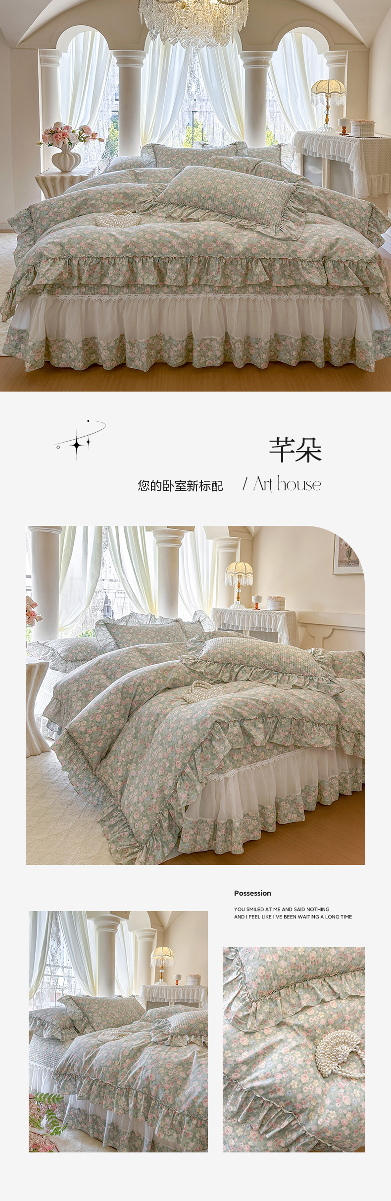 (总)瑞宝 2026新款春款全棉印花床裙四件套【控价265起 各平台严格控价:所有尺寸在扣除店铺优惠券后利润不得少于80(包含活动期)】,春田绿,花蕾紫,花时,花悦美,拉菲庄园,漫步花庭,美林意境,那年花开