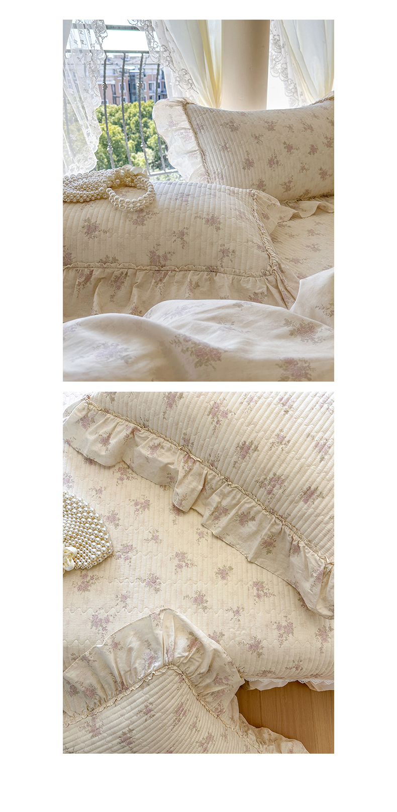 (总)瑞宝 2026新款全棉法式田园风玻璃纱床盖三件套,淡桔,半夏,春信,林晚,南湘,樱洛,叶秋,花境,简宁,绿茵,芊朵,颂青