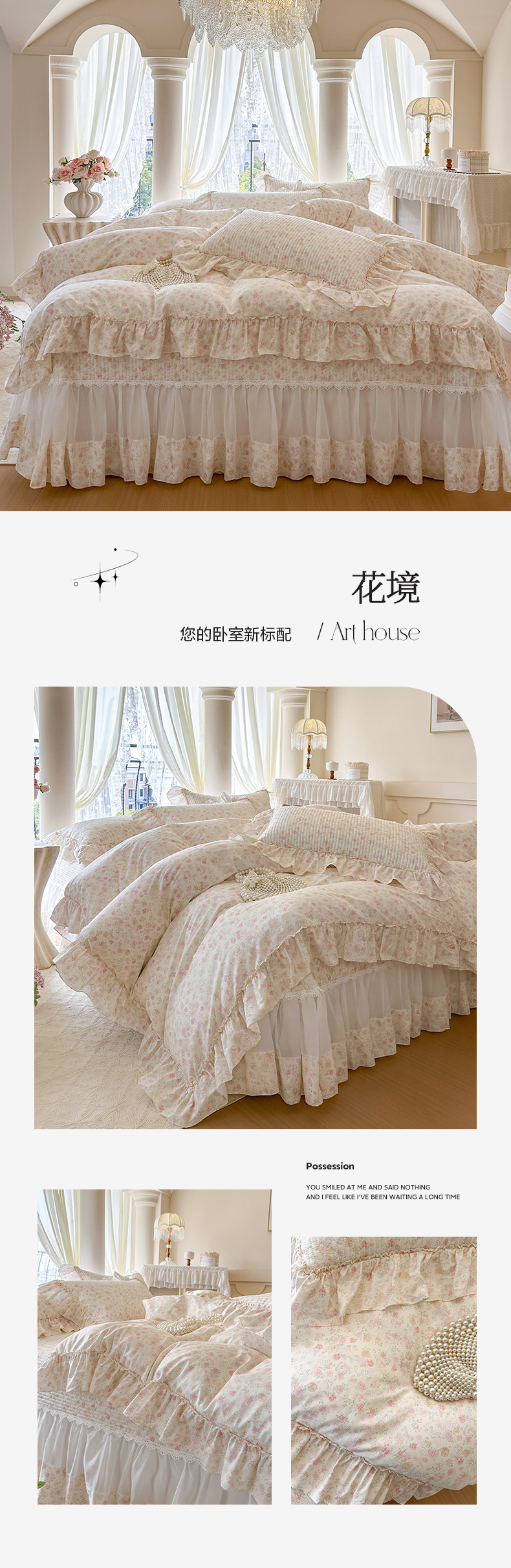 (总)瑞宝 2026新款法式全棉印花床裙三件套 严格控价。利润不低于90 除平台优惠券,洛可可小姐,淡陌,禾风织野,花慕里,花信风来,娜朵,织梦,紫花蕾
