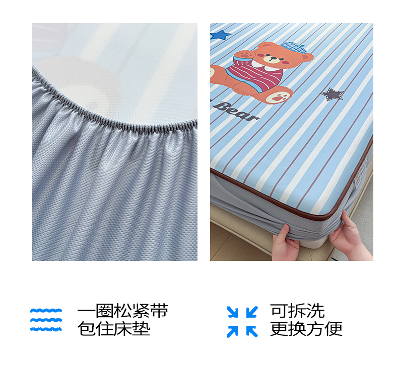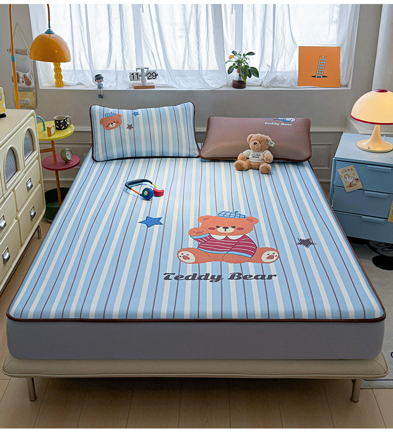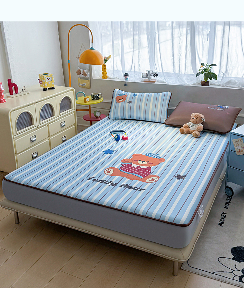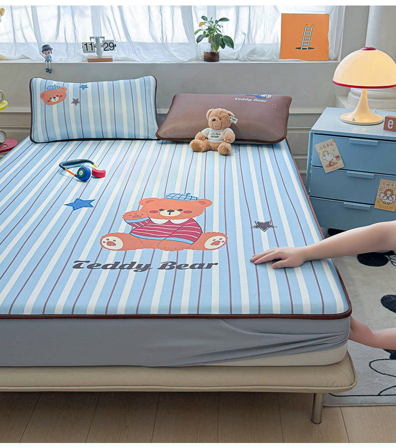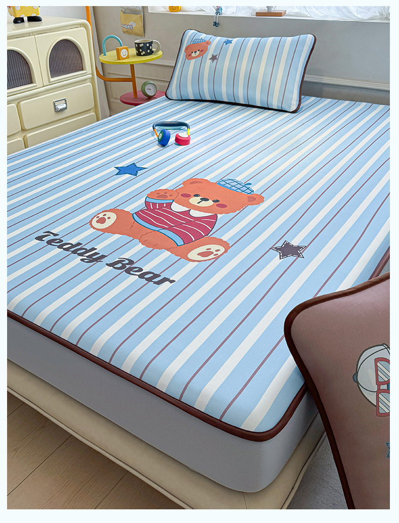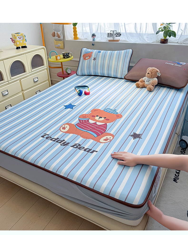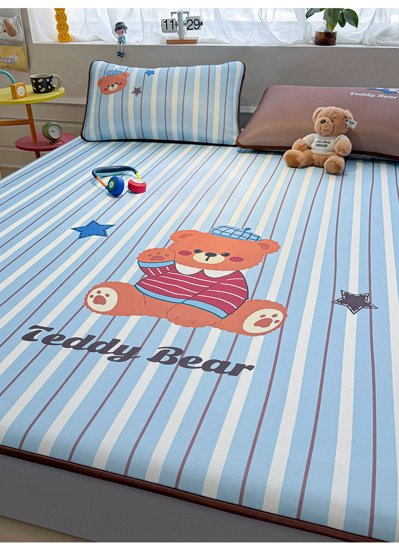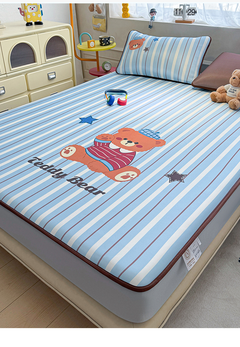 商品名称:雯豆家纺 【10A抗菌包检测】2026新款小冰皮床笠大版卡通床笠夏季凉感床笠软席子 小冰皮床笠-泰迪熊