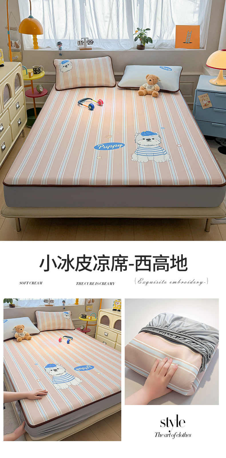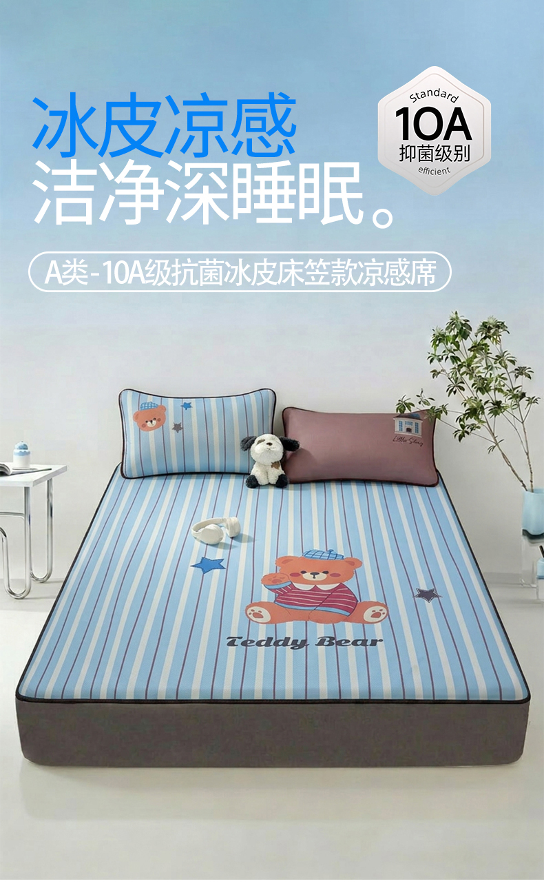 雯豆家纺 【10A抗菌包检测】2026新款小冰皮床笠大版卡通床笠夏季凉感床笠软席子 小冰皮床笠-泰迪熊