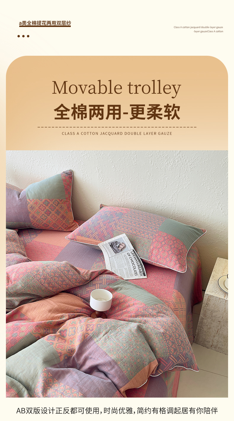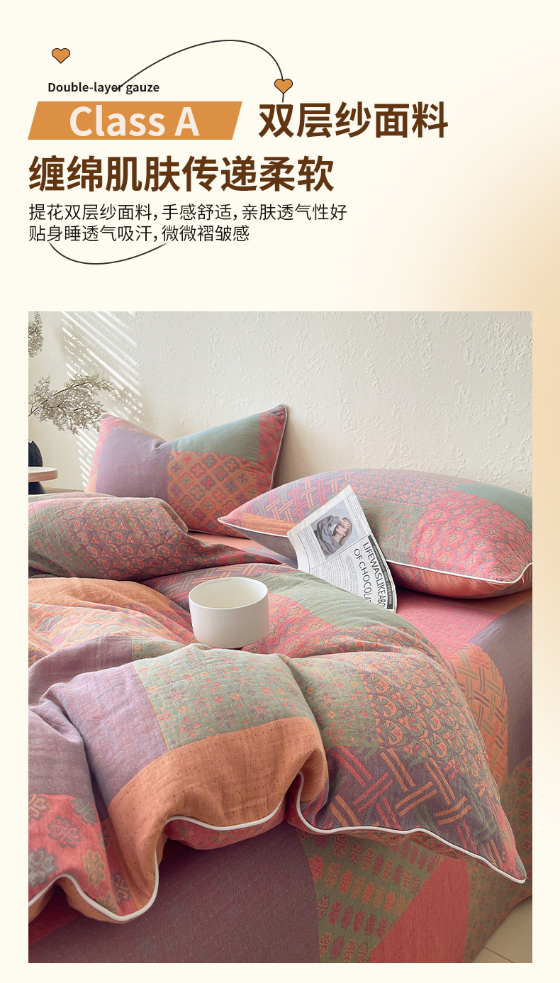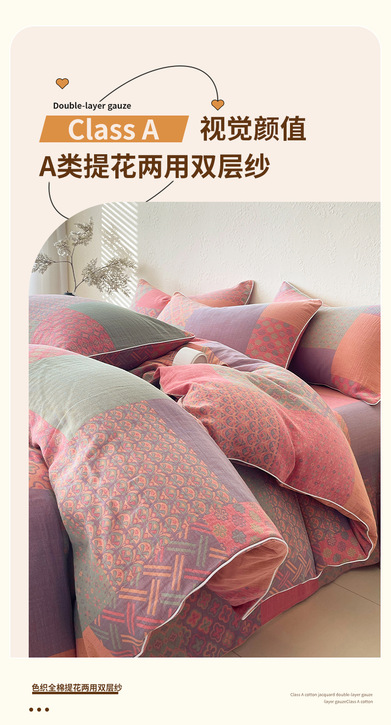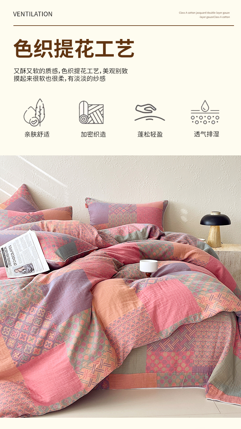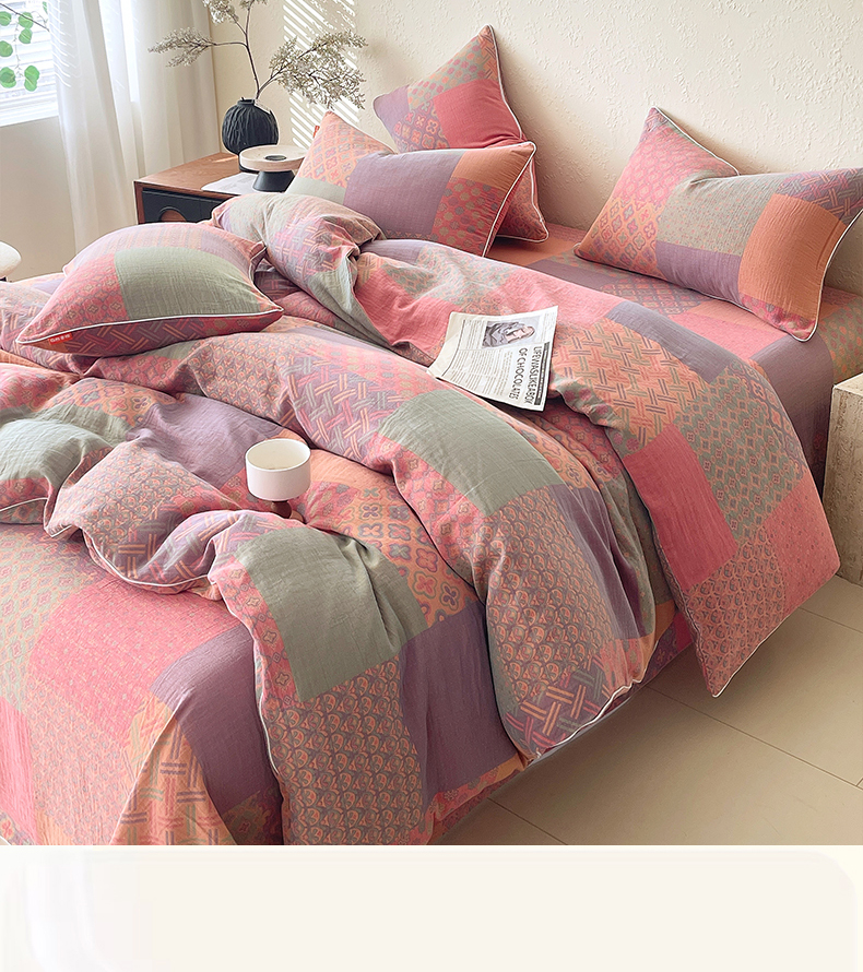 当前位置: 91家纺网 > 商品网购 > 床品套件 > 四件套 > 全棉普通四件套 > 春皖家纺 2026新款提花双层纱纯棉全棉四件套 思菱·粉玉