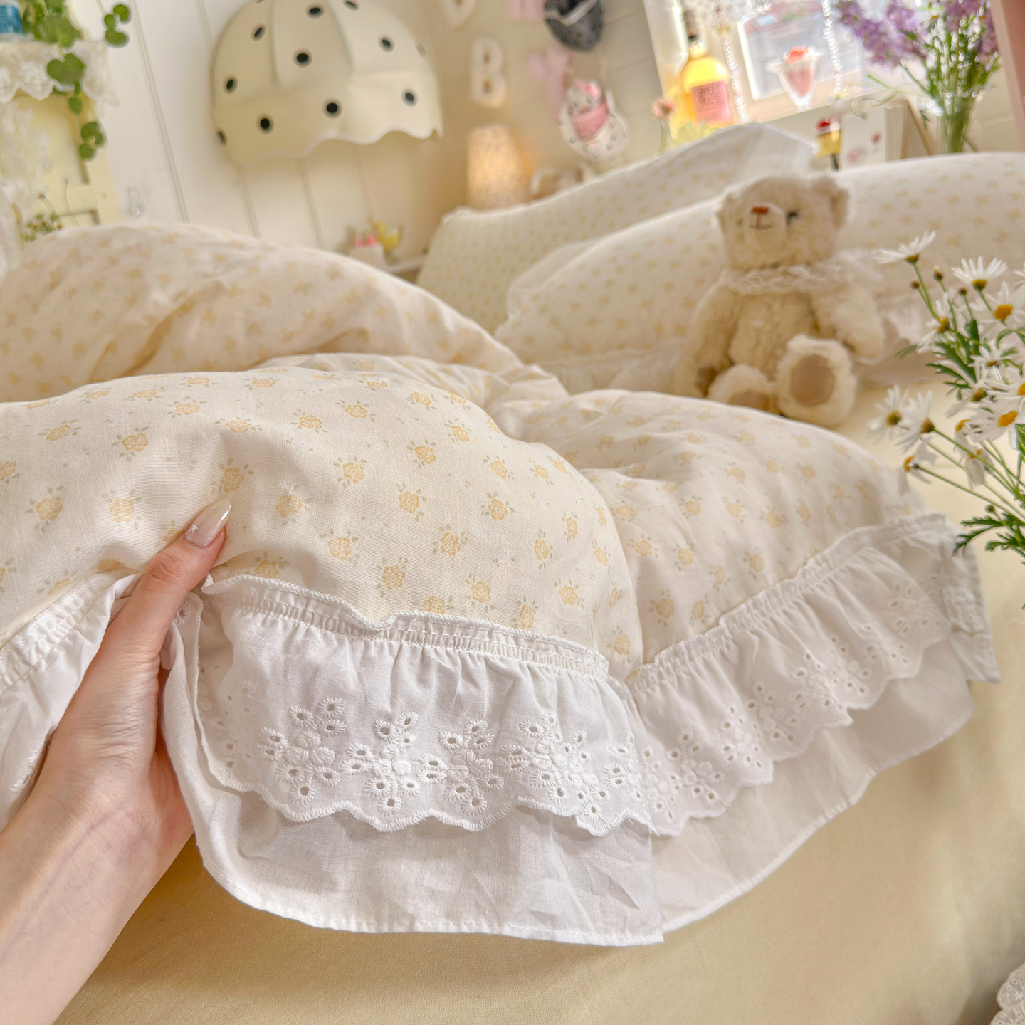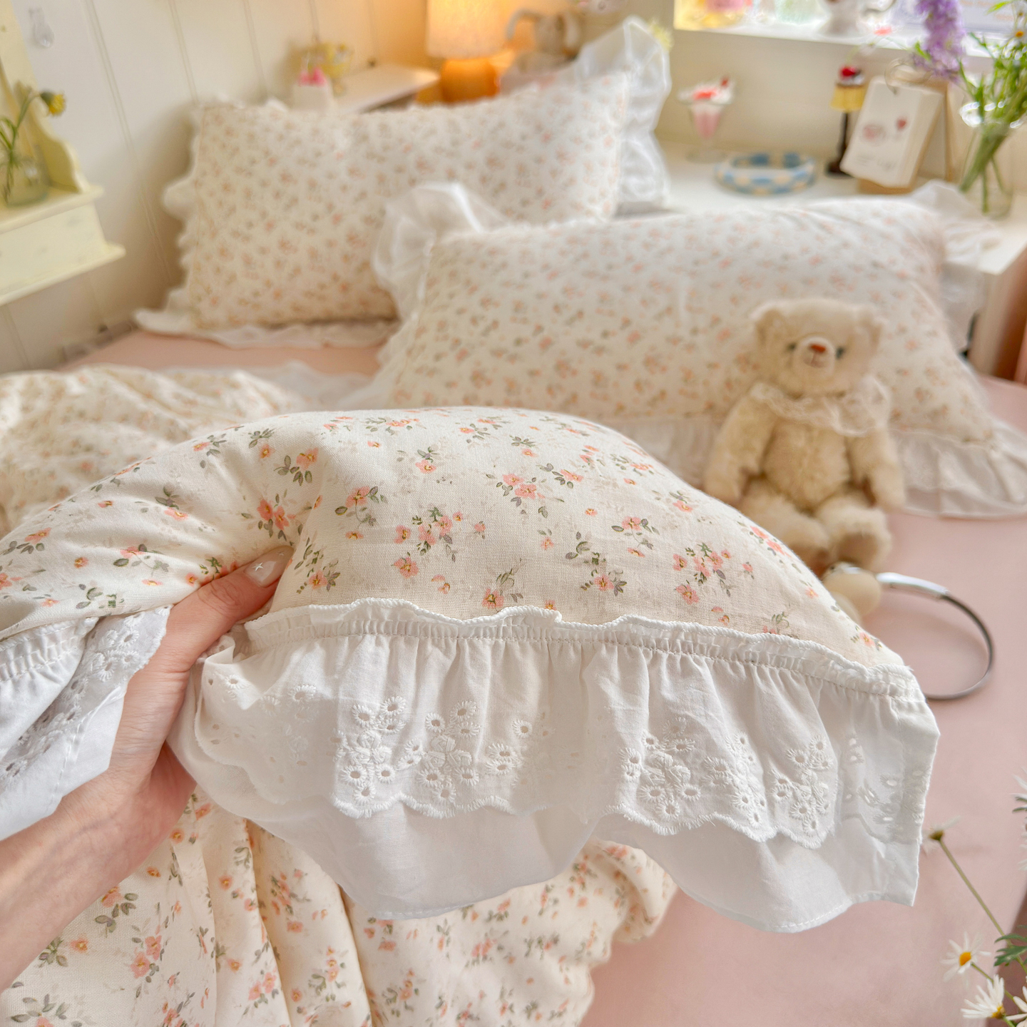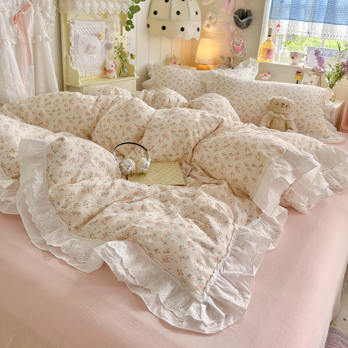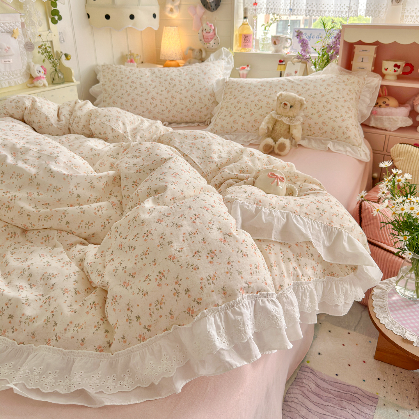 当前位置: 91家纺网 > 商品网购 > 床品套件 > 四件套 > 全棉普通四件套 > (总)锦彩家居 2026新款A类全棉纯棉双层纱韩式花边小清新三件套四件套INS小红书-月下花町系列(提供买家秀)