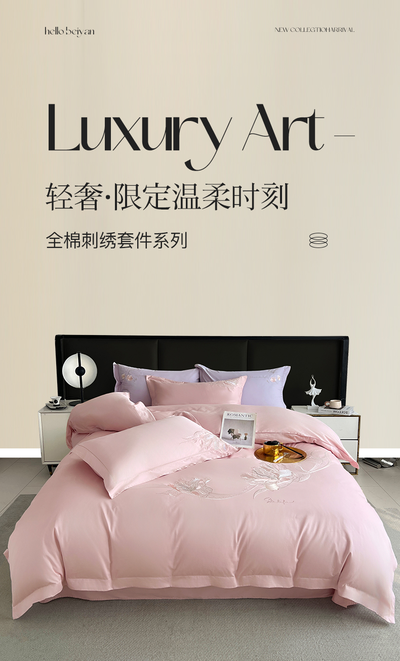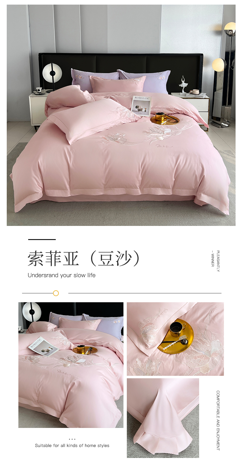 (总)帛美家纺 2026新款全棉纯棉轻奢绣花四件套,花柔-海棠粉,花柔-罗兰紫,花柔-天蓝,莱雅-高级灰,莱雅-浅石兰,梦娜-豆沙,梦娜-嫩芽绿,梦娜-晚波兰