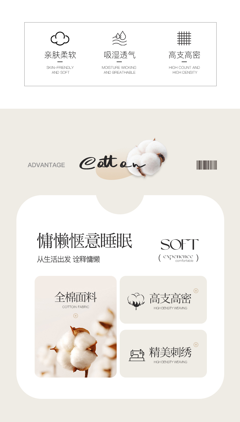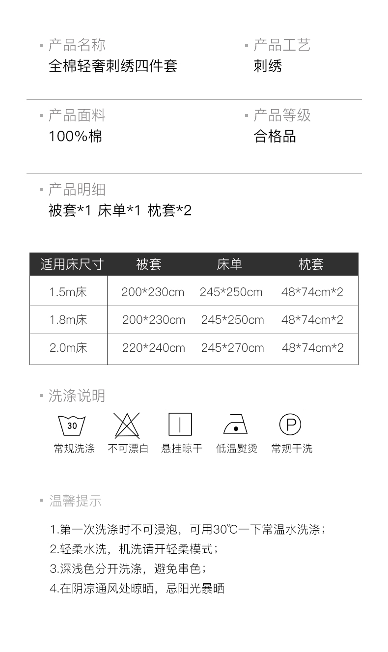 商品名称:(总) 帛美家纺 2026新款100支长绒棉绣花四件套-索菲亚