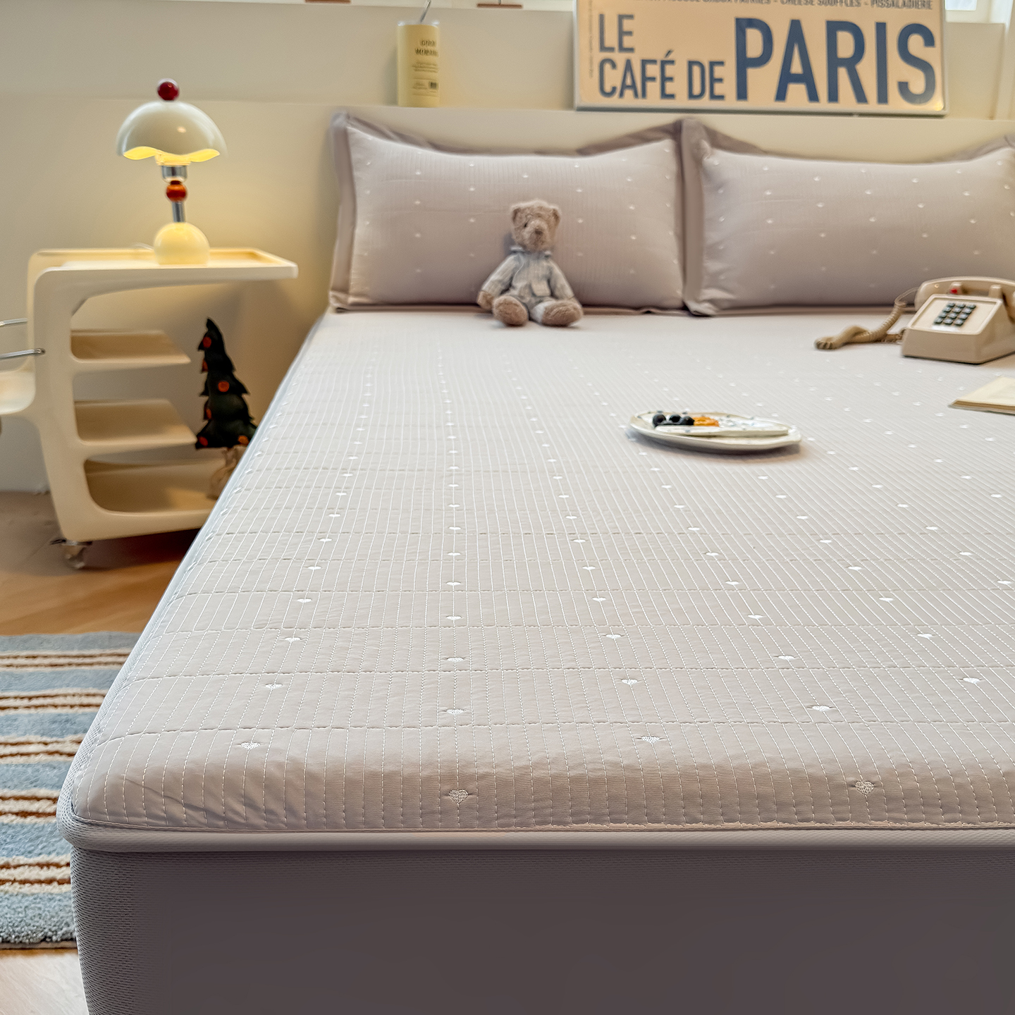 • 91家纺网 家纺一手货源 找家纺 懒猫家纺 2026新款满天星绗绣莫兰迪色系床席床笠款凉席 椰子灰-床席款