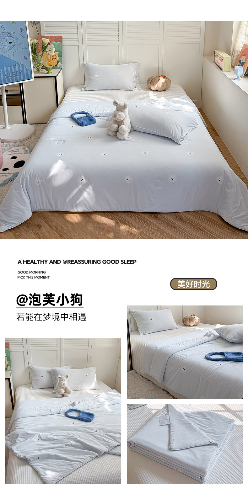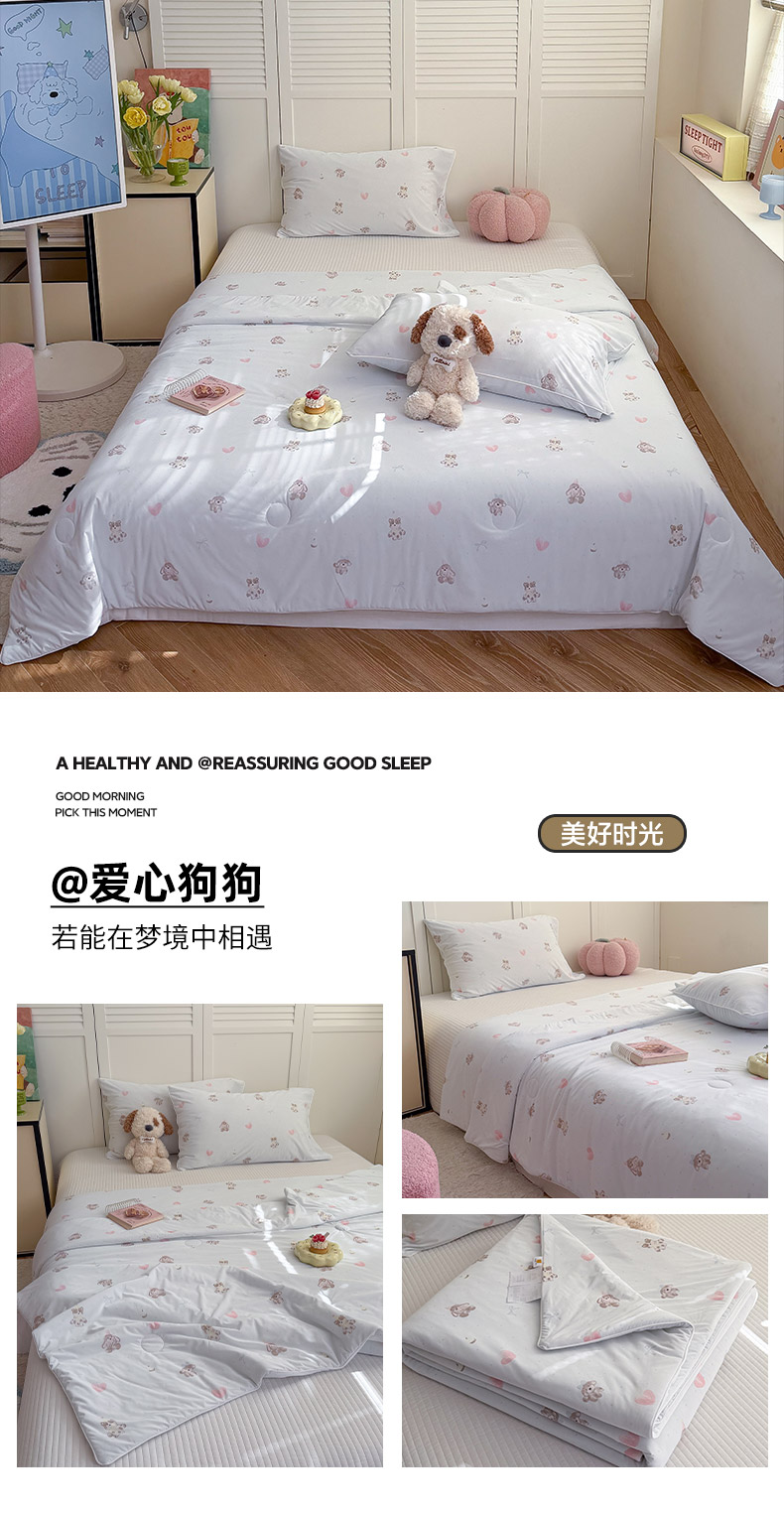 • 91家纺网 家纺一手货源 找家纺 (总)金梦拉家纺 2026春夏新款锦氨凉感丝印花系列夏被空调被夏凉被,爱心狗狗,波点小熊,查理汪,花丛里,快乐星星,蓝调凯蒂,梦幻独角兽,木马蓝,奶蓝小狗,泡芙小狗,森林舞会,顽皮小宠,线条狗,小粉兔,心情绿,组合图仅供参考不可下单