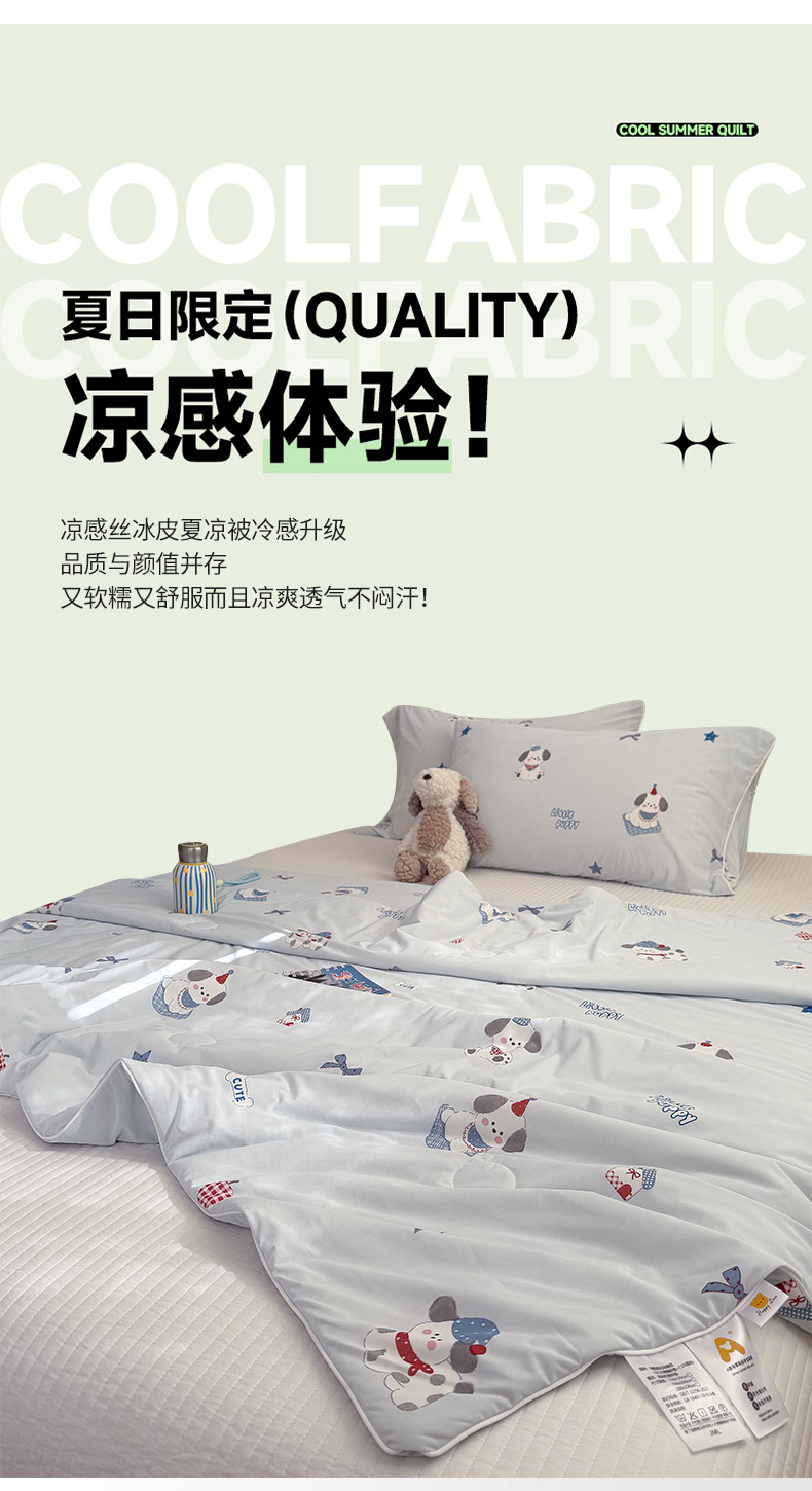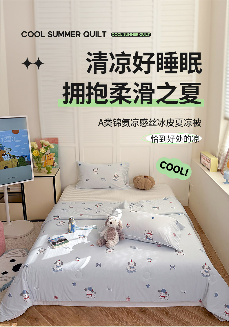 • 91家纺网 家纺一手货源 找家纺 金梦拉家纺 2026春夏新款锦氨凉感丝印花系列夏被空调被夏凉被 顽皮小宠