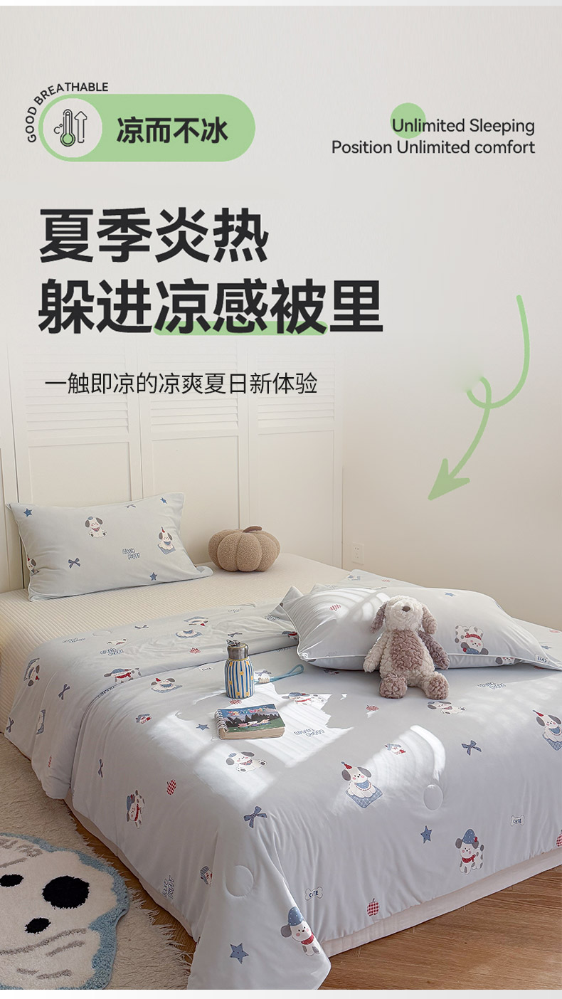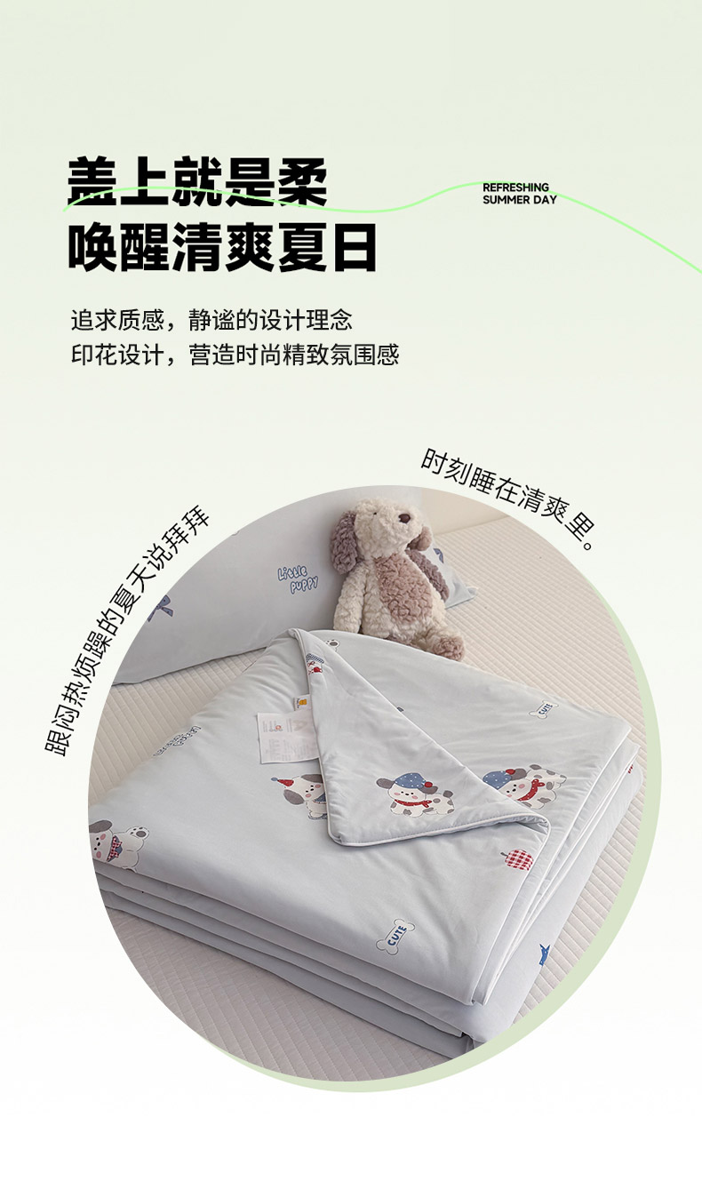金梦拉家纺 2026春夏新款锦氨凉感丝印花系列夏被空调被夏凉被 顽皮小宠