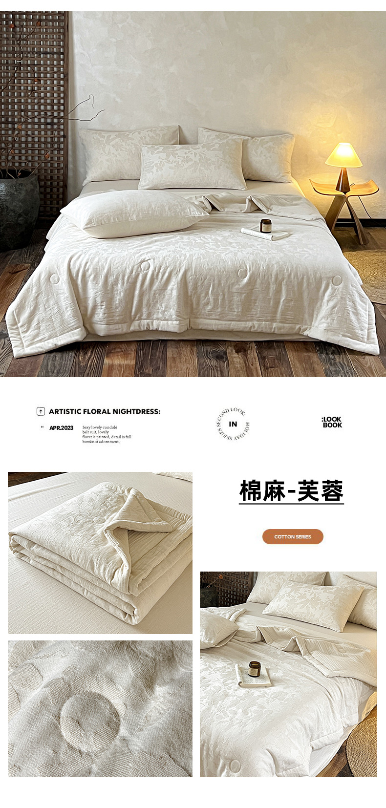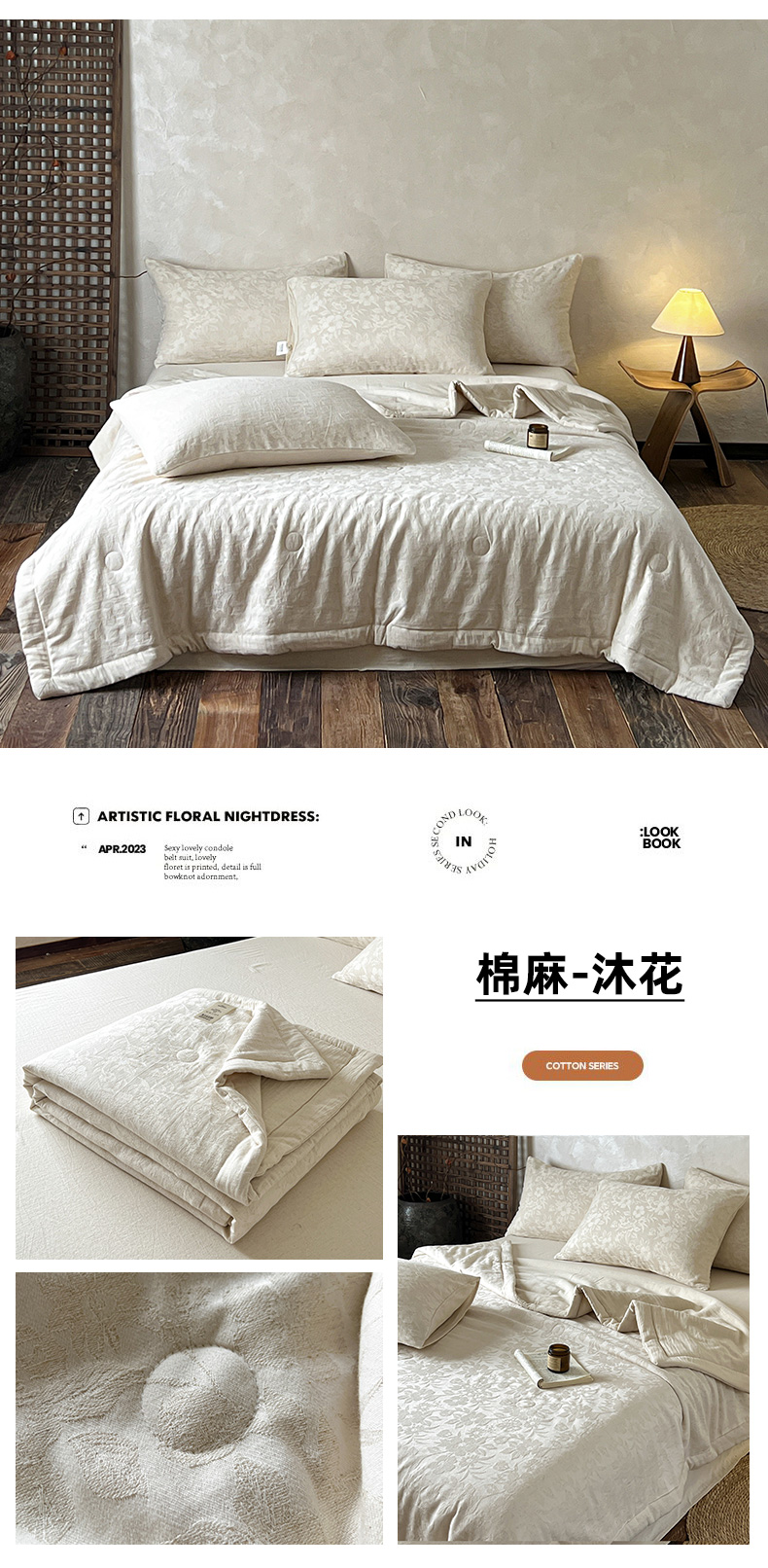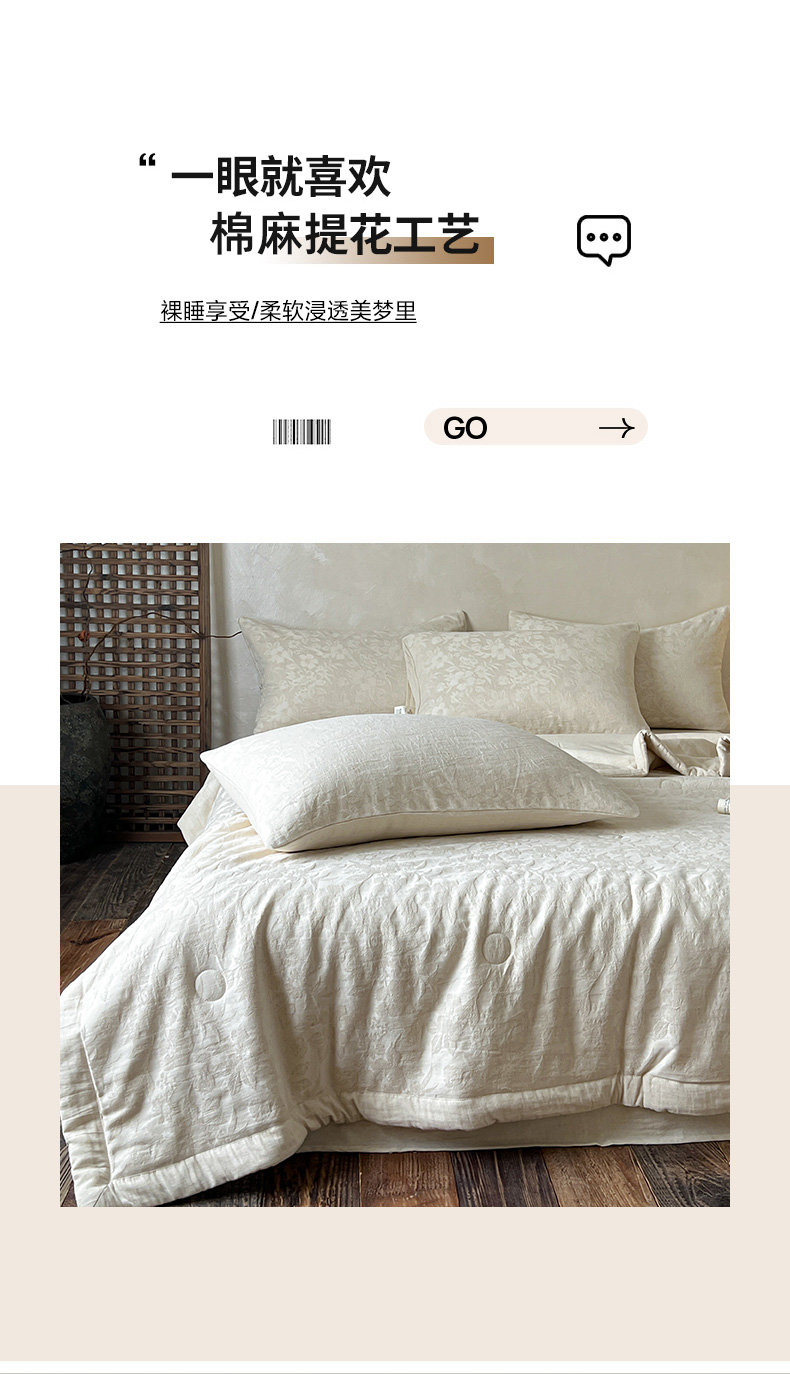 (总)乐家毛巾被(工厂自产自销) 2026新款棉麻提花四件套,棉麻-芙蓉,棉麻-格纹,棉麻-拱门,棉麻-花见夏,棉麻-花枝,棉麻-沐花,棉麻-泡沫,棉麻-柔纹,棉麻-细竹,棉麻-叶影