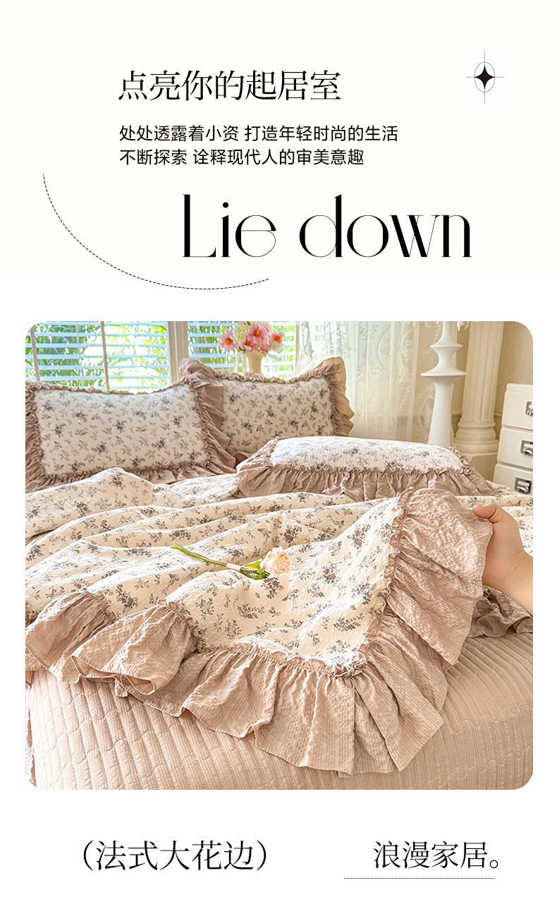 商品名称:韩约家纺 2026新款法式大花边床盖款泡芙棉夏凉被空调被四件套 宝贝甜心