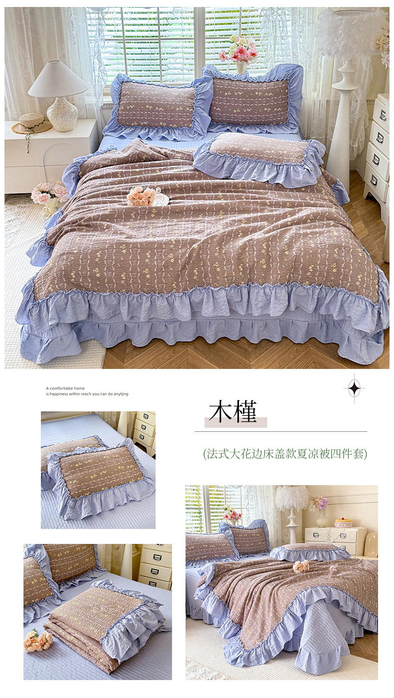 韩约家纺 2026新款法式大花边床盖款泡芙棉夏凉被空调被四件套 宝贝甜心
