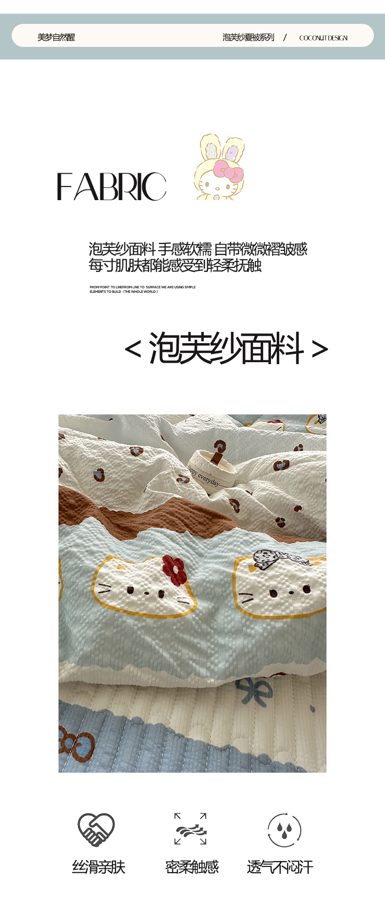 • 91家纺网 家纺一手货源 找家纺 贝扬思家纺 2026春夏新款高品质A类泡芙纱床盖夏被夏凉被空调被四件套-青提系列 青提-可可小猫条