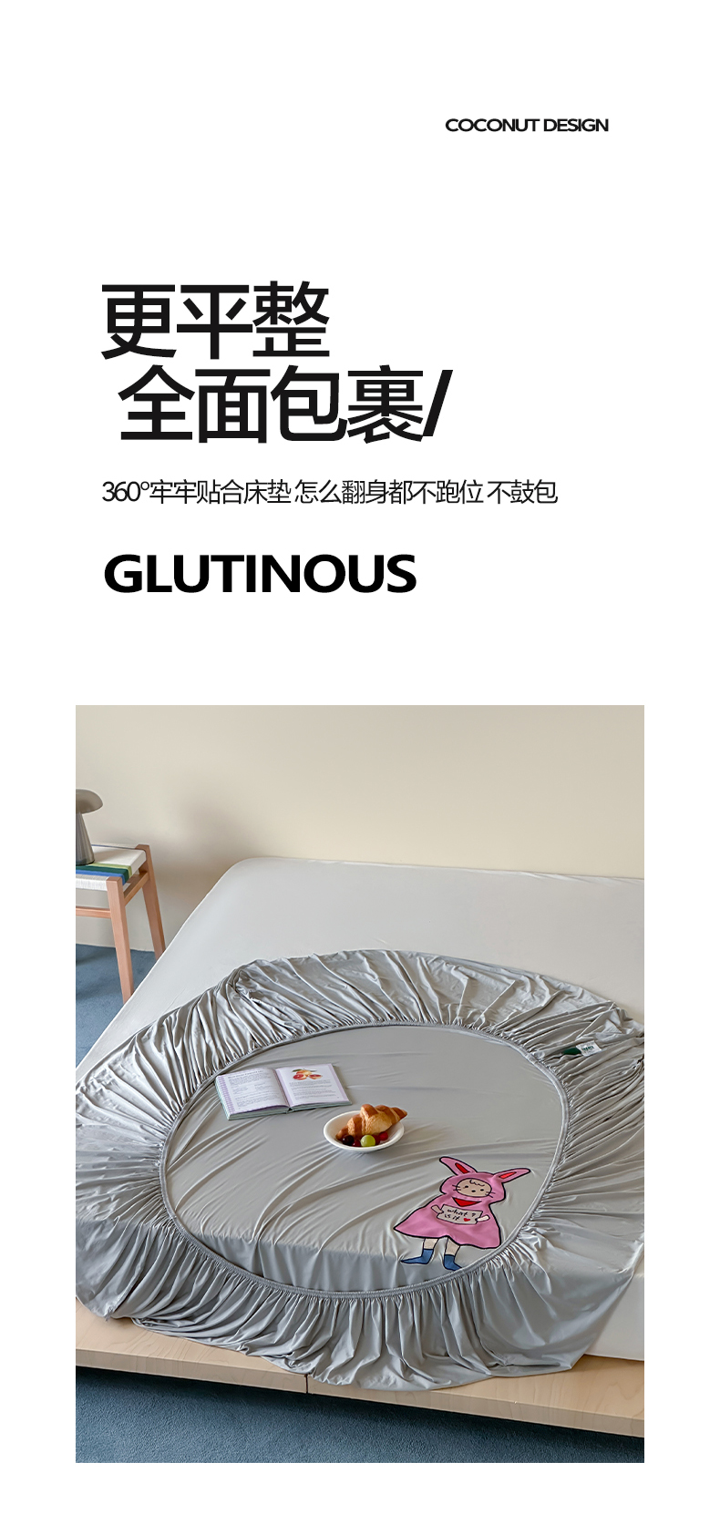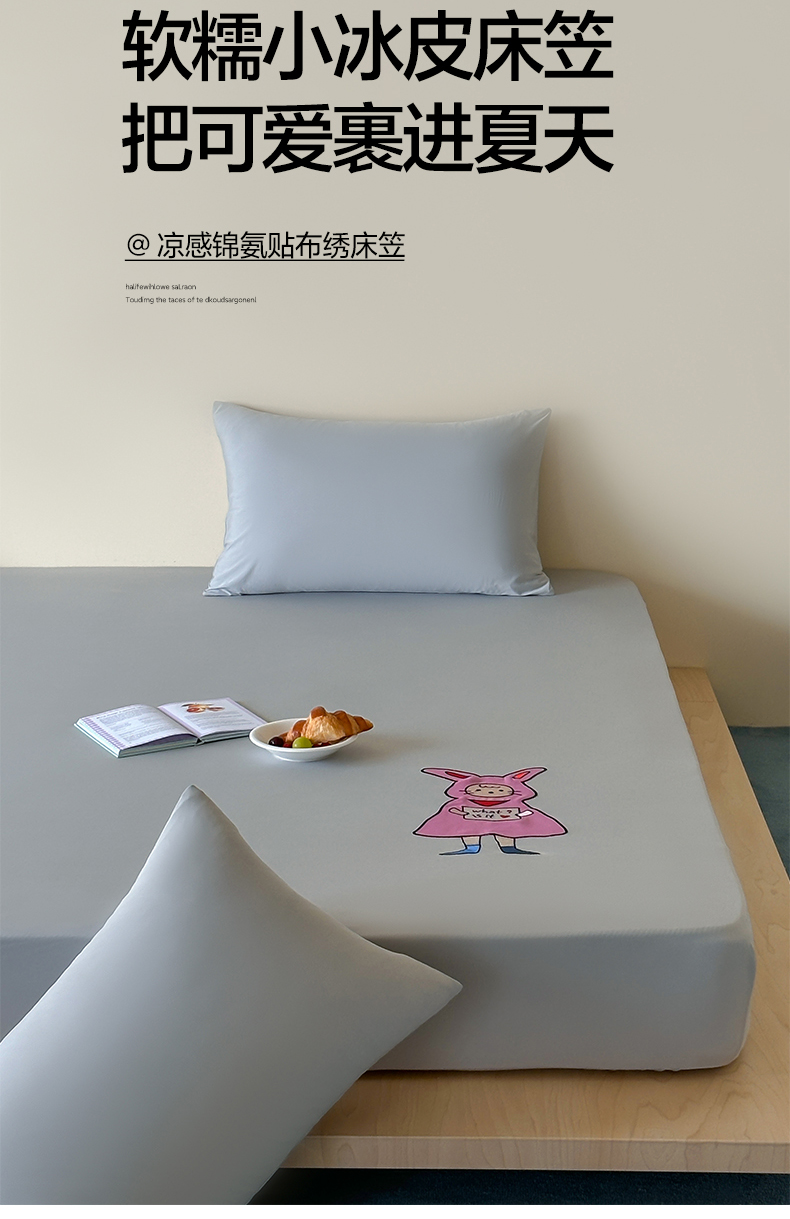 (总)RYB红黄兰 2026新款设计师原创A类锦氨贴布绣超凉感床笠三件套床笠单件,鲨鱼尼诺Nino,贝拉兔兔Bella,泡芙猫咪Puff,企鹅Dudu,海茵蓝,魅影灰,晴空蓝,冰雾绿
