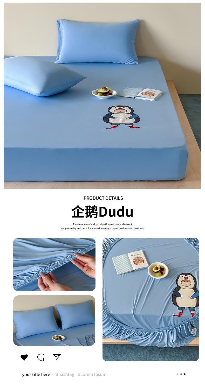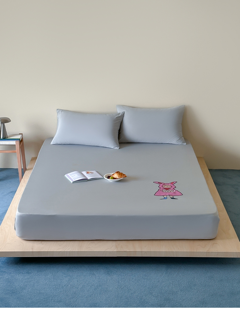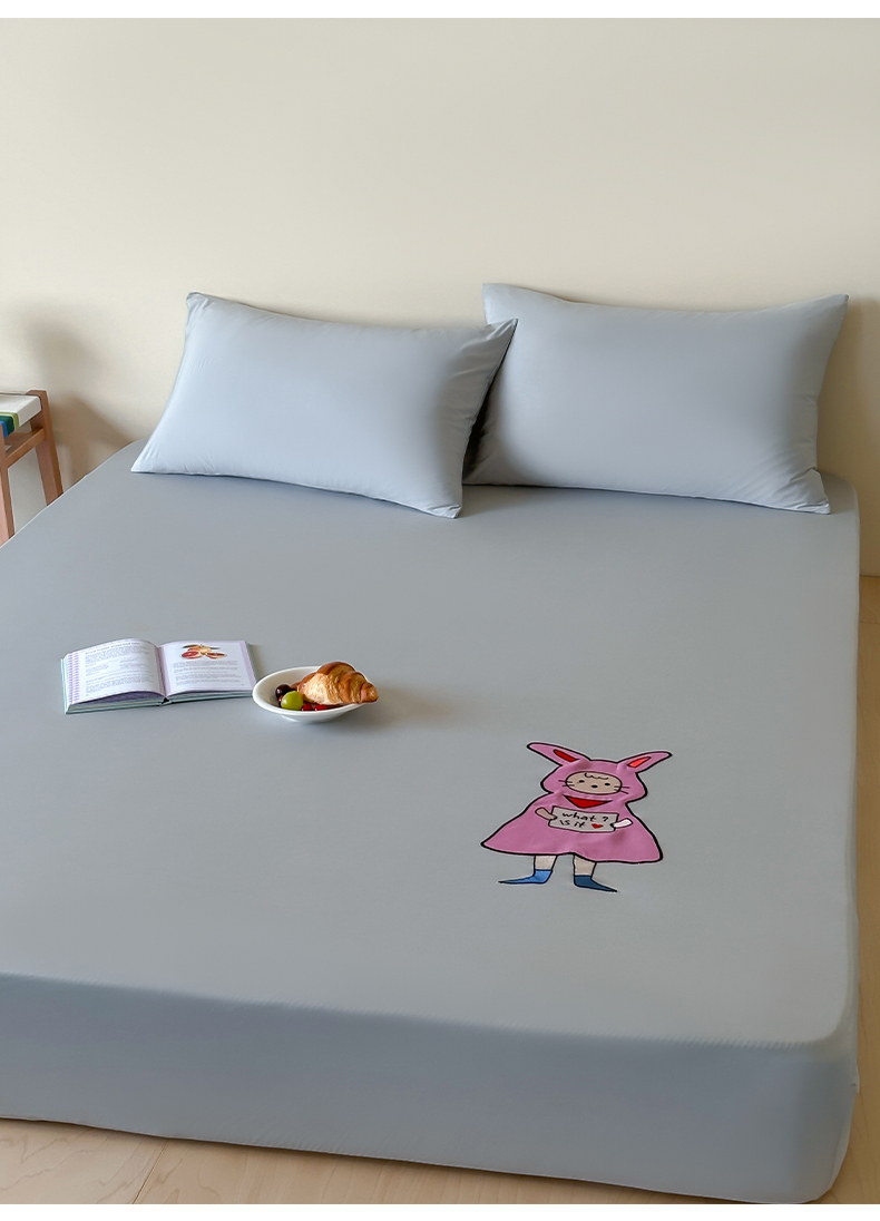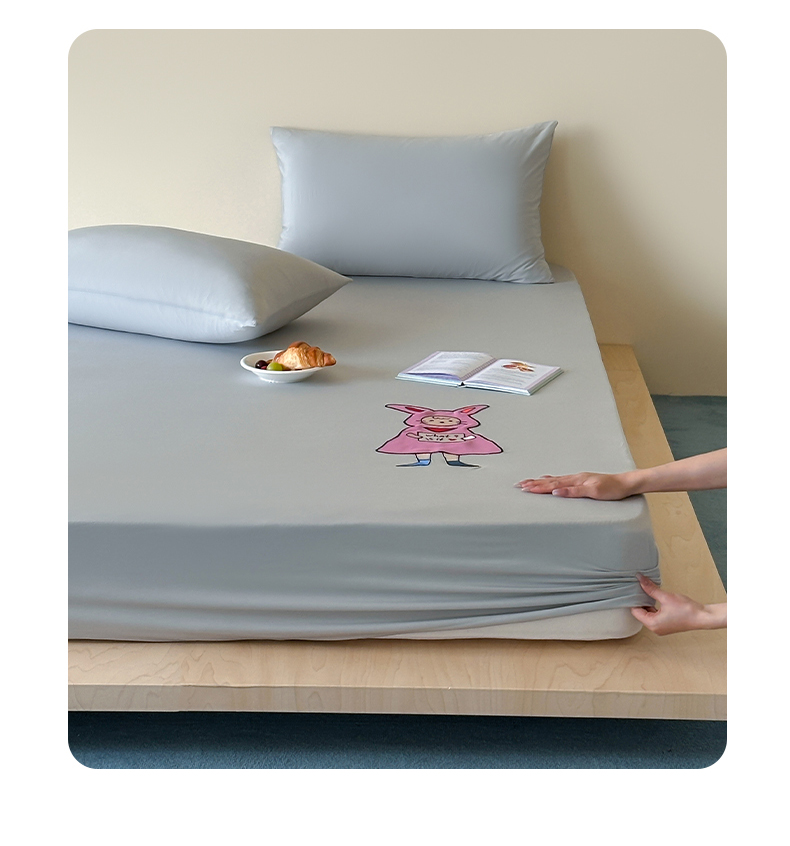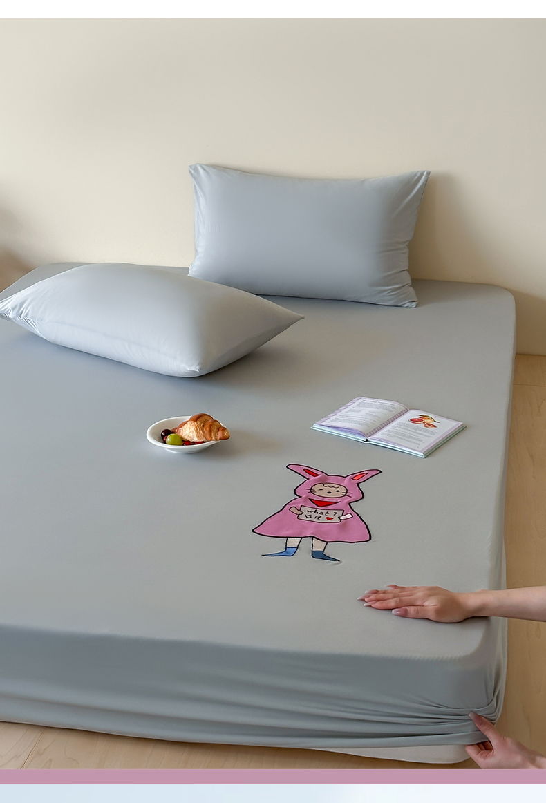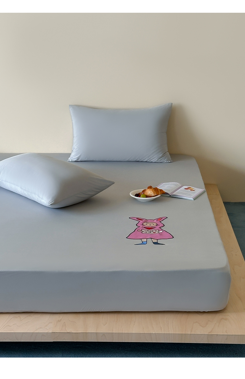 • 91家纺网 家纺一手货源 找家纺 (总)RYB红黄兰 2026新款设计师原创A类锦氨贴布绣超凉感床笠三件套床笠单件,鲨鱼尼诺Nino,贝拉兔兔Bella,泡芙猫咪Puff,企鹅Dudu,海茵蓝,魅影灰,晴空蓝,冰雾绿