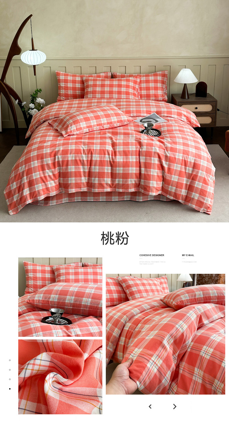 • 91家纺网 家纺一手货源 找家纺 (总)蓝梦 2026新款全棉纯棉色织水洗棉简约四件套-大格,艾格绿,鹅黄,可可灰,蓝粉格,桃粉,优雅兰,宝利格