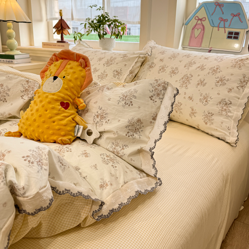 (总)漫仙阁家纺 2025新品云朵棉可爱风卡通烫画单床笠枕套三件套,小浣熊,邻家女孩,小青蛙,兔小姐,花仙子,狗狗家族