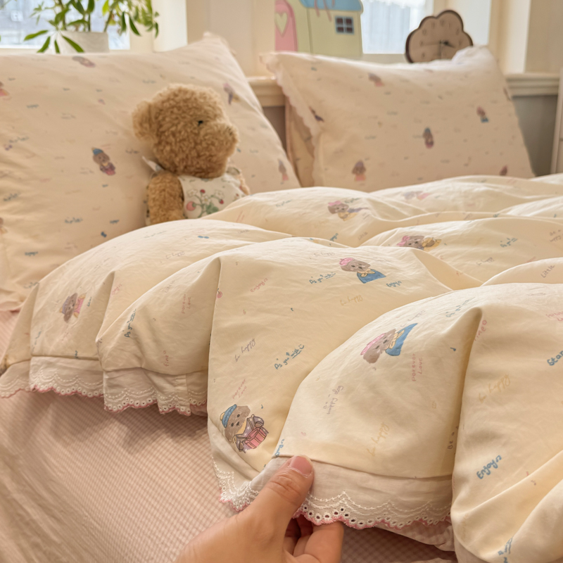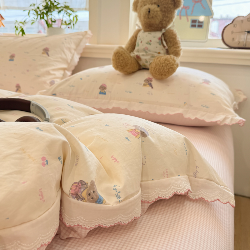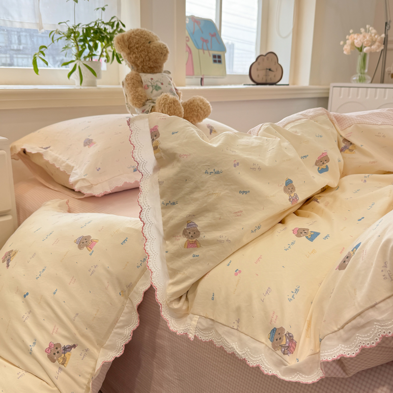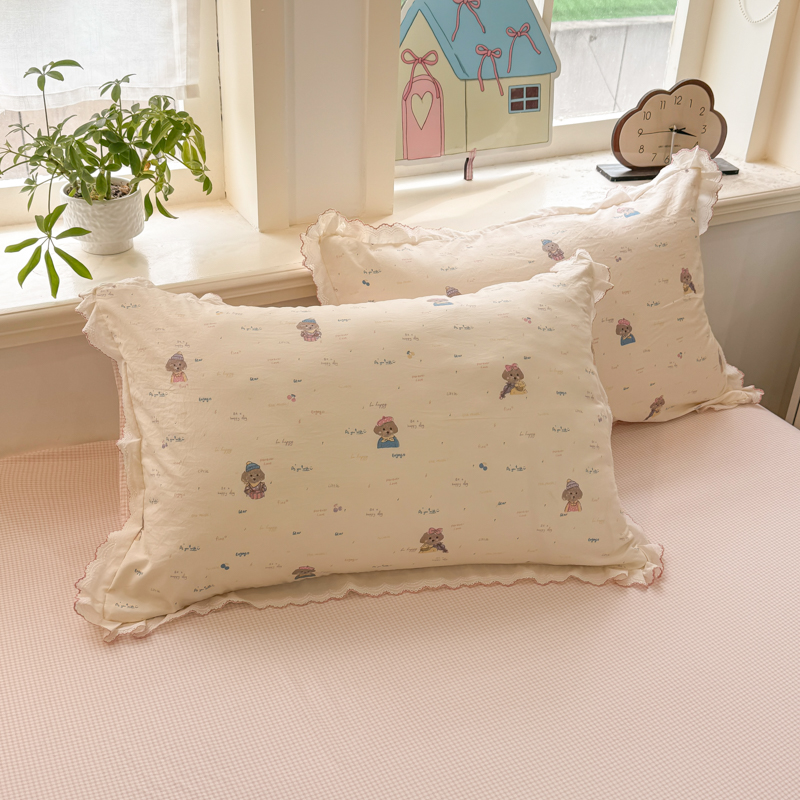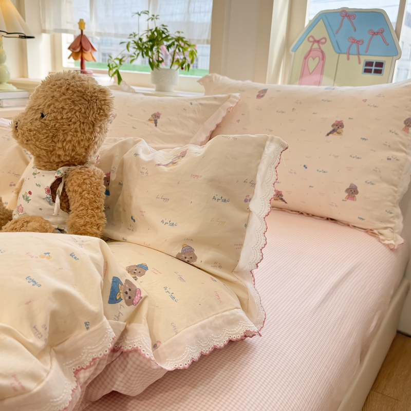 (总)漫仙阁家纺 2025新品云朵棉可爱风卡通烫画单床笠枕套三件套,小浣熊,邻家女孩,小青蛙,兔小姐,花仙子,狗狗家族
