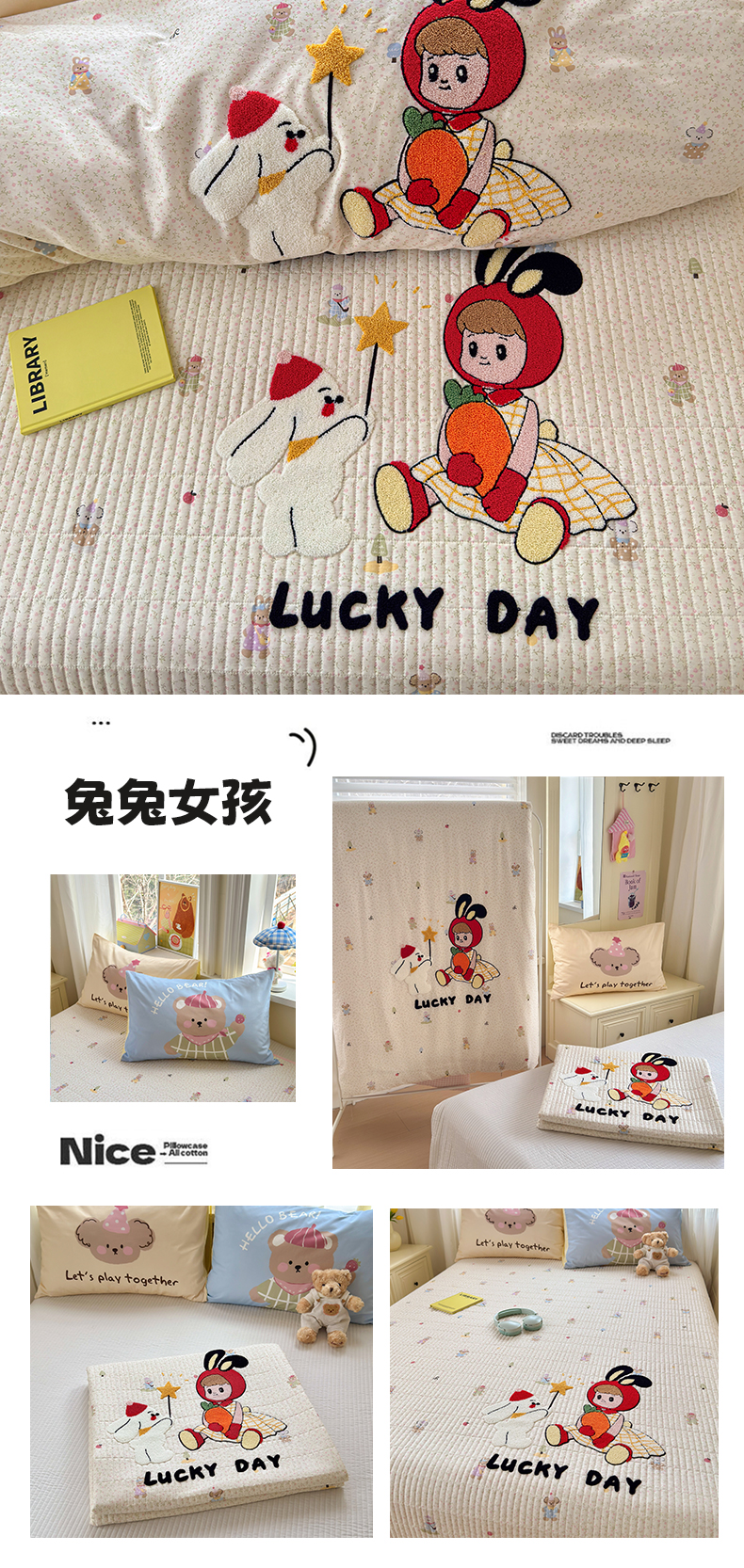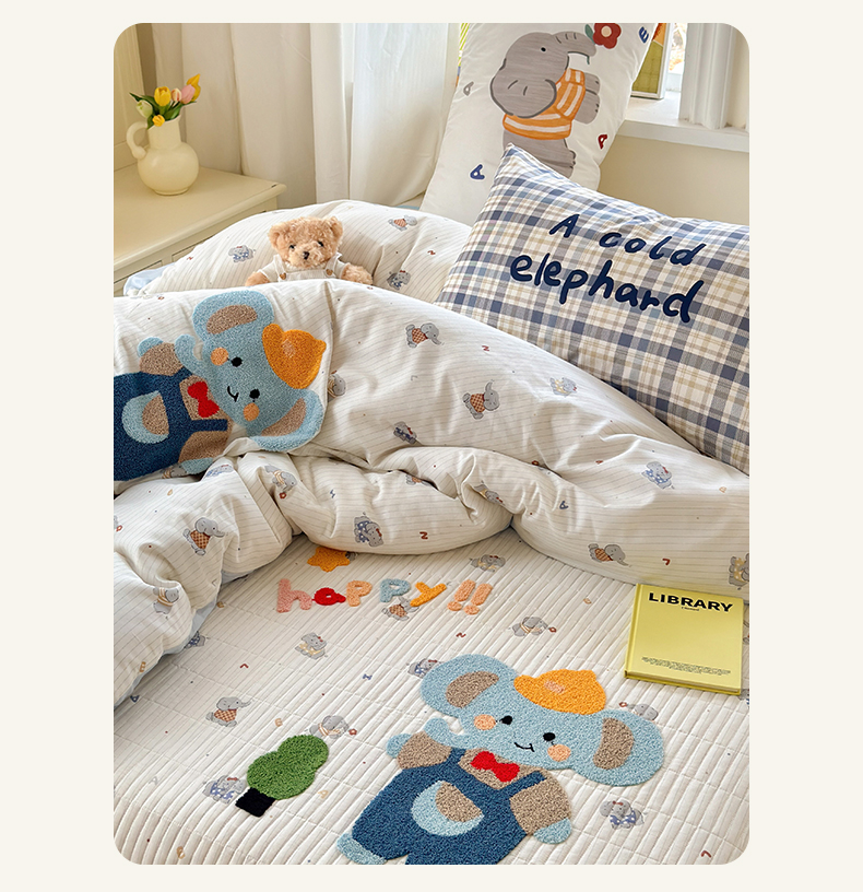 当前位置: 91家纺网 > 商品网购 > 床品套件 > 四件套 > 其它四件套 > 妮可 2026新款全棉毛巾绣夹棉床盖四件套搭配大版数码印花枕套 快乐小象