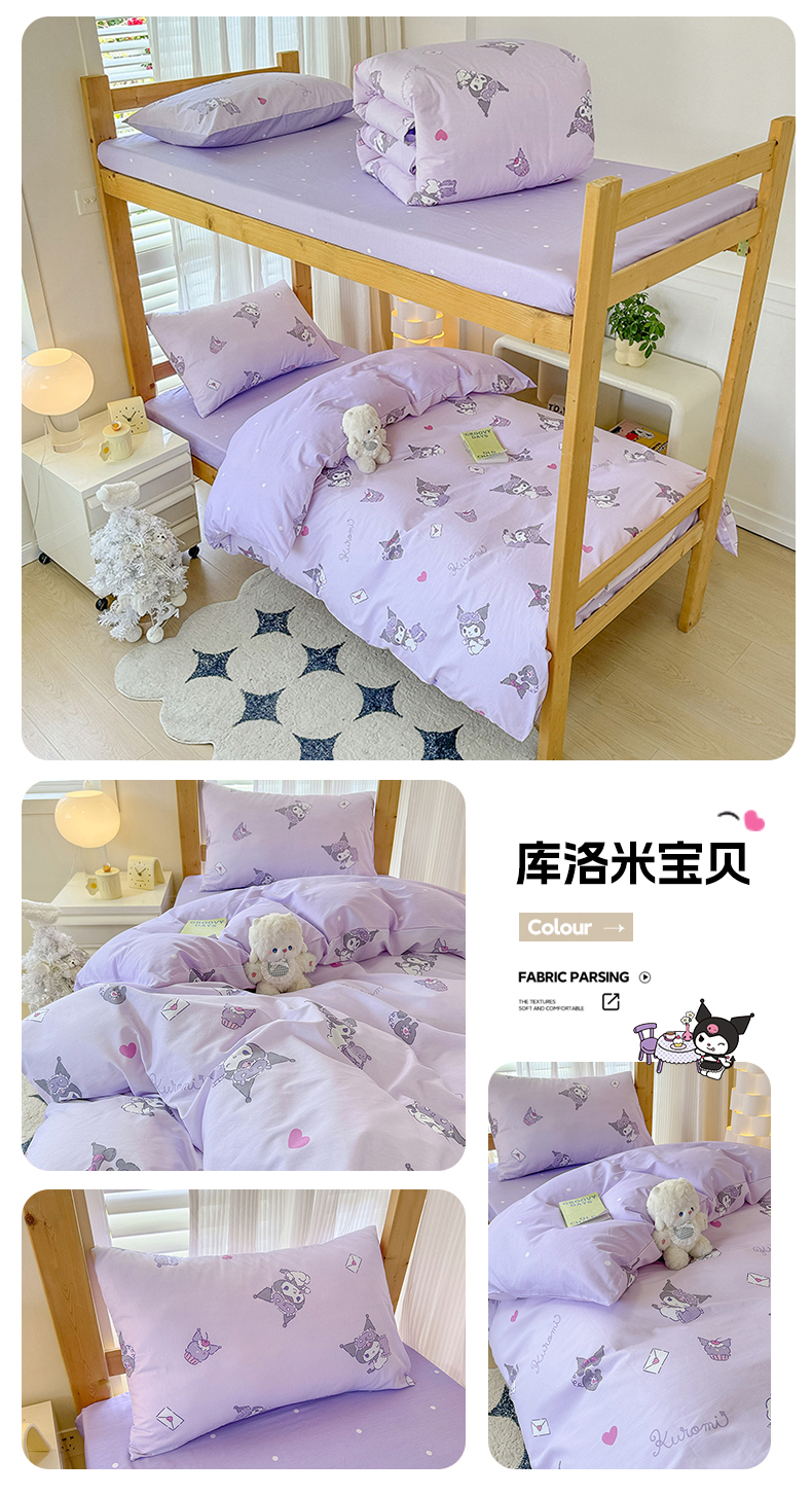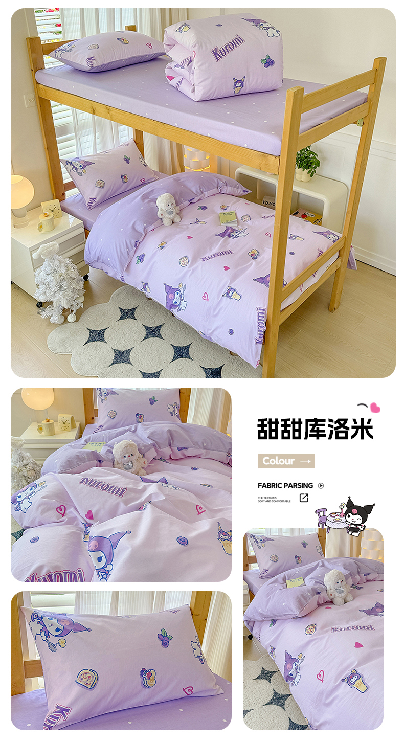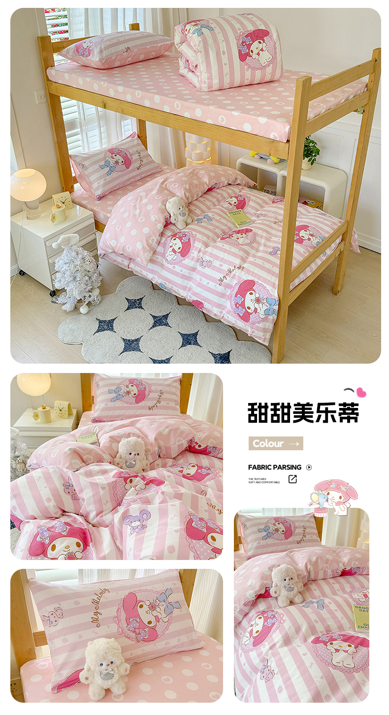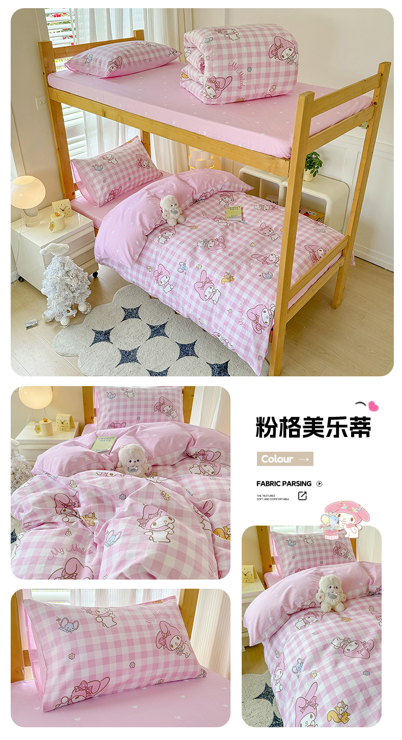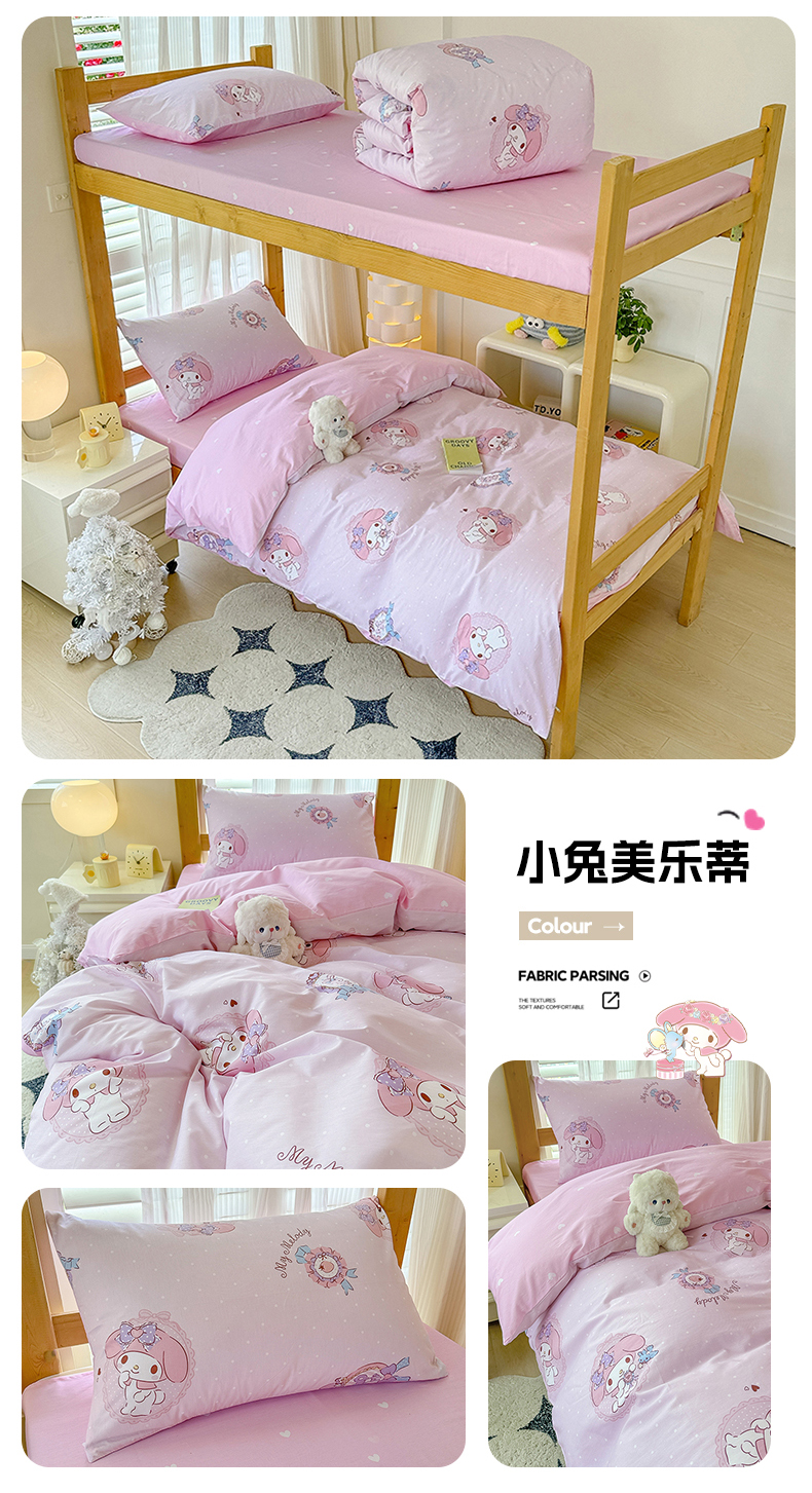 商品名称:(总)玉元坊 2026新款三丽鸥正版库洛米美乐蒂凯蒂猫全棉纯棉0.9m学生宿舍床三件套基础款